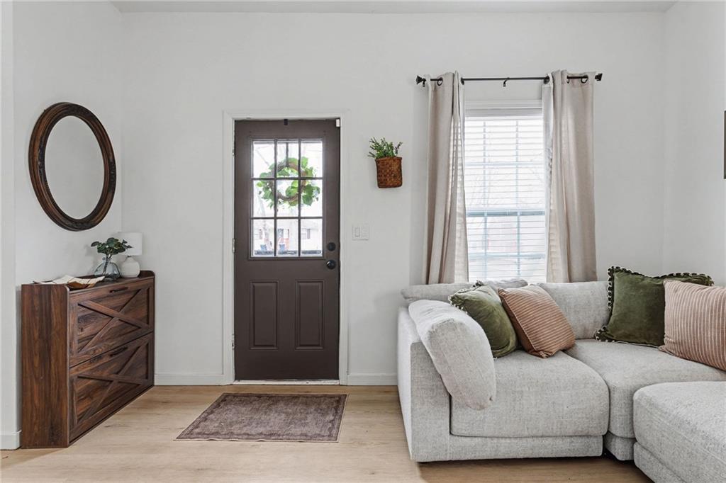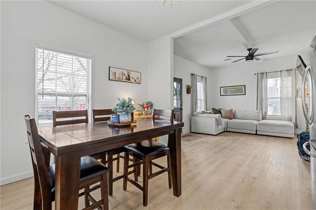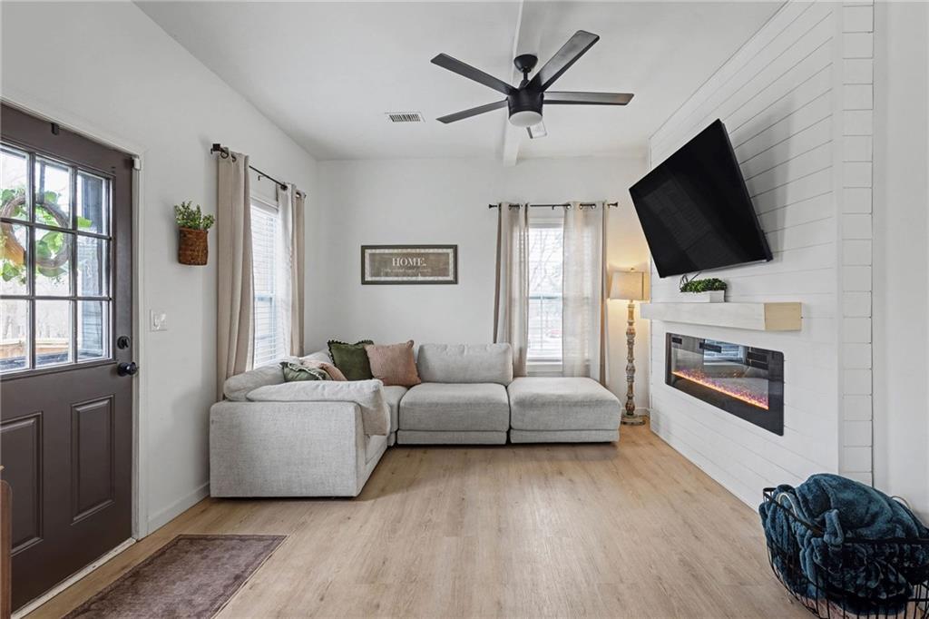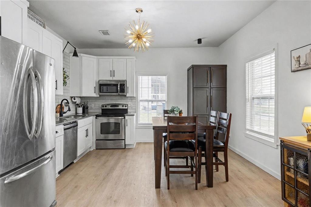 Dreaming of a simpler lifestyle where you arrive at home and choose between relaxing on the front porch or spending time in your own greenhouse? Welcome home to 11512 McGee St. From the moment you pull up, you’ll fall in love with the front porch and matching shutters. Step inside to find updates throughout, including luxury LVP flooring that flows from the living room into the kitchen, and an accent wall with an electric fireplace that quickly becomes the focal point. The eat-in kitchen opens to the living space and offers crisp white cabinets with updated hardware, granite countertops, tile backsplash, a pantry for extra storage, and stainless steel appliances. The oversized primary bedroom easily fits a king-size bed with room for nightstands on both sides. The bathroom was designed with storage in mind, featuring a linen closet tucked behind the door. The laundry room is conveniently located off the back door with a designated drop zone. Out back, you’ll find a large fenced yard with a greenhouse that stays with the property. Enjoy the freedom of a lower-maintenance, simpler lifestyle in a house you will love to call Home.