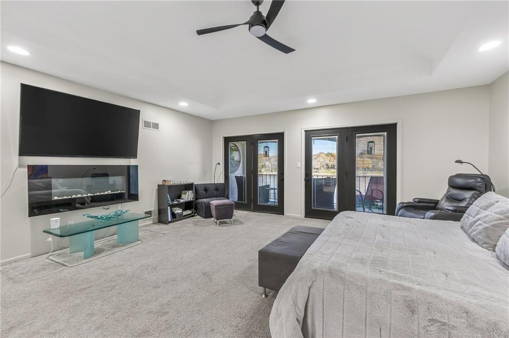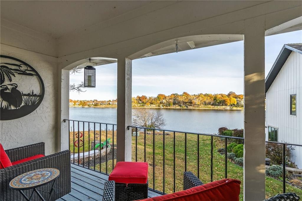 Experience the WOW factor of this beautiful lakefront property in Lakewood, Lee's Summit, MO. Grand open concept living in gracious spaces. Outside you will love the stunning water views. Including sunrise's, reverse sunset's, moonrise, and 4th of July fireworks front row from our private point. This recently updated 3 bedroom, 3 bath retreat offering over 4600 sq. feet of refined comfort and breathtaking design. The primary suite is a sanctuary unto inself. A spacious escape with a private balcony overlooking the lake, where mornings begins with soft breezes and gorgeous sunrises. The large great room will be an entertaining favorite with lots of space and a resort style fireplace. The lower level is a perfect media or family room with 2 guest rooms and 1 full bath. The outdoor living is elevated with the home's two tier brick patios, creating a perfect setting for dining or gathering under the stars. Here every day feels like a vacay getaway. Enjoy quick access to the golf course, Golf Club, community docks for swimming or launching a paddle boat or kayak. Lakewood boat rentals, sail and paddle club, or simply quick access to the highway for amny dining/shopping options. Lakefront living with style. Come see for yourself.