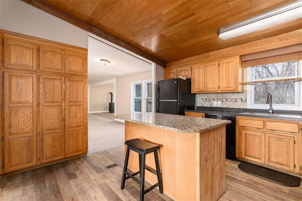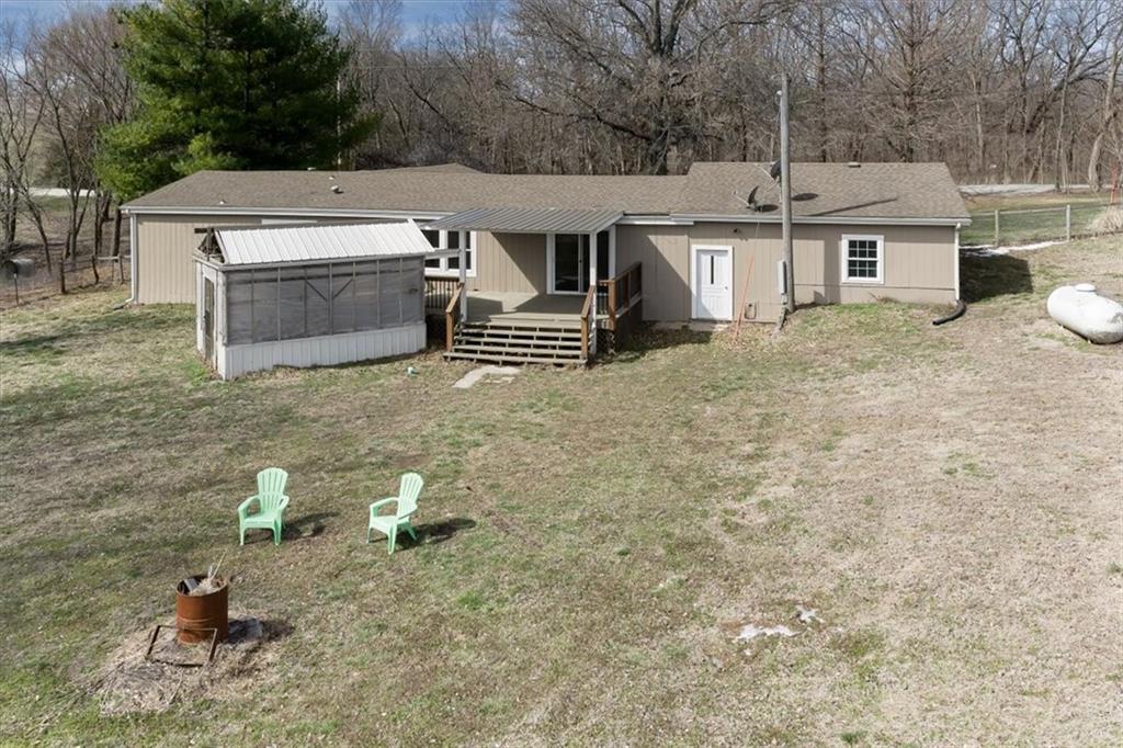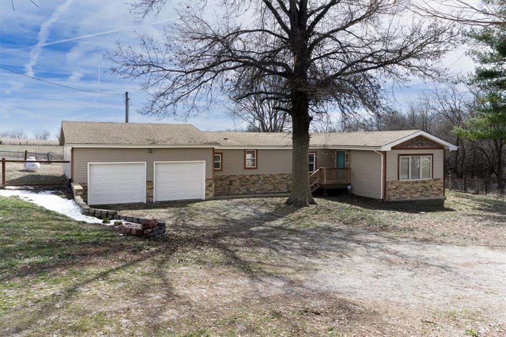 Tucked away on the some of the most peaceful ground in Leavenworth county, you will find this beautifully updated 3 bed 2 bath home with an oversized 2 car garage. It truly is something you must just see in person to appreciate...The land, the quietness, the sights and sounds all make you fall in love with this 6.7 acre piece of heaven that is the perfect mix of pasture and woods. If you are looking for a place to get away from the hustle and bustle, this place is just what you've been searching for. Step Inside where you will find two oversized living/ family rooms featuring a wood burning stove for cost efficient heating in the wintertime, generous sized bedrooms, a formal dining room, granite kitchen island with loads of kitchen cabinets, and a master suite to absolutely die for... this mater bathroom is AMAZING! From the jetted tub to the gorgeous walk in shower you will be in aww! Step on the back patio and take in the views of the pond from your coved deck and dream up your picture perfect garden in your very own green house! Now, for the outdoor enthusiasts you can enjoy the 1 acre stocked pond and spend your summers catching bass, crappie and bluegill till your hearts content or spend your fall and winter harvesting the great Kansas wildlife game (trophy bucks, bobcats, turkey, geese, coyotes and more!) that follow the year round spring fed creek, spend your spring days hunting for the morel mushrooms along the creek banks and your nights under the stars by the stream.. this 6.7 acre retreat really has it all. The property offers a lean-to with fencing for horses/ livestock already in place as well! If you are looking for a simpler way of life or looking to give your kids a childhood they'll never forget in the country without that high price tag.. this one is it!