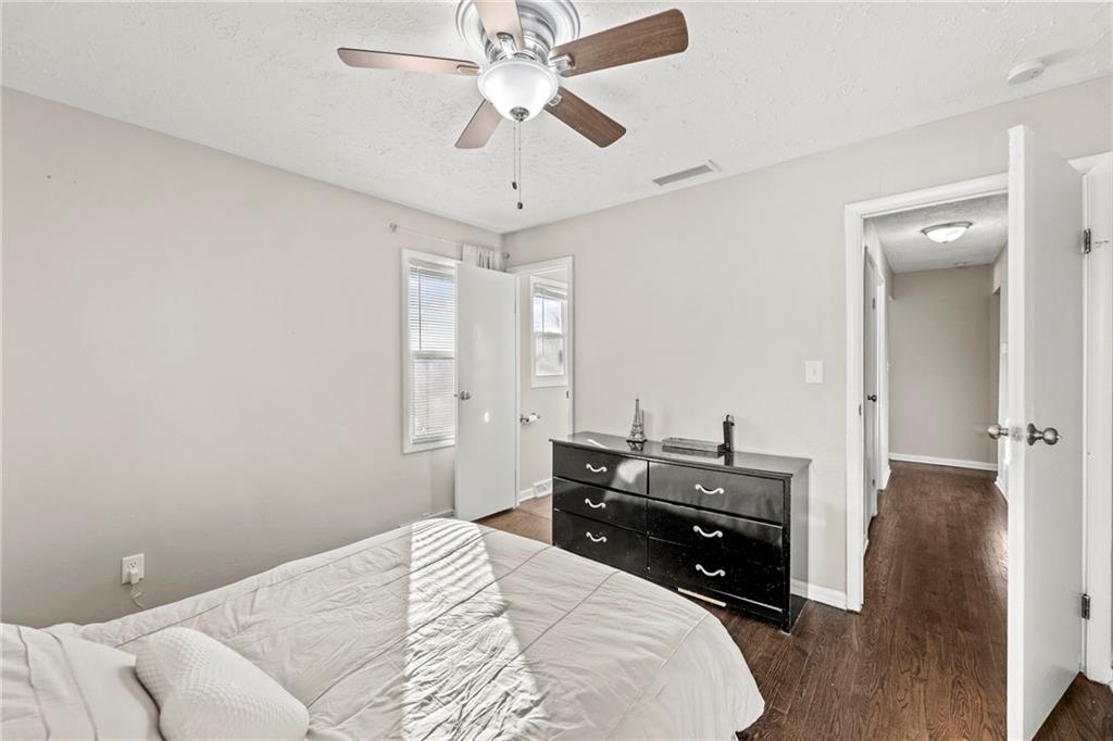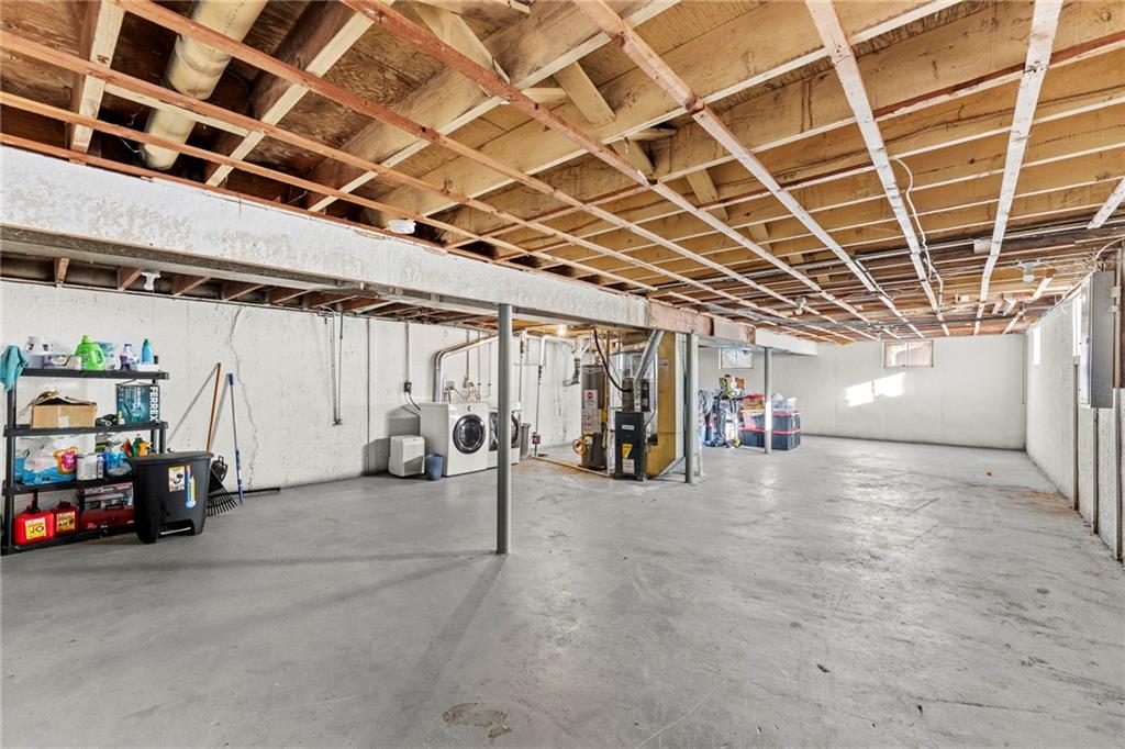 Rarity in this area: charming ranch home with 4 bedrooms, 2 full bathrooms, and spacious lot with mature trees. Hardwoods throughout main level, luxury vinyl plank flooring for durability in wide kitchen. All bedrooms have ceiling fans for comfort, newer windows all around. Kitchen has double sink under picture window overlooking the yard, kitchen exits to back deck. Fridge and washer/dryer stay with the home, along with outdoor fire pit! Primary bedroom has its own full bath, and second full bathroom is in the hall. Large basement perfect for storage or ready for you to finish as optional play area, or a workout, craft, or carpentry area.
