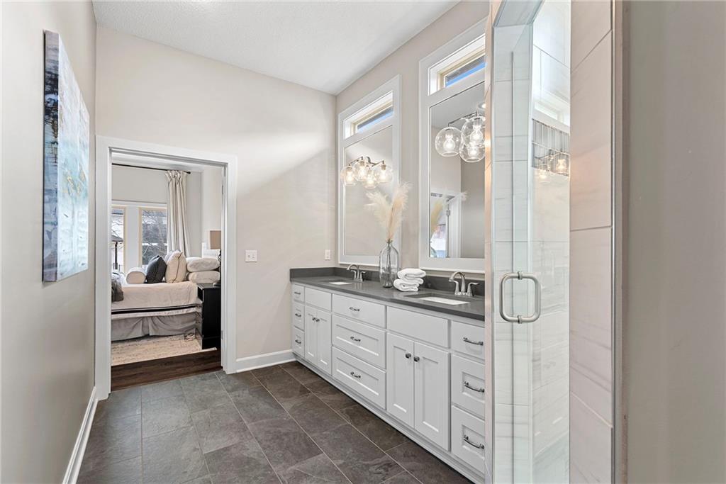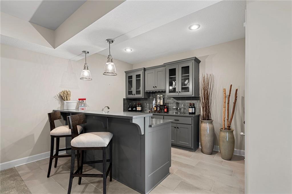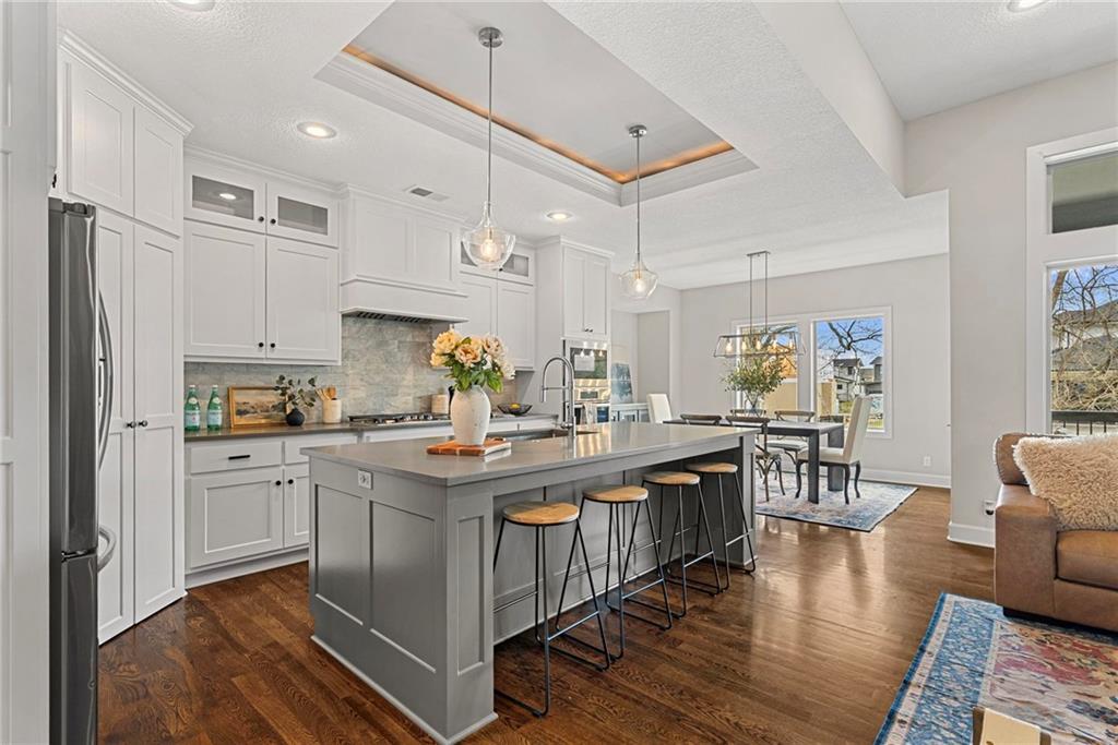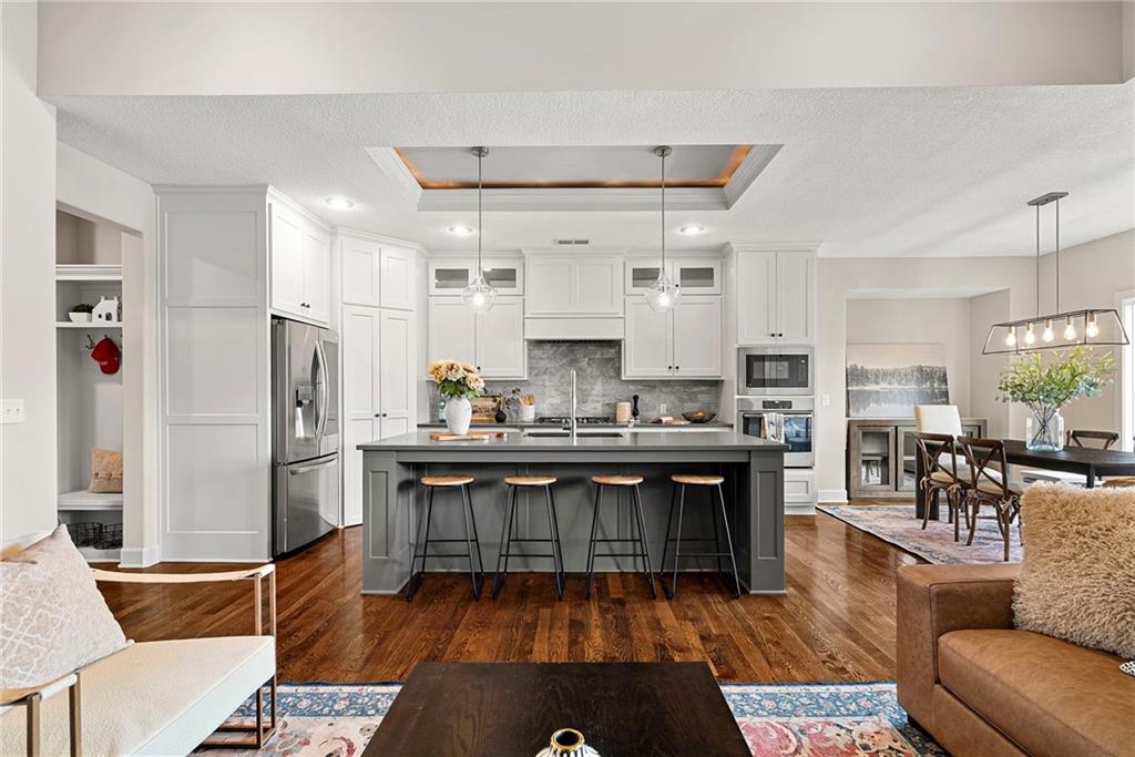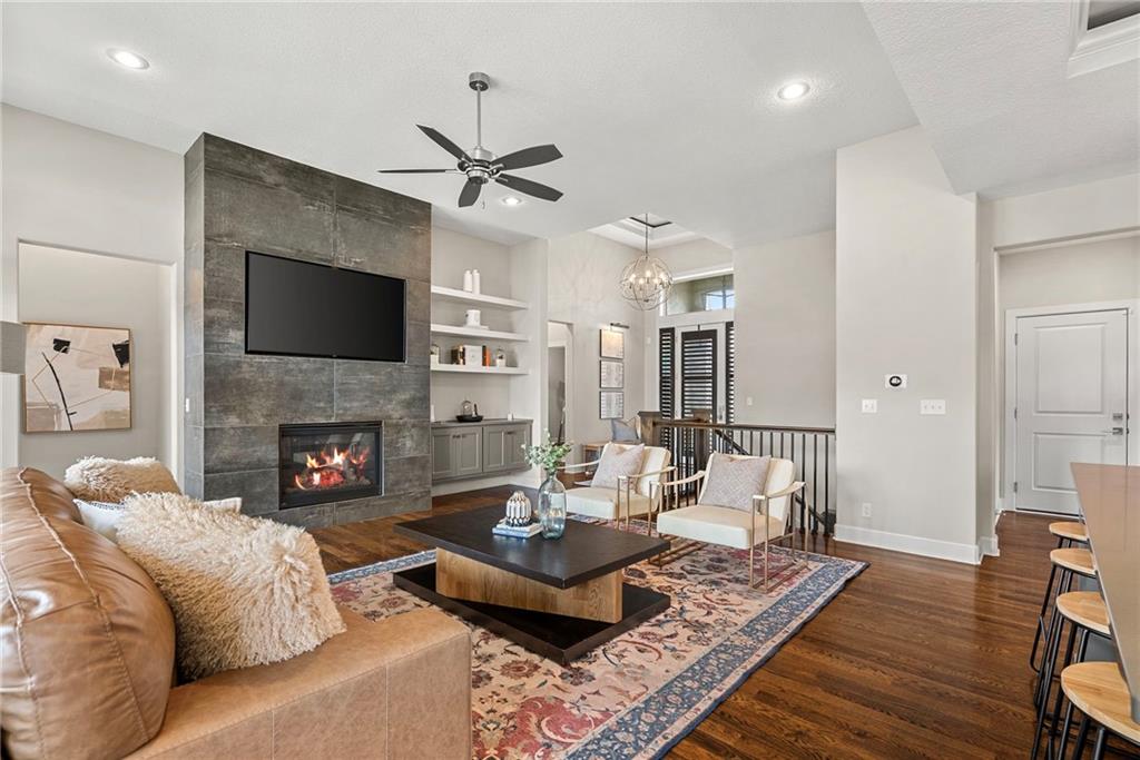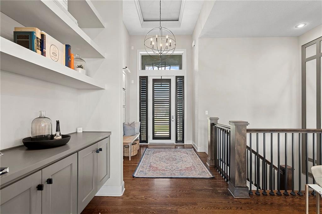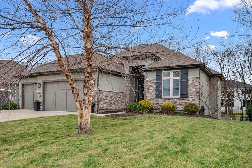 Award-Winning Luxury in Chapel Hill | Former Model Home with Designer Upgrades! Welcome to this stunning, HBA award-winning former model home located in the highly sought-after Chapel Hill subdivision in South Overland Park, within the desirable Spring Hill School District. This PRE-INSPECTED & PROTECTED home is complete with a 13-month home warranty for added peace of mind. This beautifully designed reverse 1.5-story home features 4 BR, 3 BA, and a finished walkout lower level, all enhanced with thoughtful, high-end upgrades. • MAIN LEVEL includes 2 BR, 2 BA and features an open-concept design with hardwood floors throughout. Centered around a spacious kitchen with a large 9-ft granite island, 5-burner gas cooktop, walk-in pantry, upgraded faucet and hood/vent, and a premium Bosch dishwasher. The adjoining living room is equally impressive with custom built-ins, a gas fireplace, and stunning Restoration Hardware fixtures. Step outside to the screened-in porch with electric privacy blinds, perfect for relaxing or entertaining, with added steps leading down to the backyard. The spa-like primary bath offers a private retreat with double vanities, walk-in shower, updated tile flooring and shower fixtures, additional Restoration Hardware finishes, and California Closets system. • LOWER LEVEL includes 2 BR, full bath, entertainment-ready bar area and walkout access to the fully fenced backyard. • Additional upgrades include; epoxy floors, mini split system in the garage, a WiFi-enabled MyQ garage door opener and a Rachio smart irrigation system. Enjoy all that Chapel Hill has to offer with resort-style amenities including 2 pools, clubhouse, walking trails, pickleball, playground, and trash/recycling services. It is ideally located within walking distance to Heritage Park and just minutes from the OP Arboretum & Botanical Gardens, top-rated schools, shopping, dining, and more.