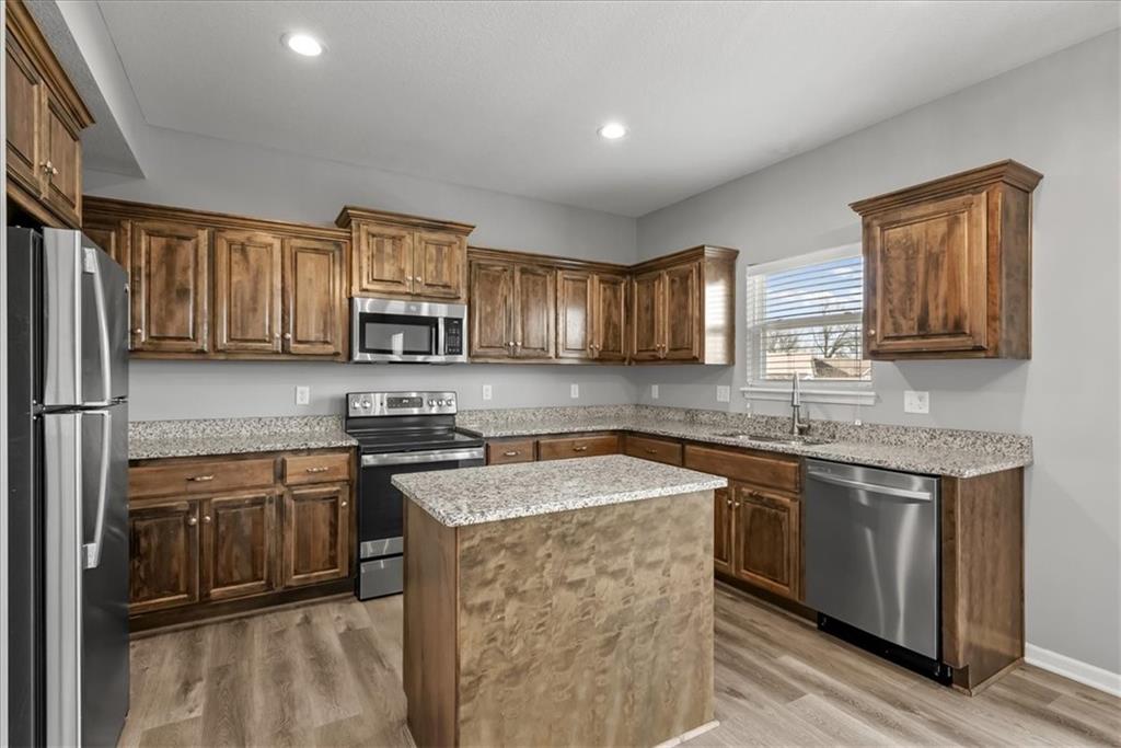 Welcome Home to 2309 S Heartland Ct! Like NEW home in Prairie Landing subdivision in quiet cul-de-sac! Kitchen features new cabinets, granite countertops, and stainless steel appliances. Open floor plan and second living area on main level. Master bedroom has walk-in closet and full private bath. Bedroom level laundry room. Full Walk-Out basement ready to be finished. Enjoy the deck.