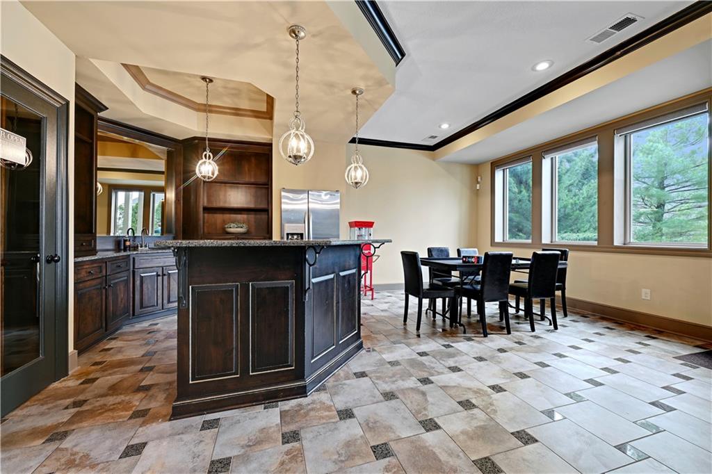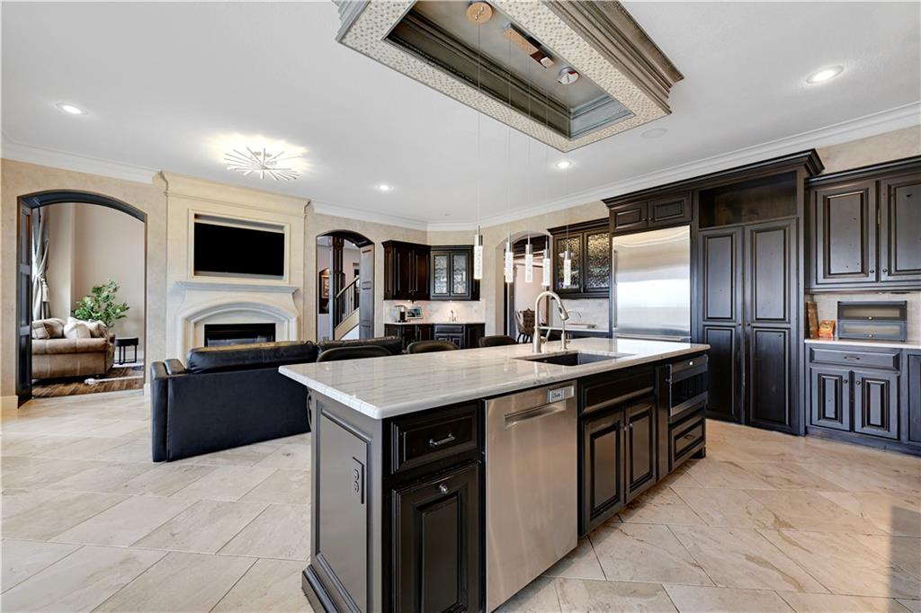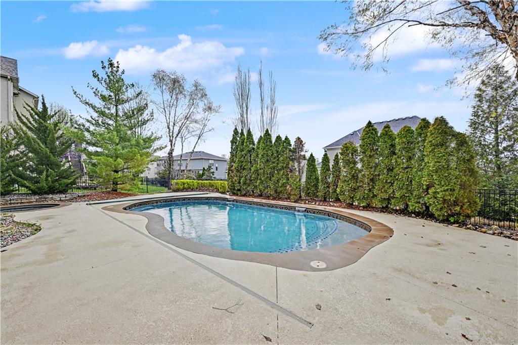 Experience elevated living in this exceptional, one-of-a-kind residence designed for unforgettable family living and effortless entertaining. Every detail has been thoughtfully curated to impress, from the resort-style outdoor retreat to the high-end finishes throughout all three levels. Step outside to your private oasis featuring a stunning in-ground gunite saltwater pool, an oversized spa, and lush, professionally designed landscaping—perfect for relaxing or hosting gatherings. Inside, the walk-out lower level is an entertainer’s dream, complete with a full theater space, a sophisticated bar, and a dedicated kids’ movie and playroom. The heart of the home is a chef’s kitchen equipped with top-tier appliances, ideal for both everyday living and upscale entertaining. Luxurious materials such as travertine, marble, and natural stone add elegance and timeless appeal throughout. Modern convenience meets refined design with advanced home automation, including motorized shades, a seamless whole-home audio system extending to outdoor spaces, and beautifully appointed smart bathrooms with cutting-edge features. Situated on a quiet, family-friendly cul-de-sac, this home offers a rare combination of privacy, security, and community charm. A striking floating staircase serves as a dramatic architectural centerpiece, while the home’s distinction is further elevated by its feature as a showcase property in KC Homes & Style Magazine. This extraordinary custom-built estate is truly a standout—where luxury, comfort, and lifestyle come together.