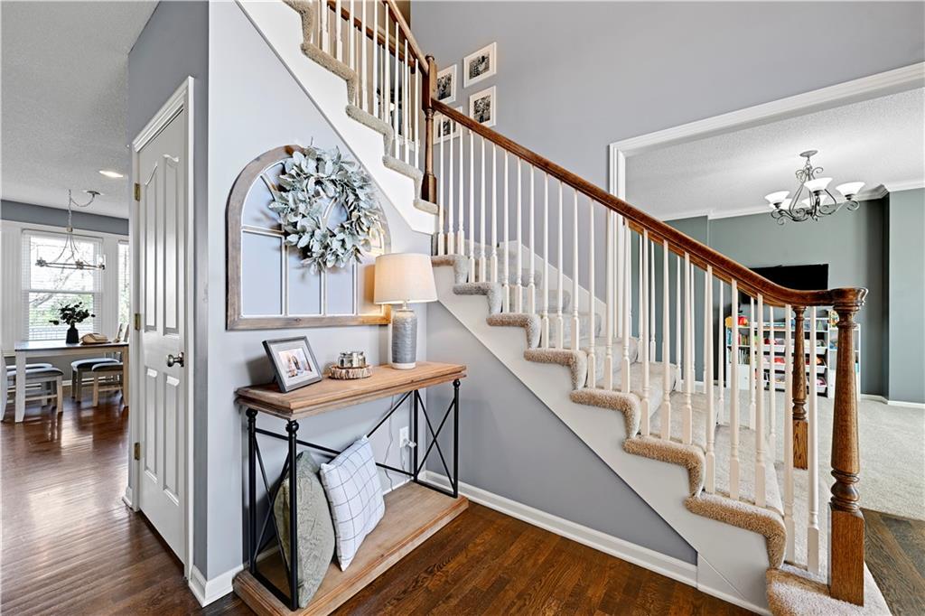 This beautifully updated 5-bedroom, 3.5-bath home in sought-after Brampton Park truly has it all! The dream kitchen features custom cabinetry, marble countertops, and classic subway tile, all opening seamlessly to a spacious great room with fireplace and built-ins—perfect for everyday living and entertaining. Gorgeous hardwood floors shine! Upstairs, the primary suite offers a spa-like bath with dual vanities, a corner tub, large shower, and separate his-and-hers walk-in closets. Three additional generously sized bedrooms complete the upper level. The finished basement adds even more living space with a 5th bedroom and full bath—ideal for guests or a private retreat. Situated on a large lot with a sprinkler system and backing to tree line. Major updates including a new zoned HVAC system and most windows are new. Located in the highly desirable Olathe School District—this is one you don’t want to miss. Schedule your showing today!
