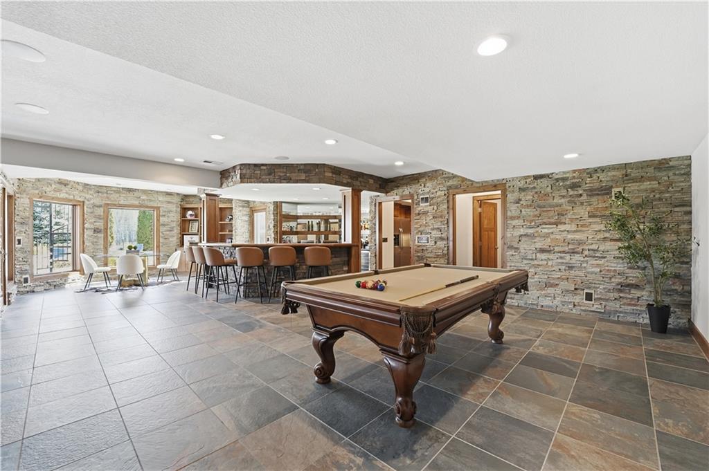 Luxury Blue Valley Estate on Nearly 10 Acres | Ideal for Entertaining | Motivated Sellers. Luxury estate on nearly 10 acres in southern Johnson County, located in the Blue Valley School District. Nearly 7,500 sq ft thoughtfully designed for both entertaining and flexible living. Entertaining highlights include a gourmet kitchen, screened lanai, and a finished walk-out lower level with home theater, custom bar, and basement kitchenette. The resort-style backyard features a heated saltwater pool, pool house, and outdoor kitchen with hibachi grill—ideal for hosting year-round. The property also features a private rear garage behind the pool house-offering functional space for recreational vehicles, equipment, or a fully equipped workshop. Family-friendly and versatile, the home offers a main-floor primary suite, upstairs bedrooms with bonus loft/playroom space, and multiple bedroom suites throughout. The layout supports multi-generational living, extended guests, or private work-from-home needs with excellent separation and privacy. A rare six-car garage, new $100,000 ceramic tile roof, HVAC updates, and a location just a few miles from Overland Park complete this exceptional property.