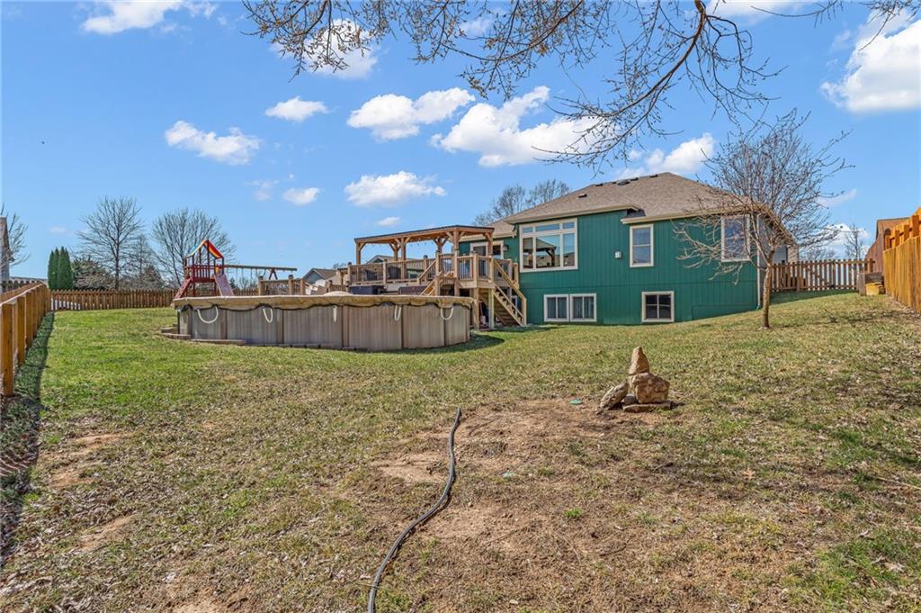 Situated on a desirable corner lot spanning nearly .30 acres, this home offers space, flexibility, and great outdoor living. Enjoy the backyard retreat featuring a generous deck, above-ground pool, and convenient outdoor shed—perfect for relaxing or entertaining. Inside, the main level is designed for comfort and convenience with a private primary suite complete with a walk-in shower and spacious walk-in closet, plus an additional bedroom and full bath on the main floor. The open kitchen and dining area flow seamlessly and walk out to the deck, making indoor-outdoor living easy. The lower level adds even more versatility with two additional bedrooms, a full bath, and over 500 square feet of unfinished storage space. Rounding out the home is a 3-car garage, providing plenty of room for vehicles, storage, and more.