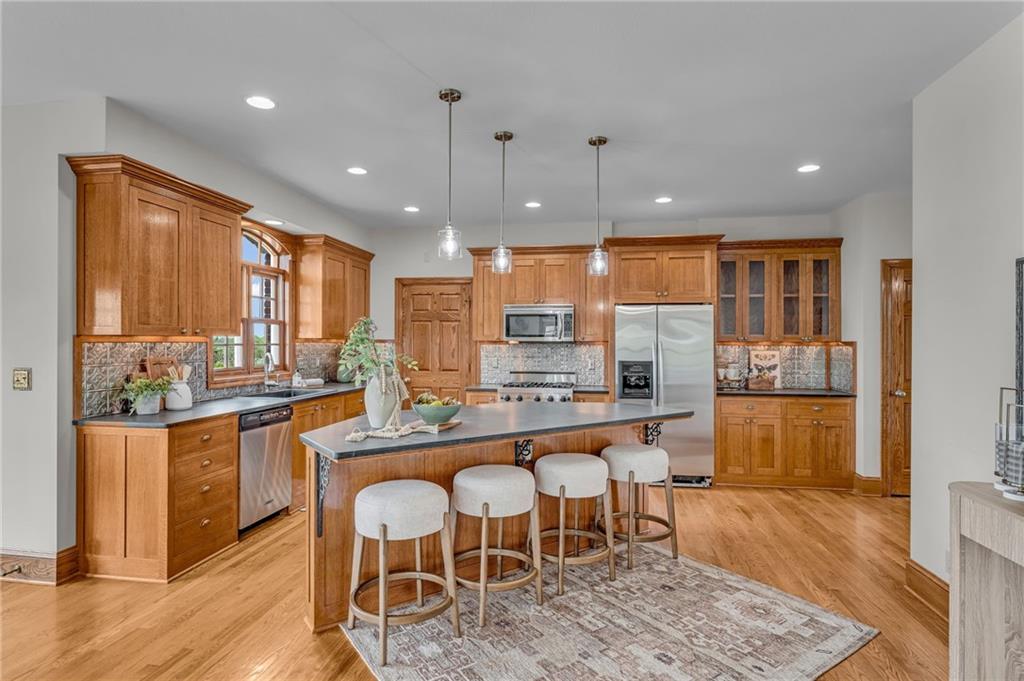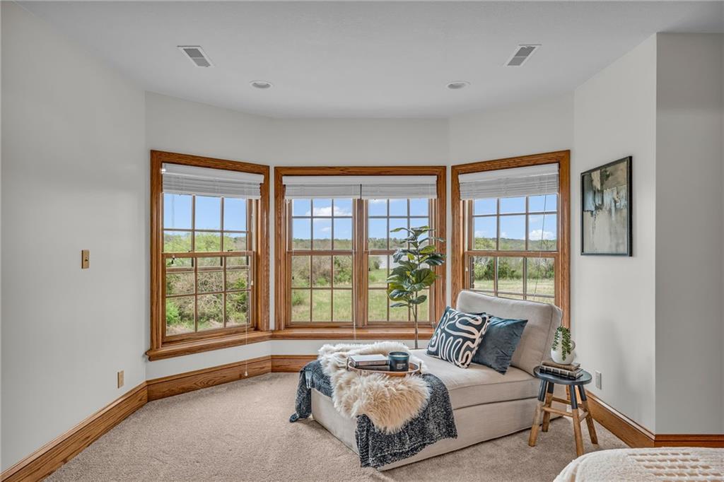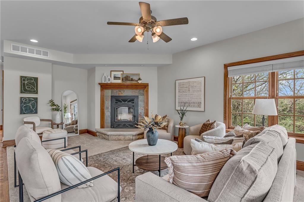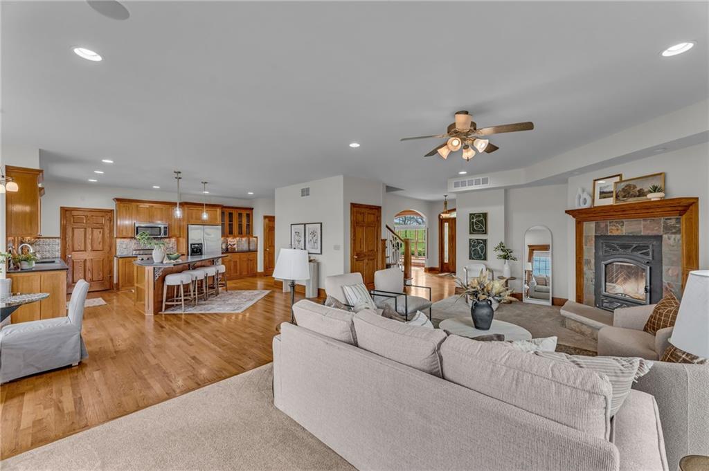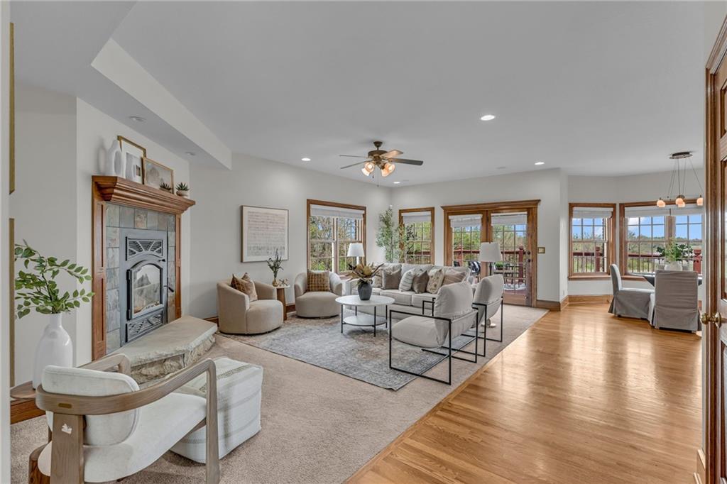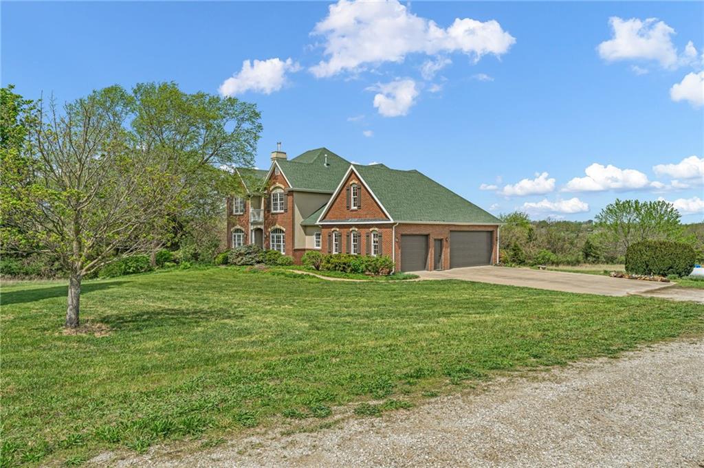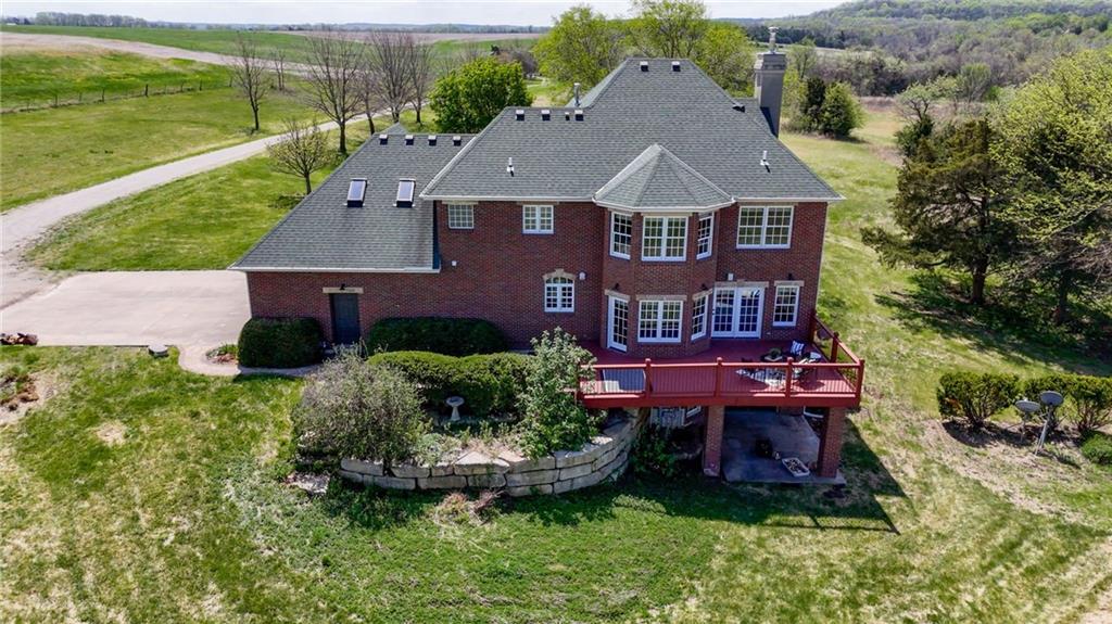 Don't miss this incredibly rare opportunity to own a beautiful estate on a 40-acre lake. Set on 45 acres near Baldwin City, this exceptional lakefront home offers seclusion and serene nature that's rich with wildlife. The property features direct shoreline access, ideal for fishing and water recreation. A spacious deck extends the living area outdoors and captures stunning views of the surrounding countryside. Inside, more than 3,500 square feet includes 4 bedrooms and 5 bath areas. The kitchen features soapstone countertops, a gas range, extensive cabinetry, and an oversized island with well-planned storage. A casual dining area sits just off the kitchen, while a formal dining room with crown molding provides a more defined space for gatherings. The living room is centered around a gorgeous fireplace with an oak mantel and insert, creating a warm focal point while entertaining guests. The primary suite offers a spacious retreat, complete with a jetted tub, walk-in shower, and a large walk-in closet. The walkout lower level is unfinished and ready for future expansion. It includes a nearly 800 sq ft concrete storm room beneath the garage, complete with built-in shelving. Additional features include newer roof, zoned HVAC, multiple water heaters, a water softener, and a humidifier. Thoughtful landscaping enhances the home’s natural surroundings. Access is convenient, with primarily paved roads and only a short gravel approach, an uncommon advantage for a property of this size. This is a rare opportunity to experience private lakefront living that is hard to come by.