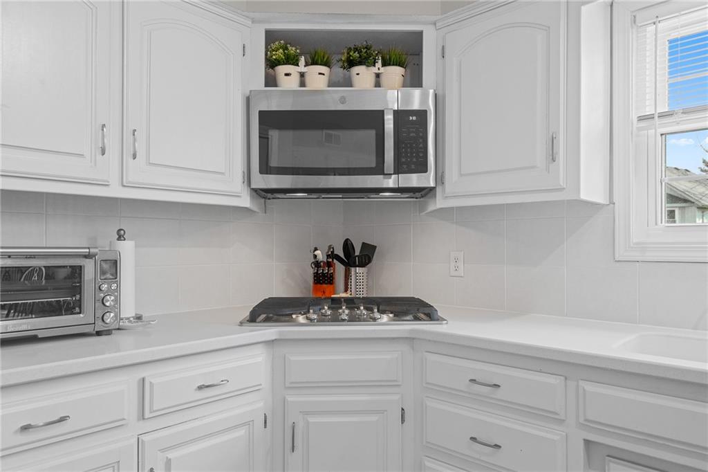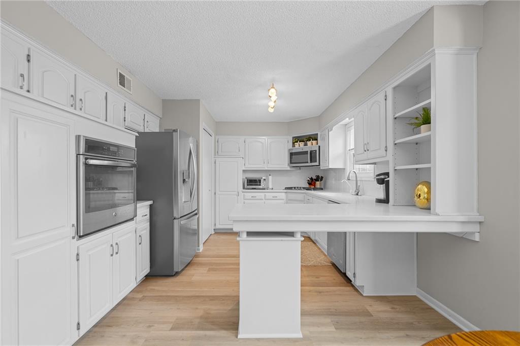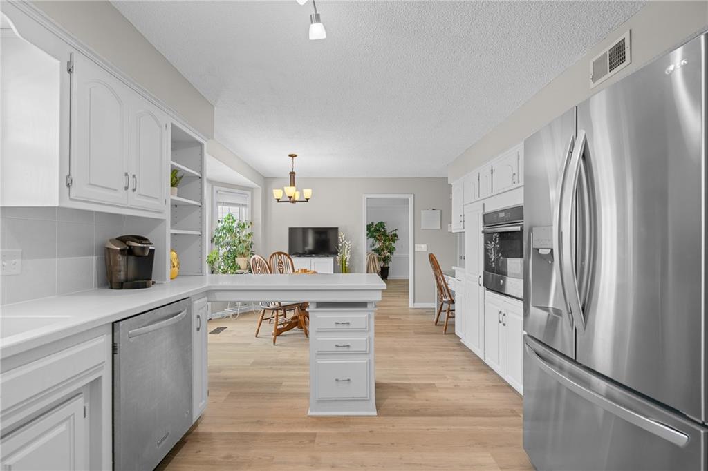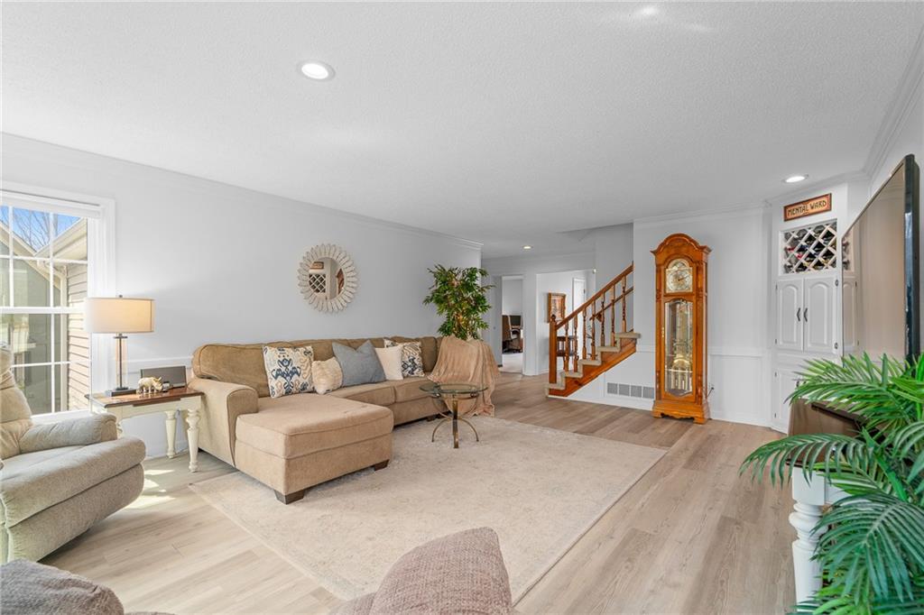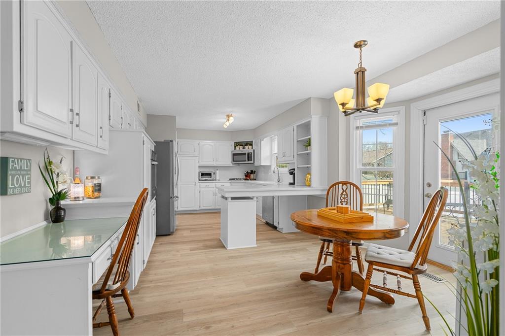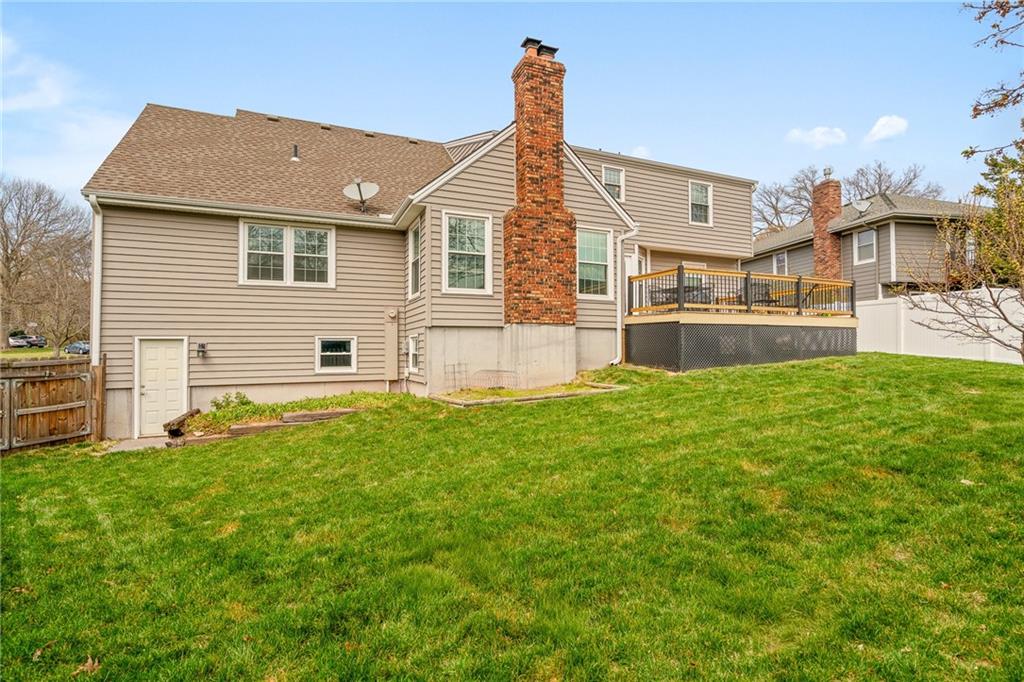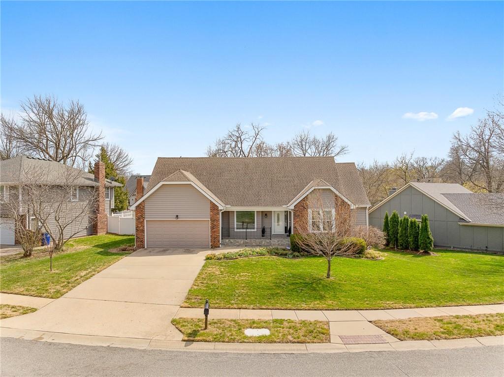 Welcome to the best kept secret in Overland Park, The Clearings neighborhood! Look no further! From the rocking-chair ready front porch and level front yard, you will love the curb appeal! This amazing 1.5 story home has space for everyone without losing that cozy feeling OR being too crowded. Enjoy two bedrooms upstairs, two on the main (including the primary suite), and two in the lower level with a full bath and walkout basement. From the entry way you can see the stunning hearth fireplace, formal dining room, and entrance to the guest bed/bath on the main. The white kitchen is light and bright with an eat in area and stainless steel appliances. You will love all the upgrades and special features like laundry hookups on the main floor, a working gas fireplace, the new primary suite vanity and shower, NEW windows, culligan water filtration system, new siding/gutters, NEW hard surface floors, and a brand new deck! NO HOA gives you ultimate freedom and affordability for this home with one-level living! Nothing to do but move in! Schedule your showing today, this one will go fast!
