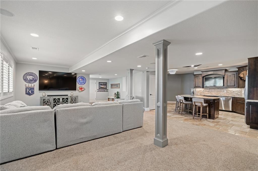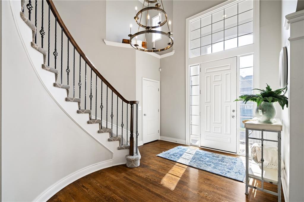 Welcome to this stunning 2-story home in highly sought after Woodland Reserve community in Lenexa! From the moment you arrive, the WOW factor is undeniable. This home has been beautifully updated and meticulously maintained with impressive attention to detail throughout. Step inside to discover gleaming hardwood floors that flow through the main level creating a warm and inviting atmosphere. The gorgeous kitchen is truly the heart of the home featuring modern finishes, ample cabinetry and granite counters w/generous space for cooking, gathering and entertaining. Work from home? Enjoy a quiet, private main level home office, perfect for productivity without distractions. After a long day, retreat to the spacious primary suite complete with a luxuriously updated primary bath designed for relaxation, offering stylish finishes and a spa-like feel. This home features 3 additional bedrooms providing comfort and flexibility for family and guests. The finished lower level is an entertainer's dream boasting an amazing bar area and plenty of space for movie nights, game days or hosting guests. Step outside to a professionally landscaped yard that enhances curb appeal and creates a beautiful outdoor setting. Enjoy time on the stamped concrete patio w/built in grill. The backyard sport court offers endless opportunities for recreation and fun. Car enthusiasts and eco-conscious buyers alike will appreciate the 3 car garage w/epoxy floors and EV charging power. Don't miss the built-in storage unit large enough to fit a golf cart (side of house). This exceptional home offers the perfect blend of luxury, functionality and standout features. (Did I mention plantation shutters throughout entire house?) Don't miss your chance to call this HOME!
