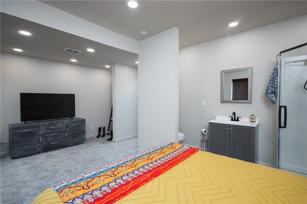 This spacious and beautifully appointed 2-story home offers 5 bedrooms, 3 full bathrooms, and 1 half bath, providing plenty of room for comfortable living and entertaining. The main level features an open and functional layout with granite countertops, a large walk-in pantry, and pre-wiring for surround sound—perfect for hosting or relaxing at home. A versatile flex space offers the option for a formal dining room or a home office. Upstairs, you’ll find the conveniently located laundry room along with generously sized bedrooms. The HVAC system is zoned to keep the upstairs just as comfortable as the main level all year long. The primary suite is a true retreat, featuring ample space, a walk-in closet, and a luxurious en-suite bath complete with a jetted tub. The finished basement expands your living space even further, offering endless possibilities along with abundant storage throughout the home. Step outside to enjoy the fenced backyard and patio—ideal for outdoor gatherings, kids, or pets. Car enthusiasts or those needing extra space will appreciate the 3-car garage. Located in a vibrant, family-friendly neighborhood filled with activity, residents enjoy access to incredible amenities including two pools, walking trails, and a scenic 30-acre stocked lake. Situated in the highly desirable Lee’s Summit School District, this home combines space, comfort, and community in one exceptional package.