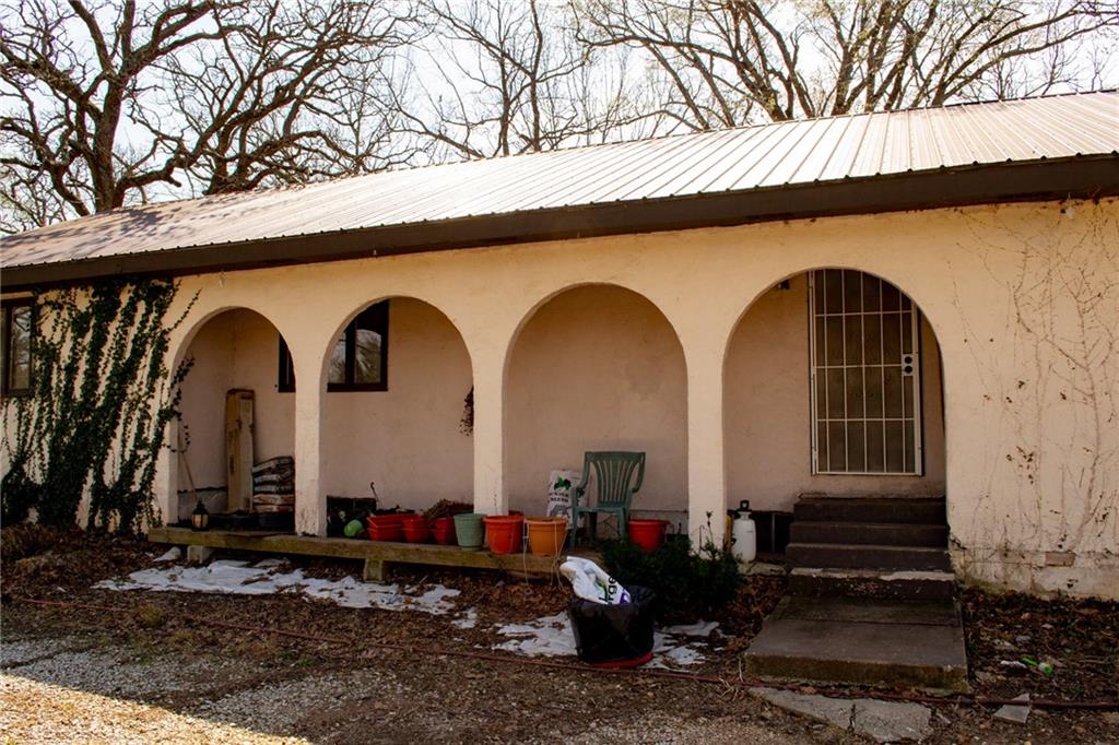 This rural home offers lots of promise to investors and do-it-yourselfers looking for a great opportunity to quickly build equity in a country estate. Just a few miles from Stockton Lake, this Spanish style home and acreage has a lot to offer. Stately oaks adorn the yard, offering plenty of shade and a striking presence. Numerous flower beds erupt in color and four archways welcome you onto the front porch, inviting a swing or some outdoor chairs for relaxation. Indoors, you'll love the spacious living room, where the country aesthetic is enhanced by the rough sawn beam ceiling. A wood stove promises toasty warmth on the coldest of winter days. The kitchen is spacious, but needs subfloor repair and new flooring. It features an island and plenty of cabinet space and is ready for your own custom touch. All four bedrooms and both bathrooms are located on the main floor, as is the laundry. The unfinished basement offers additional storage, a workbench, and shelter, and has a door to the back yard. Structurally, the house seems sound. Most of the work needed is cosmetic, including sheetrock, floor repairs, HVAC duct repairs, and painting. Horse lovers are especially sure to find the property to their liking. The crown jewel for the equestrian owner is the 60'x120' enclosed riding arena, complete with a sand floor, lighting and water. Another 30'x70' livestock barn affords more space for your livestock or pets, as as does a smaller loafing shed. If you're not into horses, the riding arena could be converted to boat and RV storage. With thousands of visitors to Stockton Lake each year, it's a sure bet that many of those visitors would prefer to store their boats and campers. With this property's location just minutes from the lake and on a paved highway, high demand for enclosed storage seems likely.