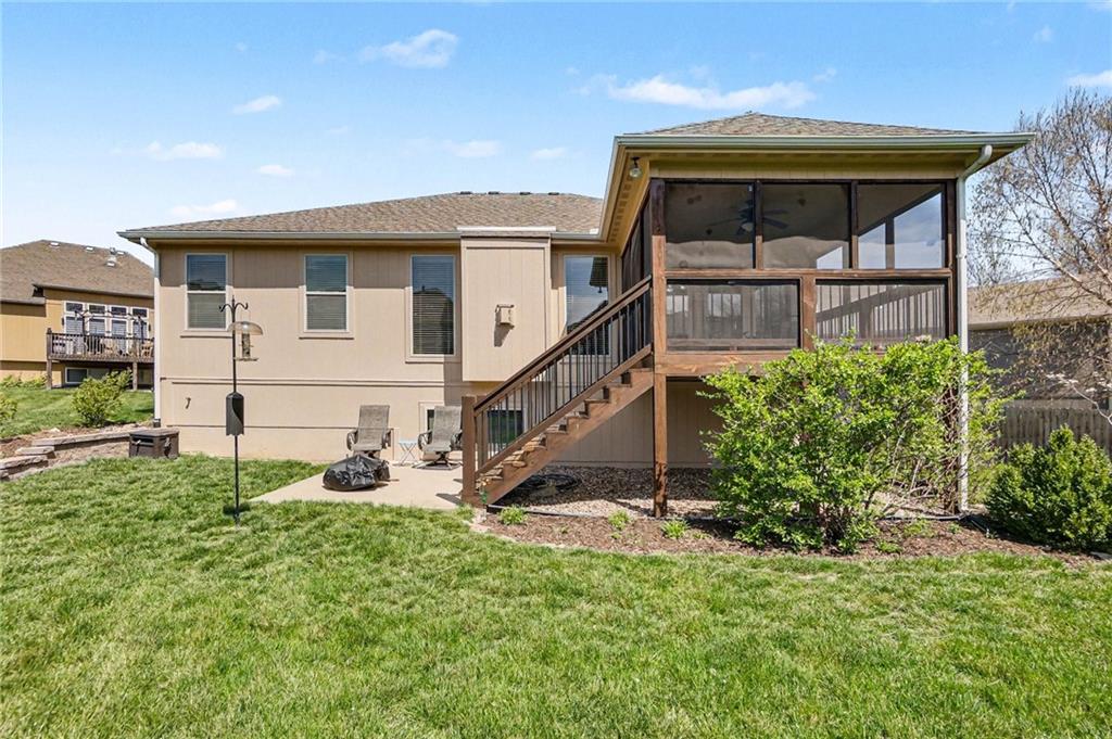 ONE OF A KIND TRUE RANCH HOME ON A QUIET CUL-DE-SAC IN GENESIS PLACE AT GREEN HILLS! Three bedrooms and two full baths on the main level. Hardwood floors and granite surfaces in the kitchen. Spacious living area and Owner's Suite too! Massive unfinished lower level could be additional bedrooms, recreation room or storage. Enjoy all four seasons in the beautiful upper level screened porch (12'x12') or relax on the lower level patio! Recent exterior paint job and very well-maintained home. THREE CAR GARAGE. Great value for the Northland in a desirable location. Close to HWY 152, I-29, KCI Airport and Liberty. Don't miss your chance to see this home when is goes live for showings on April 9, 2026!