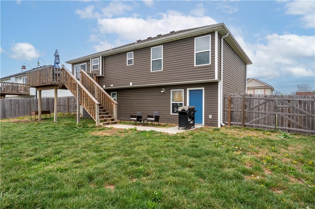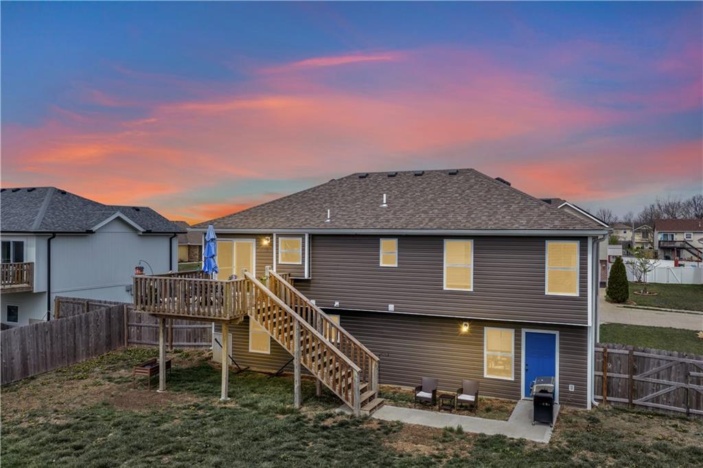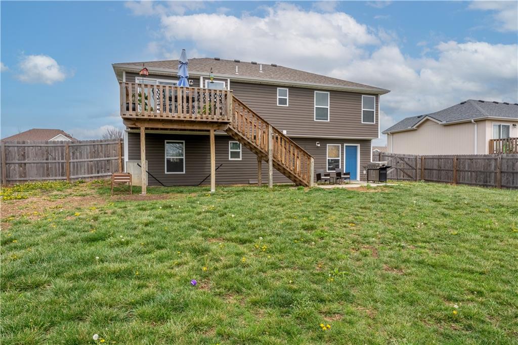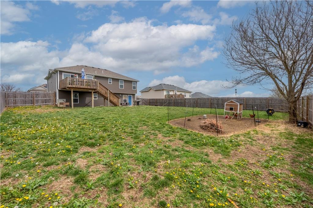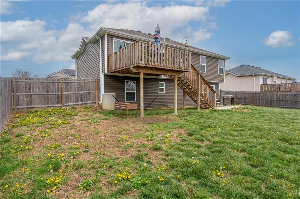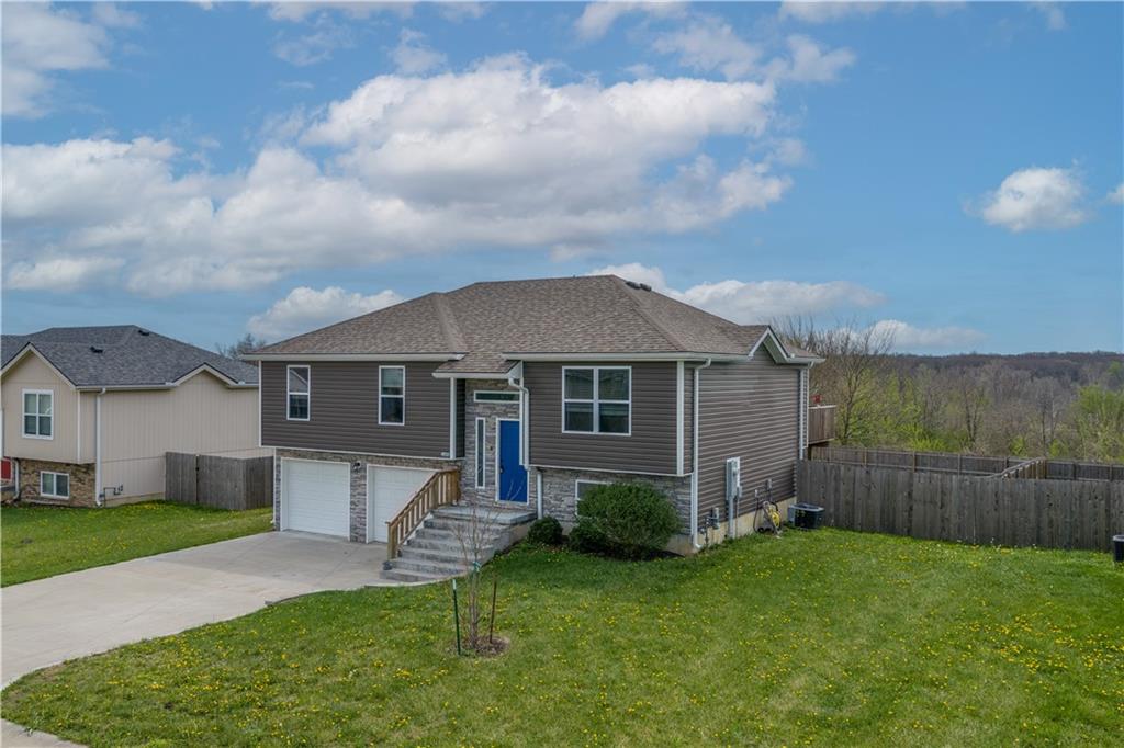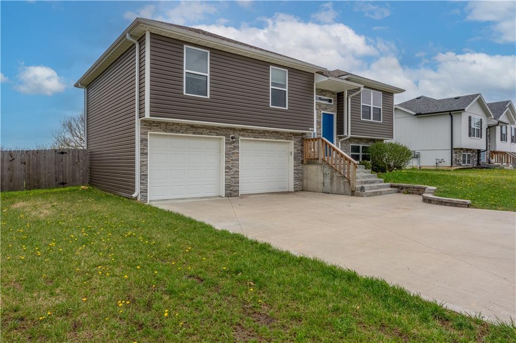 A LIKE-NEW home in a wonderful subdivision, conveniently within minutes to Whiteman AFB! The open floor plan is great for entertaining and staying involved in the conversations. Sellers just installed NEW LVP throughout the main level Living Room, Kitchen, Dining area, and hallway. The workable Kitchen features custom white painted cabinetry, prep island with pull out drawers, gas stove, and granite countertops. All appliances will stay with the home. Head out to the deck just off dining area for easy outdoor entertaining, grilling, and watching back yard activities with your favorite drink in hand. The secondary Bedrooms, full Bathroom, and Laundry Room are just down the hall. Escape to the Primary suite with ensuite Bathroom featuring a dual vanity and large walk-in shower with onyx walls, floor and corner seat. The lower level has flex space to use as a 4th bedroom OR 2nd living space with the third Bathroom nearby. There is spacious, two-car garage parking with extra storage space and back door access out to the patio. Sellers added wood privacy fencing to the level back yard where kids, pets, adults, and chickens (the coop and fencing can stay if desired) can roam and play safely! Your new home is ready for new memories!