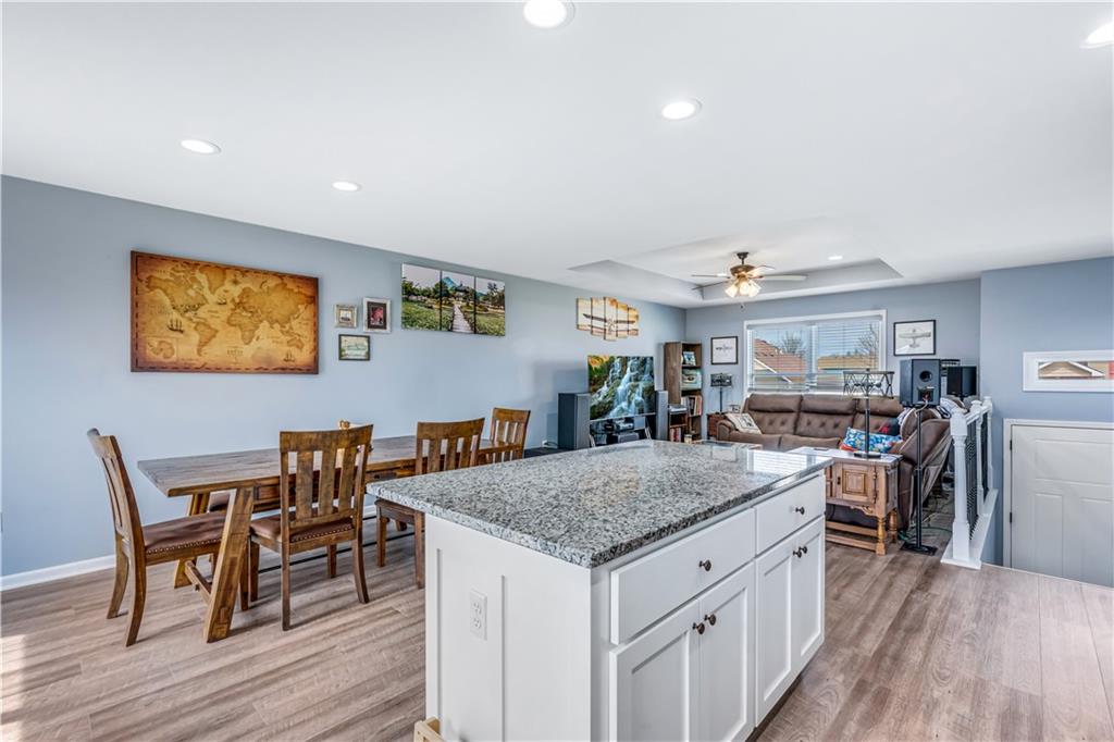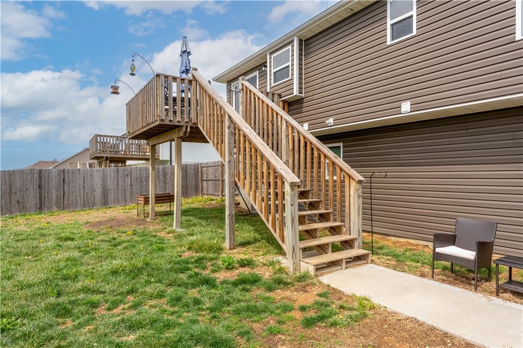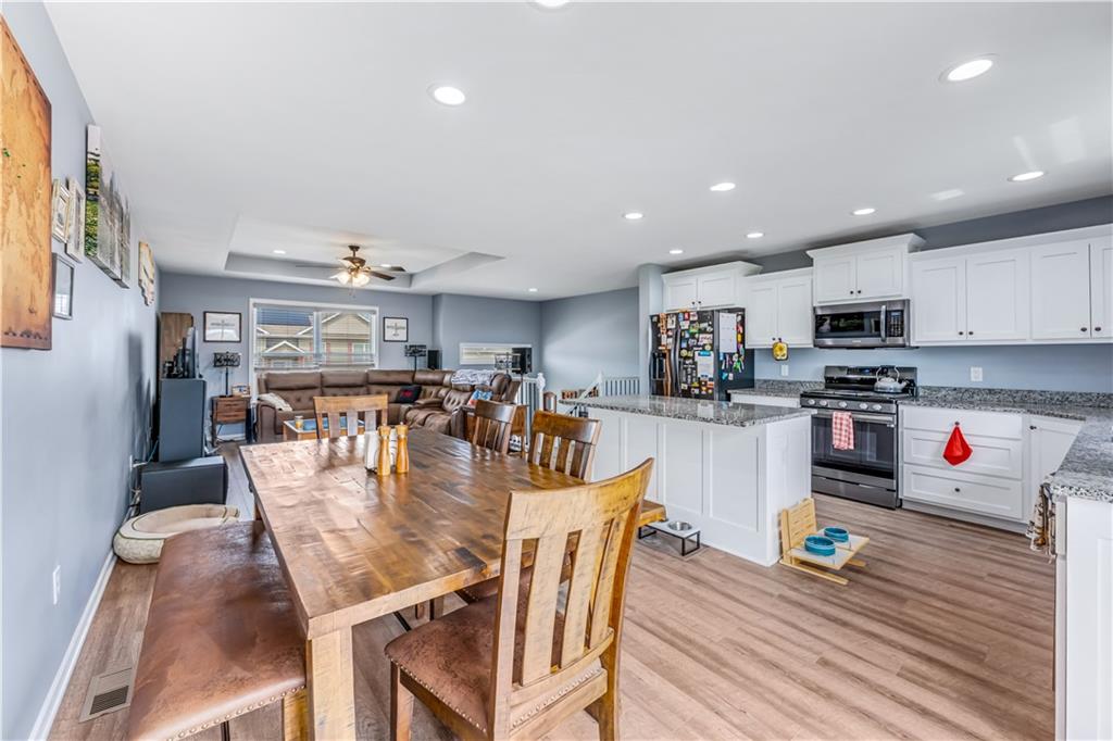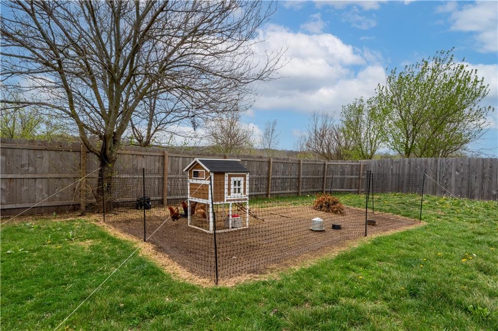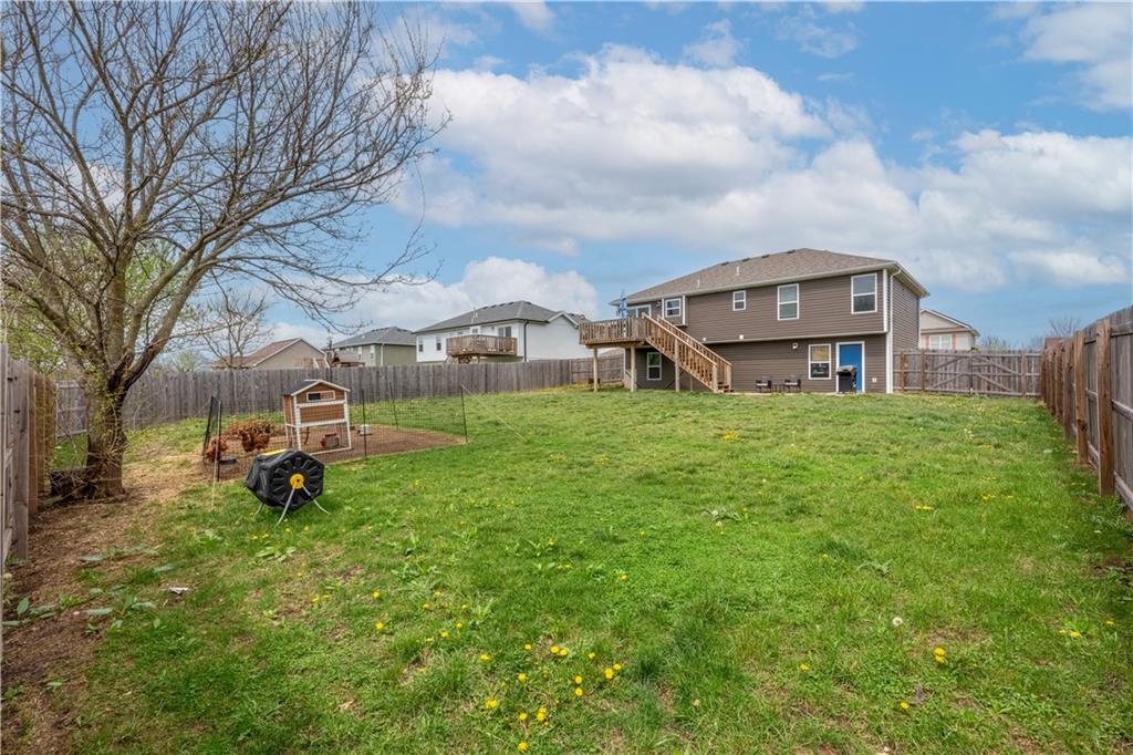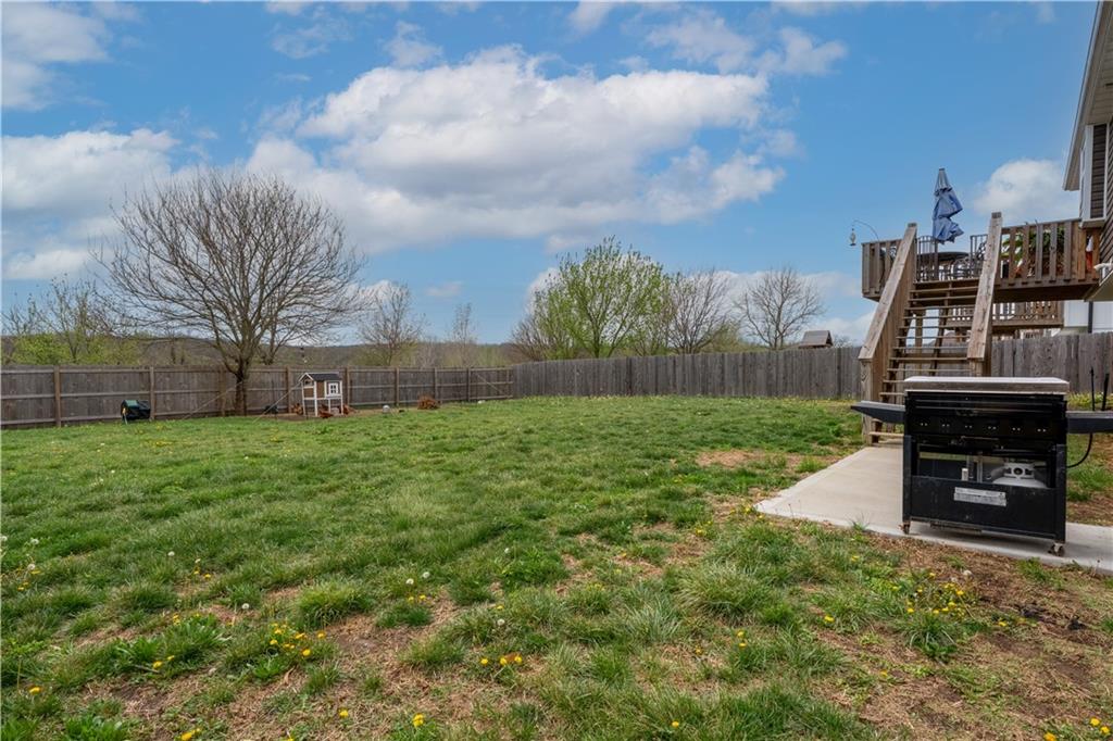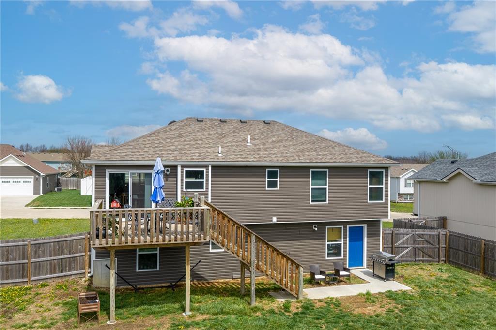 A LIKE-NEW home in a wonderful subdivision, conveniently within minutes to Whiteman AFB! The open floor plan is great for entertaining and staying involved in the conversations. Sellers just installed NEW LVP throughout the main level Living Room, Kitchen, Dining area, and hallway. The workable Kitchen features custom white painted cabinetry, prep island with pull out drawers, gas stove, and granite countertops. All appliances will stay with the home. Head out to the deck just off dining area for easy outdoor entertaining, grilling, and watching back yard activities with your favorite drink in hand. The secondary Bedrooms, full Bathroom, and Laundry Room are just down the hall. Escape to the Primary suite with ensuite Bathroom featuring a dual vanity and large walk-in shower with onyx walls, floor and corner seat. The lower level has flex space to use as a 4th bedroom OR 2nd living space with the third Bathroom nearby. There is spacious, two-car garage parking with extra storage space and back door access out to the patio. Sellers added wood privacy fencing to the level back yard where kids, pets, adults, and chickens (the coop and fencing can stay if desired) can roam and play safely! Your new home is ready for new memories!