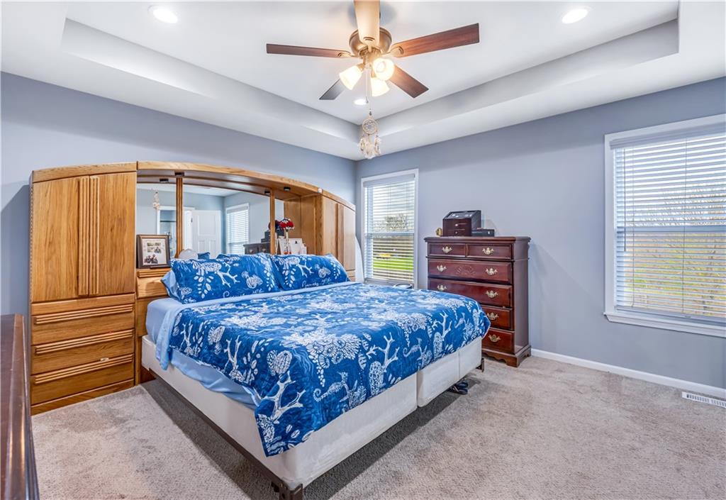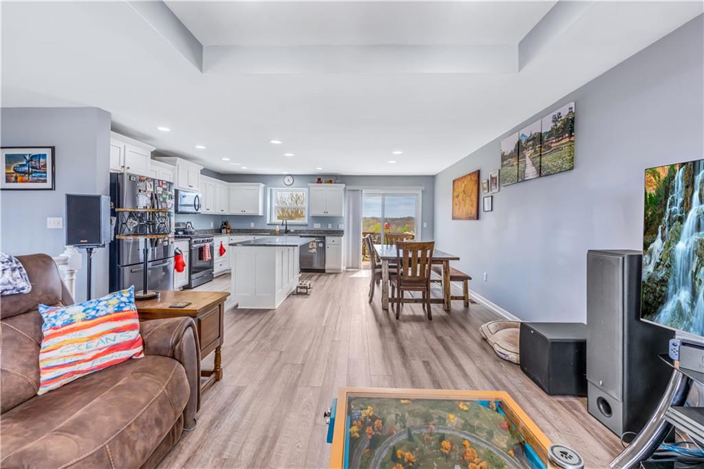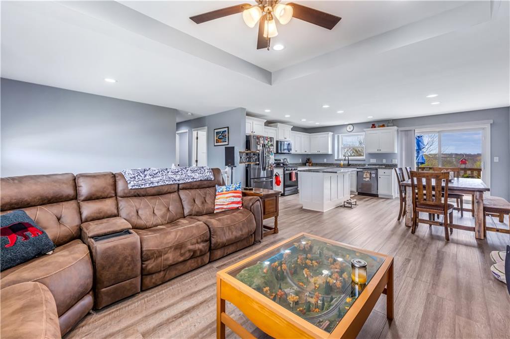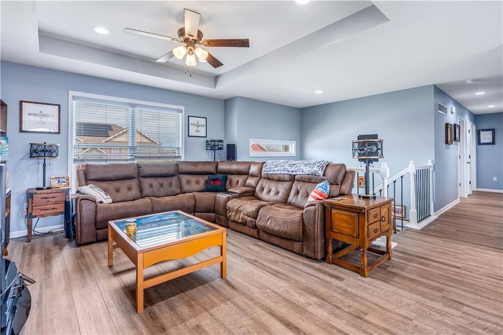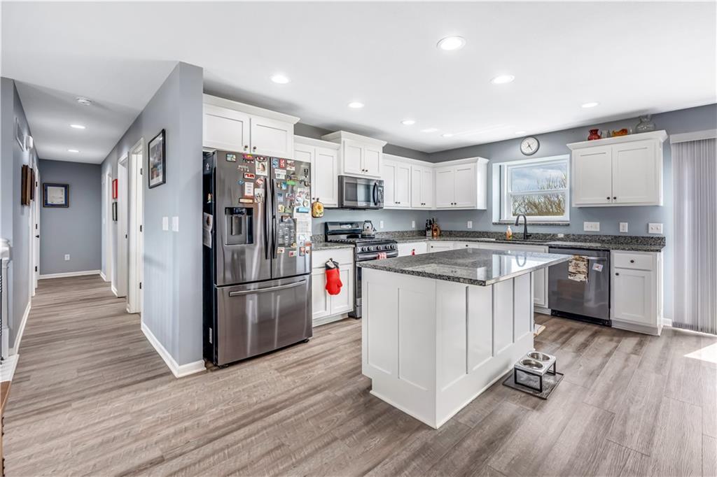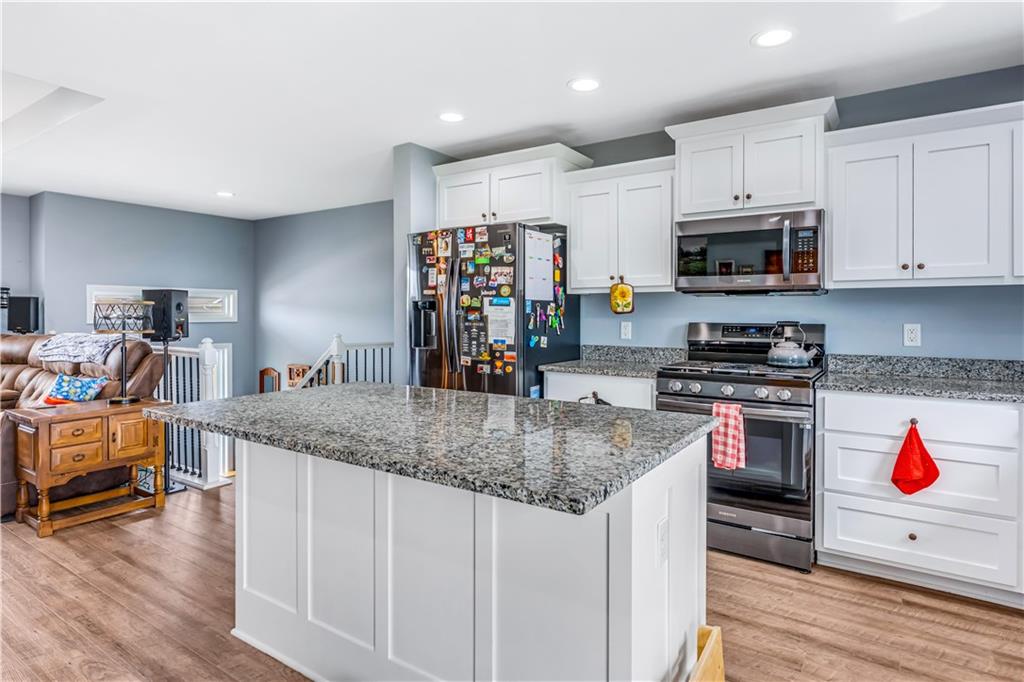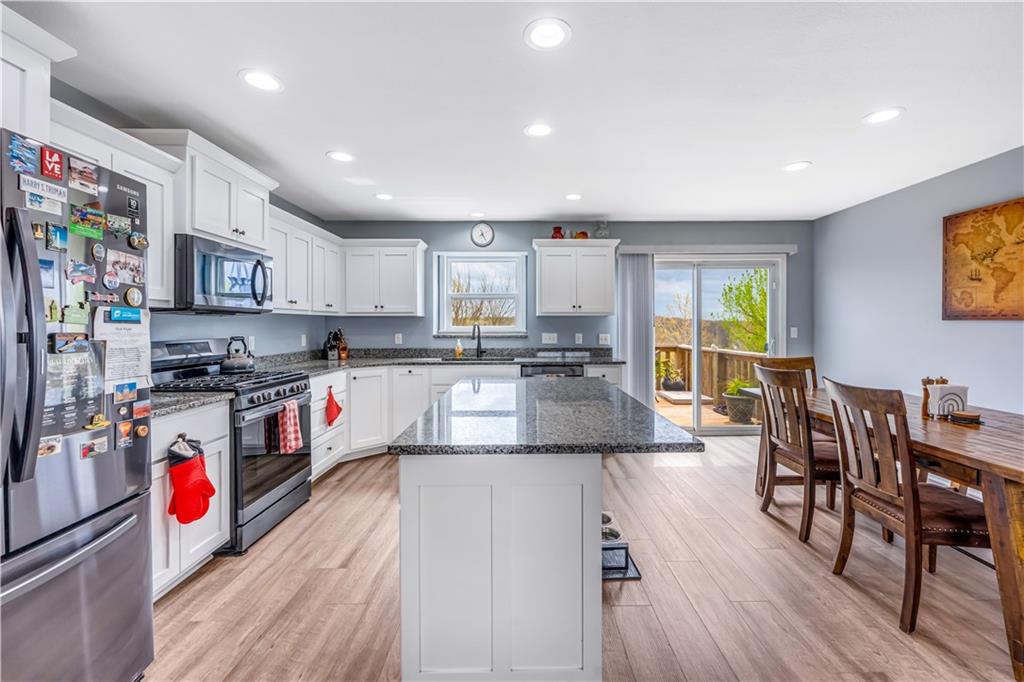 A LIKE-NEW home in a wonderful subdivision, conveniently within minutes to Whiteman AFB! The open floor plan is great for entertaining and staying involved in the conversations. Sellers just installed NEW LVP throughout the main level Living Room, Kitchen, Dining area, and hallway. The workable Kitchen features custom white painted cabinetry, prep island with pull out drawers, gas stove, and granite countertops. All appliances will stay with the home. Head out to the deck just off dining area for easy outdoor entertaining, grilling, and watching back yard activities with your favorite drink in hand. The secondary Bedrooms, full Bathroom, and Laundry Room are just down the hall. Escape to the Primary suite with ensuite Bathroom featuring a dual vanity and large walk-in shower with onyx walls, floor and corner seat. The lower level has flex space to use as a 4th bedroom OR 2nd living space with the third Bathroom nearby. There is spacious, two-car garage parking with extra storage space and back door access out to the patio. Sellers added wood privacy fencing to the level back yard where kids, pets, adults, and chickens (the coop and fencing can stay if desired) can roam and play safely! Your new home is ready for new memories!