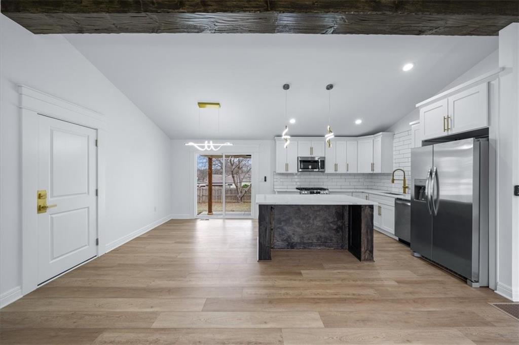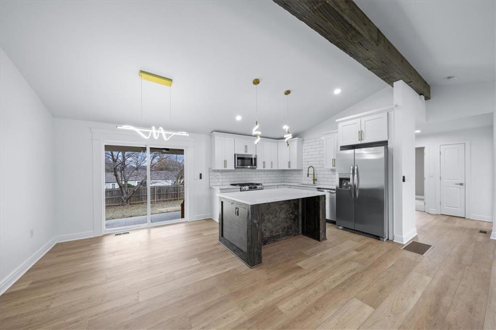 Beautifully fully updated 3 bed, 2 bath ranch in Overland Park! This move in ready home has been thoughtfully renovated from top to bottom with nearly everything brand new including HVAC, roof, gutters, water heater, and new fixtures throughout, giving the home a fresh modern feel at every turn. Fresh interior paint and updated landscaping create standout curb appeal, while the inside welcomes you with a bright open concept layout perfect for everyday living and entertaining. The kitchen is a true showpiece featuring a large quartz island, subway tile backsplash, gas range stove, ample cabinetry, and generous prep space. Just off the kitchen, enjoy seamless indoor outdoor living with a brand new covered patio that is perfect for relaxing evenings or hosting guests year round. Both bathrooms have been fully updated with beautifully tiled showers and modern finishes. The spacious primary suite offers a spa like retreat complete with a soaking tub, dual vanities, a glass enclosed shower, and a large walk in closet. With high end updates, stylish finishes, and a functional layout throughout, this home is truly turn key and ready for its next owner.