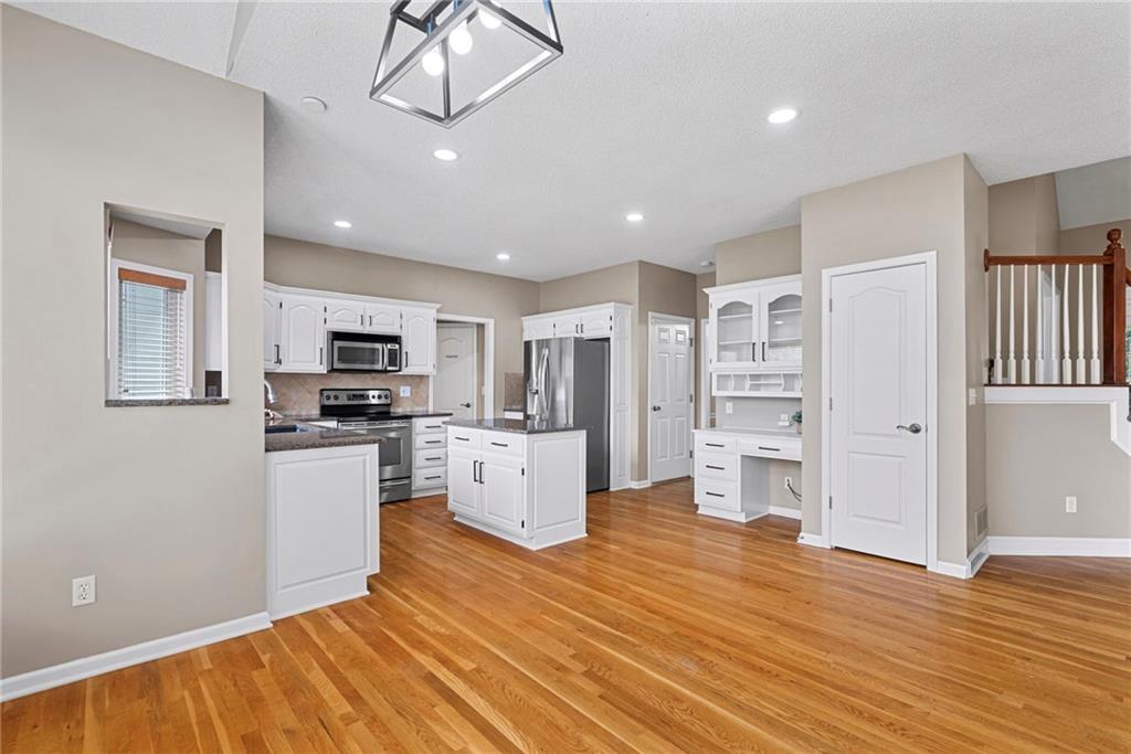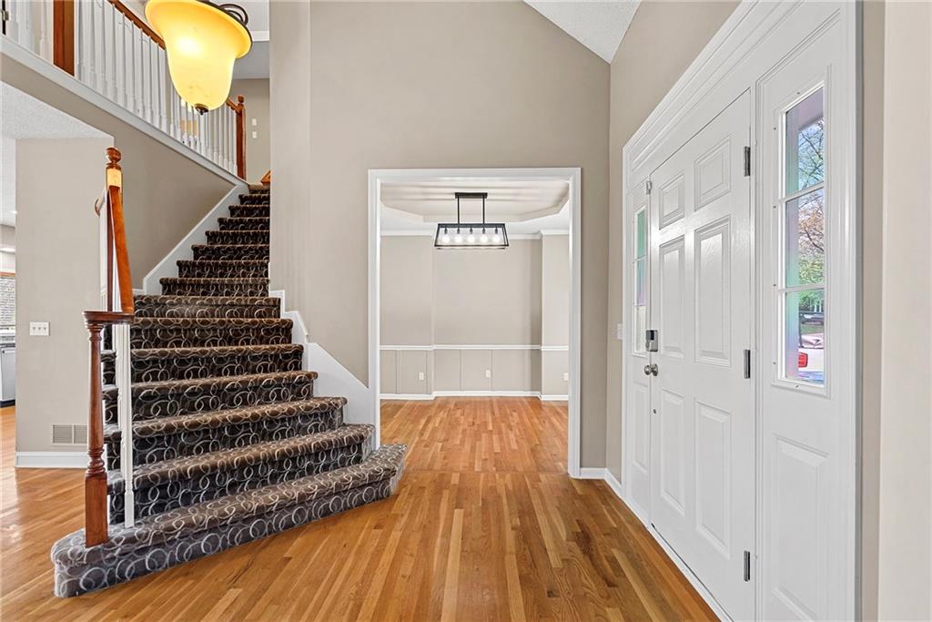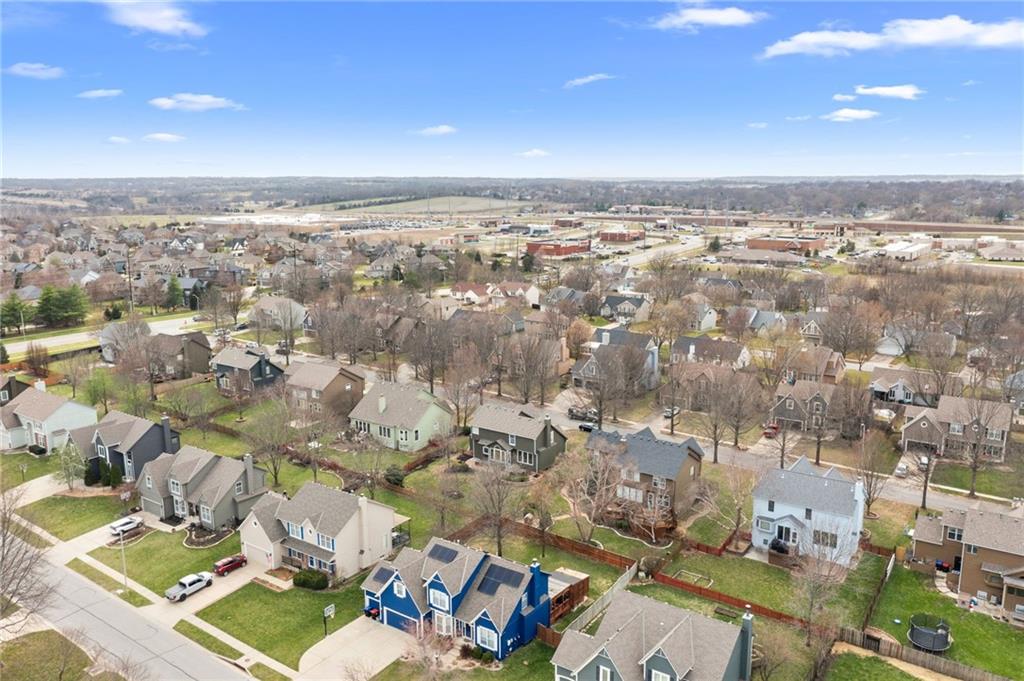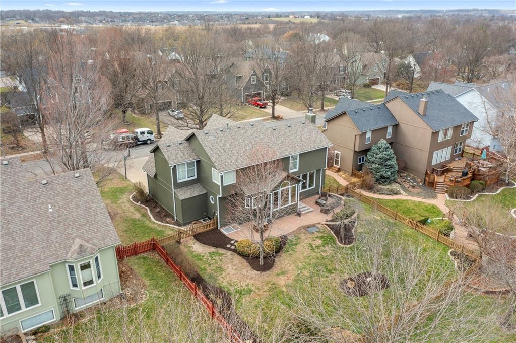 Welcome to this beautifully updated 2-story home in the highly desirable Woodsonia community, located in the award-winning De Soto School District. Thoughtfully refreshed from top to bottom, this home blends timeless charm with modern updates and is truly move-in ready. Step inside to an inviting open floor plan filled with natural light. The main level features fresh interior paint, updated lighting, and a warm, welcoming great room with a fireplace that flows seamlessly into the kitchen. The kitchen has been refreshed with painted cabinetry, updated hardware, and offers abundant storage with a walk-in pantry, making it ideal for everyday living and entertaining. A formal sitting room on the main level provides added flexibility and could easily serve as a home office. Upstairs, you will find brand new carpet throughout all bedrooms, along with a spacious primary suite designed for comfort and functionality. The finished basement offers a versatile space ideal for a rec room, home office, or non-conforming fifth bedroom. Step outside and enjoy your private backyard oasis, complete with a brand-new patio, a new fence, and professionally updated landscaping. Additional exterior improvements include new gutters, fresh exterior paint, wood repairs, outdoor lighting, and a poly-jacked driveway for long-term durability. Major system upgrades, including a new roof in 2024 and a French drain system, provide peace of mind for years to come. Ideally located with easy highway access, this home offers convenience to shopping, dining, and everything the Kansas City metro has to offer. This home offers the perfect combination of space, updates, and location. Do not miss your opportunity to make it yours.