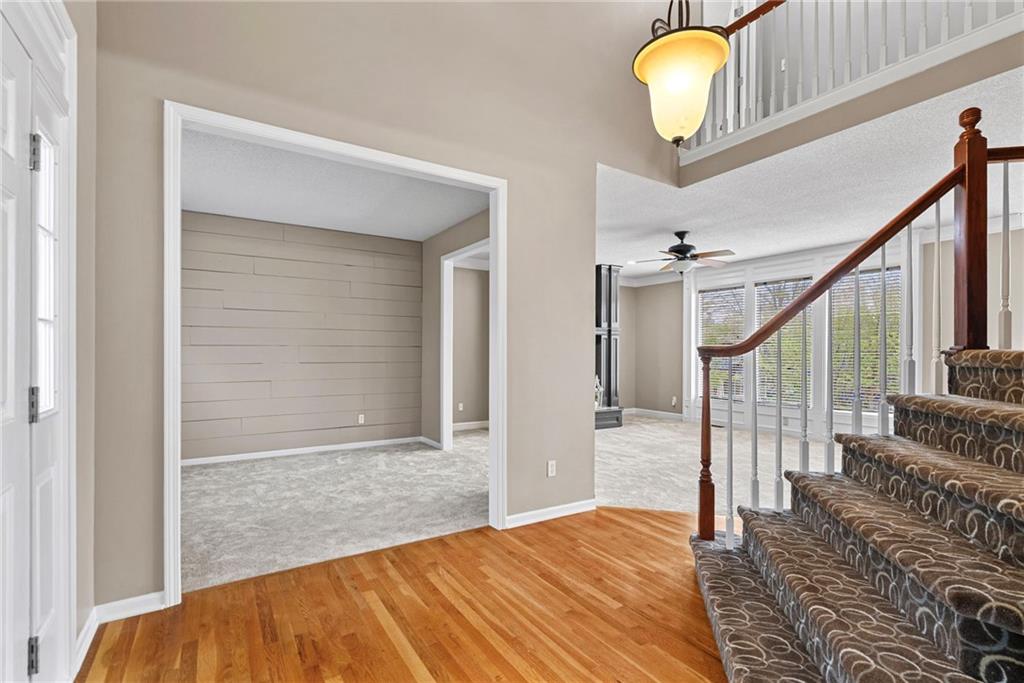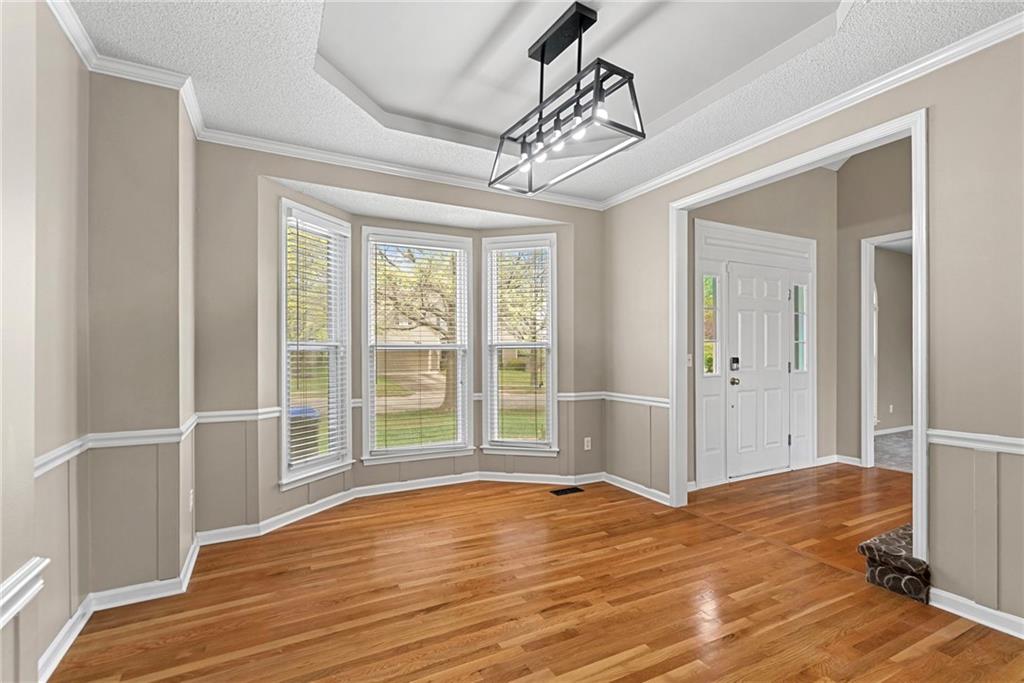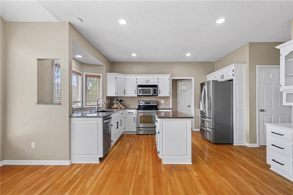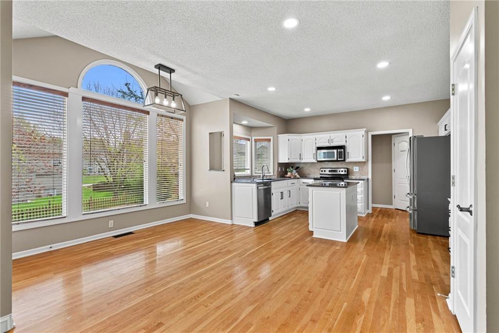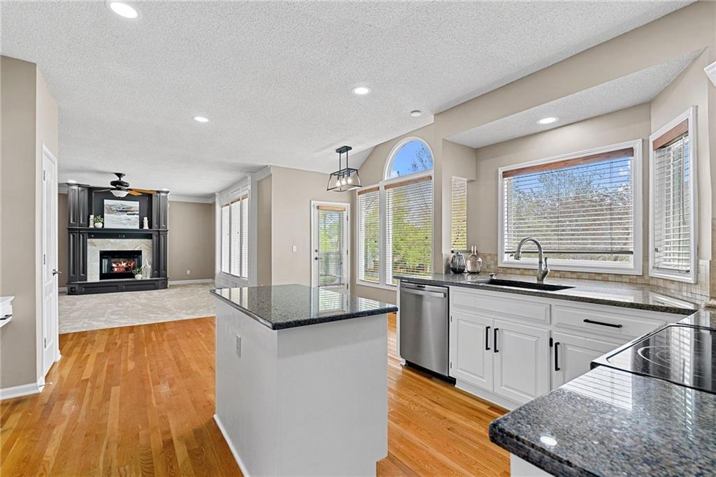 Welcome to this beautifully updated 2-story home in the highly desirable Woodsonia community, located in the award-winning De Soto School District. Thoughtfully refreshed from top to bottom, this home blends timeless charm with modern updates and is truly move-in ready. Step inside to an inviting open floor plan filled with natural light. The main level features fresh interior paint, updated lighting, and a warm, welcoming great room with a fireplace that flows seamlessly into the kitchen. The kitchen has been refreshed with painted cabinetry, updated hardware, and offers abundant storage with a walk-in pantry, making it ideal for everyday living and entertaining. A formal sitting room on the main level provides added flexibility and could easily serve as a home office. Upstairs, you will find brand new carpet throughout all bedrooms, along with a spacious primary suite designed for comfort and functionality. The finished basement offers a versatile space ideal for a rec room, home office, or non-conforming fifth bedroom. Step outside and enjoy your private backyard oasis, complete with a brand-new patio, a new fence, and professionally updated landscaping. Additional exterior improvements include new gutters, fresh exterior paint, wood repairs, outdoor lighting, and a poly-jacked driveway for long-term durability. Major system upgrades, including a new roof in 2024 and a French drain system, provide peace of mind for years to come. Ideally located with easy highway access, this home offers convenience to shopping, dining, and everything the Kansas City metro has to offer. This home offers the perfect combination of space, updates, and location. Do not miss your opportunity to make it yours.