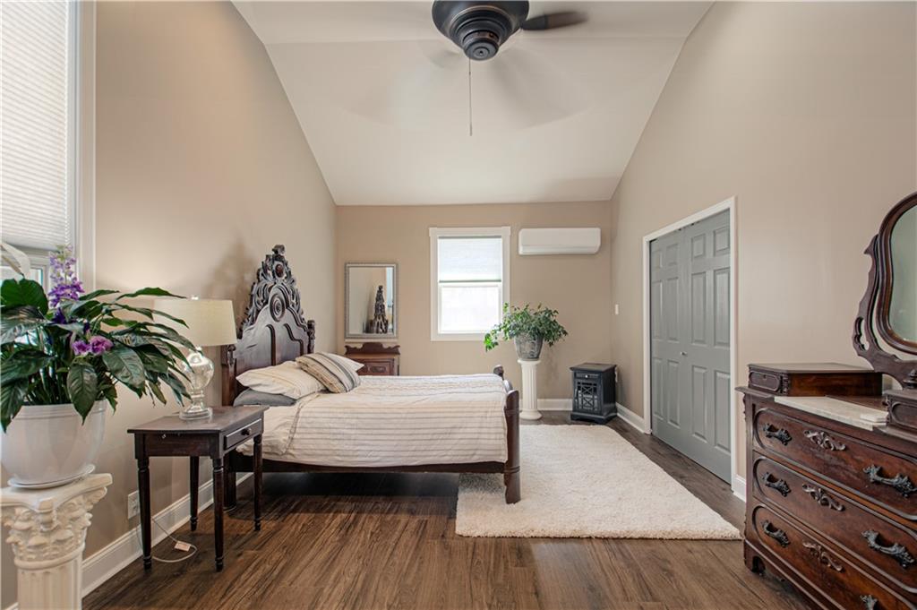 This historical three bedroom home in Liberty Missouri, listed as a national historic landmark, preserves original 1875 craftsmanship while offering modern kitchen, bath, and structural updates. At 225 Groom Street in Groom’s Addition, this rare Italianate residence features restored masonry, remodeled interiors, wraparound porches, and a three car garage with workshop space. This historic home offers a one and a half story layout with a light filled primary suite on the main level and two upstairs bedrooms with oak floors throughout. The east bedroom features stained glass doors that open to the upper wraparound porch, while the north bedroom showcases bay windows and generous natural light. Upstairs bathroom is newly remodeled with a tub and shower and antique fixtures. The foyer welcomes you with a polished wooden staircase, intricate woodwork, and detailed newel posts. The formal living room includes the original fireplace, antique gasolier chandelier, transom windows, and lower porch access. The formal dining room features bay windows, original fireplace, gasolier chandelier, transom window, and stained glass door to the porch. The remodeled kitchen includes stainless steel appliances, KraftMaid cabinetry, and granite countertops, plus a large entry area with laundry and a spacious walk in pantry. The main floor bath is remodeled with marble floors, stained glass, and shower. A separate family or rec room offers accent ceilings, bar, built in media cabinet, and direct access to a private patio. The basement is clean and dry with windows, original fireplace, storage space, and outside access. Exterior improvements include newly tuck pointed masonry, restored concrete and brick foundation, newly poured front and rear concrete driveways, new 6 foot privacy fence, landscaped grounds, and a three car garage with ample storage and workshop area.
