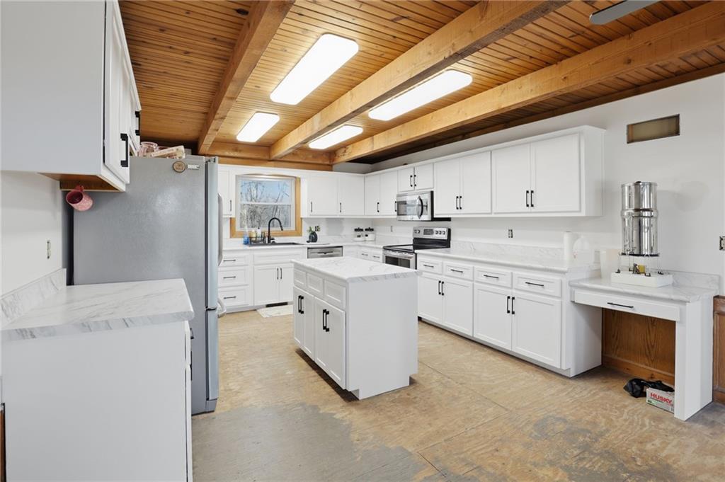 Looking for space to spread out, work, and enjoy a little more freedom? This acreage property just outside of Lawson offers approximately 25 acres of open ground and mature trees, creating the kind of setting that’s hard to find. Inside, the ranch-style home offers a practical layout with comfortable living areas, including a country kitchen with updated cabinetry and countertops. Bathrooms have been remodeled, giving the home a strong start for the updates already in place. One of the standout features is the wood-burning fireplace with insert connected to the ductwork—providing an additional heat source throughout the home and the potential to reduce propane use during colder months. Some interior updates are still in progress, including portions of paint and trim. Flooring has not been fully completed, offering an opportunity for the next owner to select finishes based on their preference, depending on terms. Step outside and the possibilities really open up. A large barn (approximately 60x40) with three stalls, water, and electricity is ready for livestock or equipment. The separate shop (approximately 30x50) with water, heat, air conditioning, and concrete floors offers the kind of space that’s hard to find—ideal for projects, storage, or workspace. An additional shed provides even more room for tools or gear. The property also features fruit trees and three large raised garden beds, offering the ability to grow your own produce, flowers, or simply enjoy the outdoor space in a more intentional way. Whether it’s working in the shop, spending time outdoors, tending the garden, or simply enjoying the space and privacy, this property offers a lifestyle that’s difficult to match. An additional approximately 15 acres located east of the property is also available for purchase, either with the home or separately. Located in the well-regarded Lawson School District with convenient access to nearby highways.