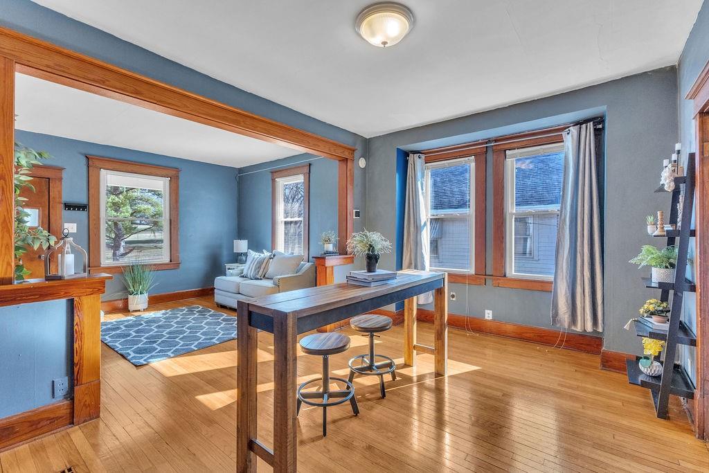 Charming, move-in ready 2-bedroom home that is well-maintained, offering a warm, inviting feel with plenty of character throughout. Ideally located in a great centralized area, this home is close to the Belt Highway and offers easy access to numerous nearby walking trails. The main living areas showcase original hardwood floors and beautiful woodwork, adding timeless appeal. The bathroom has been tastefully updated with ceramic tile flooring and a modern tiled shower. The kitchen features a spacious eat-in area, along with a separate formal dining room—perfect for both everyday living and entertaining. Step outside to enjoy the adorable covered front porch overlooking the Moila Country Club golf course, an ideal place to sip your morning coffee. The property also includes a new woodprivacy fence, creating a secure and spacious yard perfect for pets or children to play. Additional highlights include a detached garage and a large, open basement offering excellent storage space.