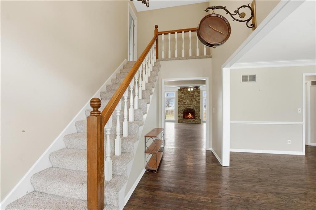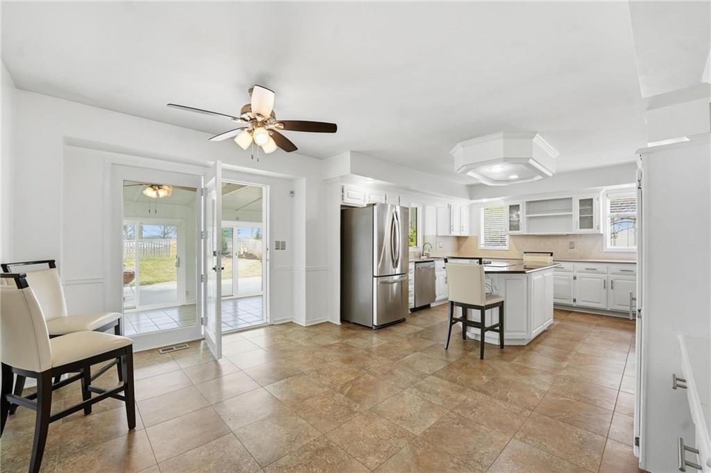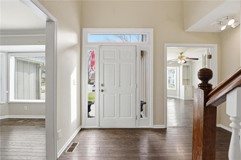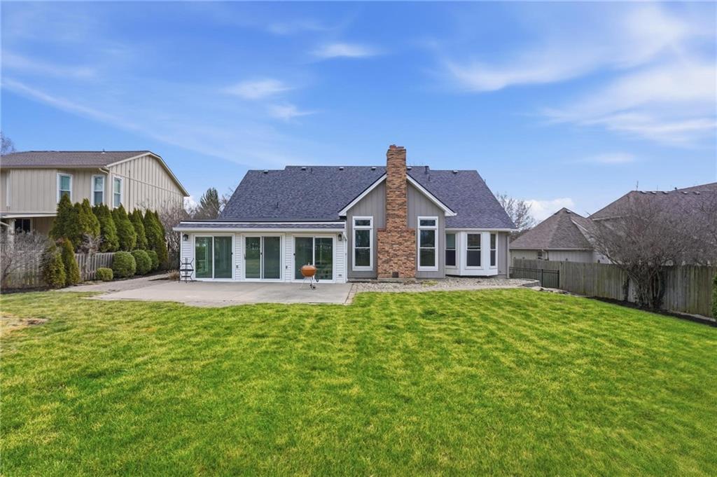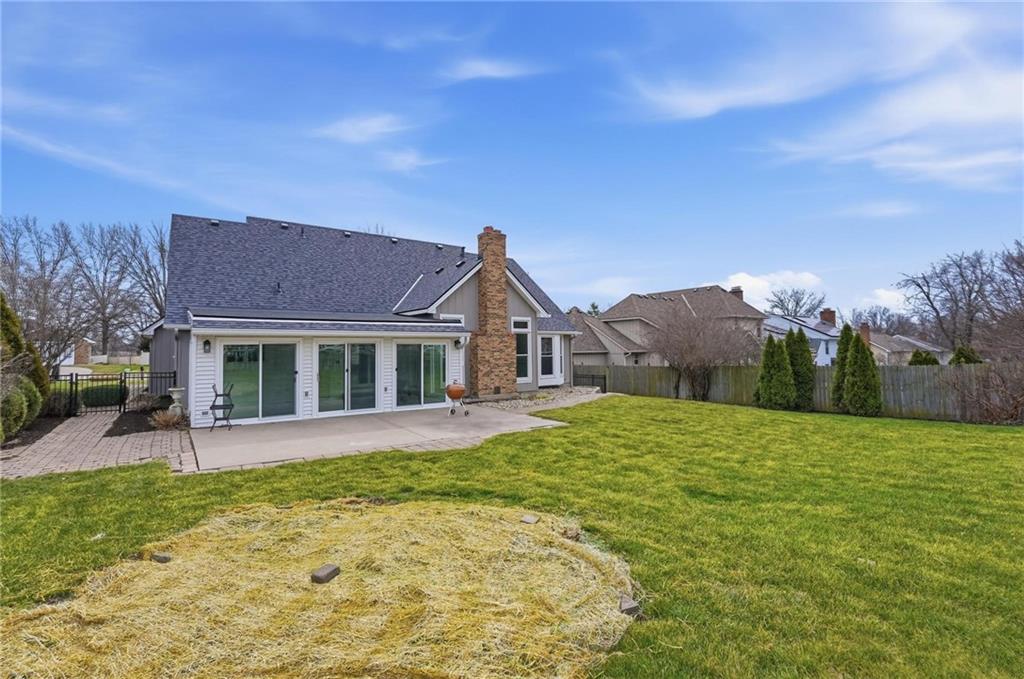 This spacious 1.5-story home offers a well-designed layout with a blend of functional spaces and inviting features throughout. The main level showcases hardwood flooring and includes a generous living room with a gas fireplace, a formal dining room, and a dedicated office, providing flexibility for both everyday living and work-from-home needs. The kitchen is equipped with granite countertops, an island, pantry, and eat-in area, and flows seamlessly into a sunroom that opens to a patio and fenced backyard. The primary suite is located on the main level and features a walk-in closet along with a private bath offering a double vanity, a jacuzzi tub, and a separate shower. Upstairs, three additional bedrooms share a full hall bath, with added storage including a linen closet and an oversized hallway closet. Additional highlights include main floor laundry and an unfinished basement offering potential for future expansion. Recent mechanical updates provide peace of mind, including a brand new roof installed just two weeks ago, a new air conditioning system installed in July 2025, and a furnace replaced in October 2024. The home also features a newer water heater, radon mitigation system installed in 2023, Google Fiber availability, and an electric vehicle charging setup in the garage.