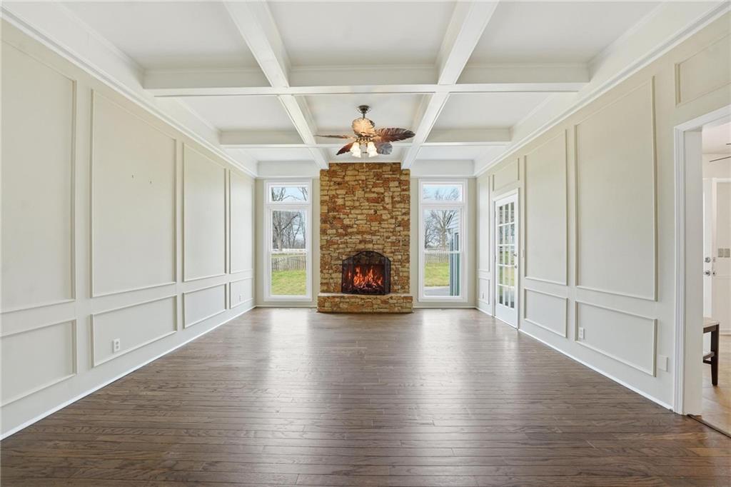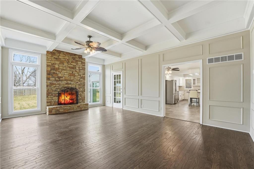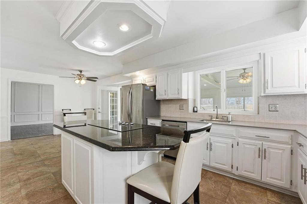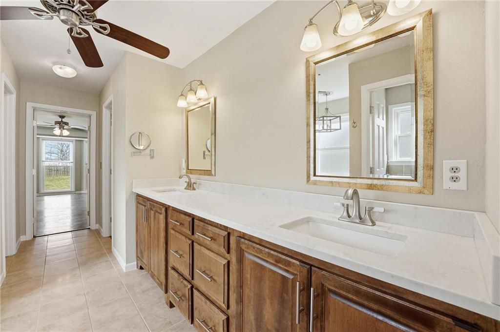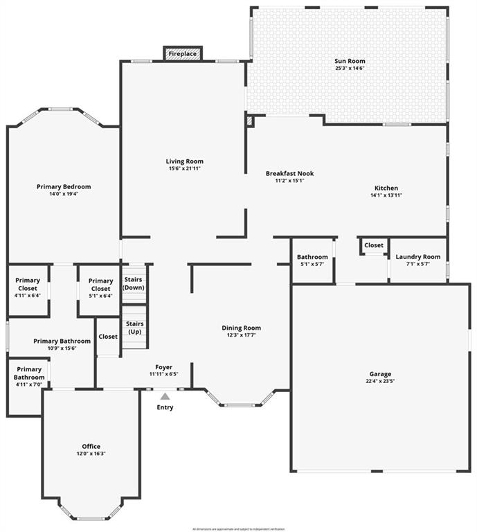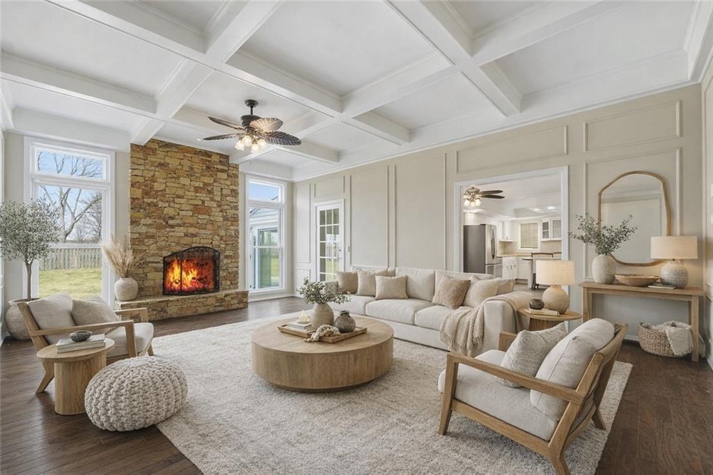 This spacious 1.5-story home offers a well-designed layout with a blend of functional spaces and inviting features throughout. The main level showcases hardwood flooring and includes a generous living room with a gas fireplace, a formal dining room, and a dedicated office, providing flexibility for both everyday living and work-from-home needs. The kitchen is equipped with granite countertops, an island, pantry, and eat-in area, and flows seamlessly into a sunroom that opens to a patio and fenced backyard. The primary suite is located on the main level and features a walk-in closet along with a private bath offering a double vanity, a jacuzzi tub, and a separate shower. Upstairs, three additional bedrooms share a full hall bath, with added storage including a linen closet and an oversized hallway closet. Additional highlights include main floor laundry and an unfinished basement offering potential for future expansion. Recent mechanical updates provide peace of mind, including a brand new roof installed just two weeks ago, a new air conditioning system installed in July 2025, and a furnace replaced in October 2024. The home also features a newer water heater, radon mitigation system installed in 2023, Google Fiber availability, and an electric vehicle charging setup in the garage.