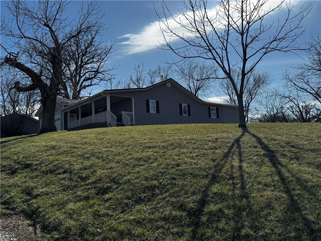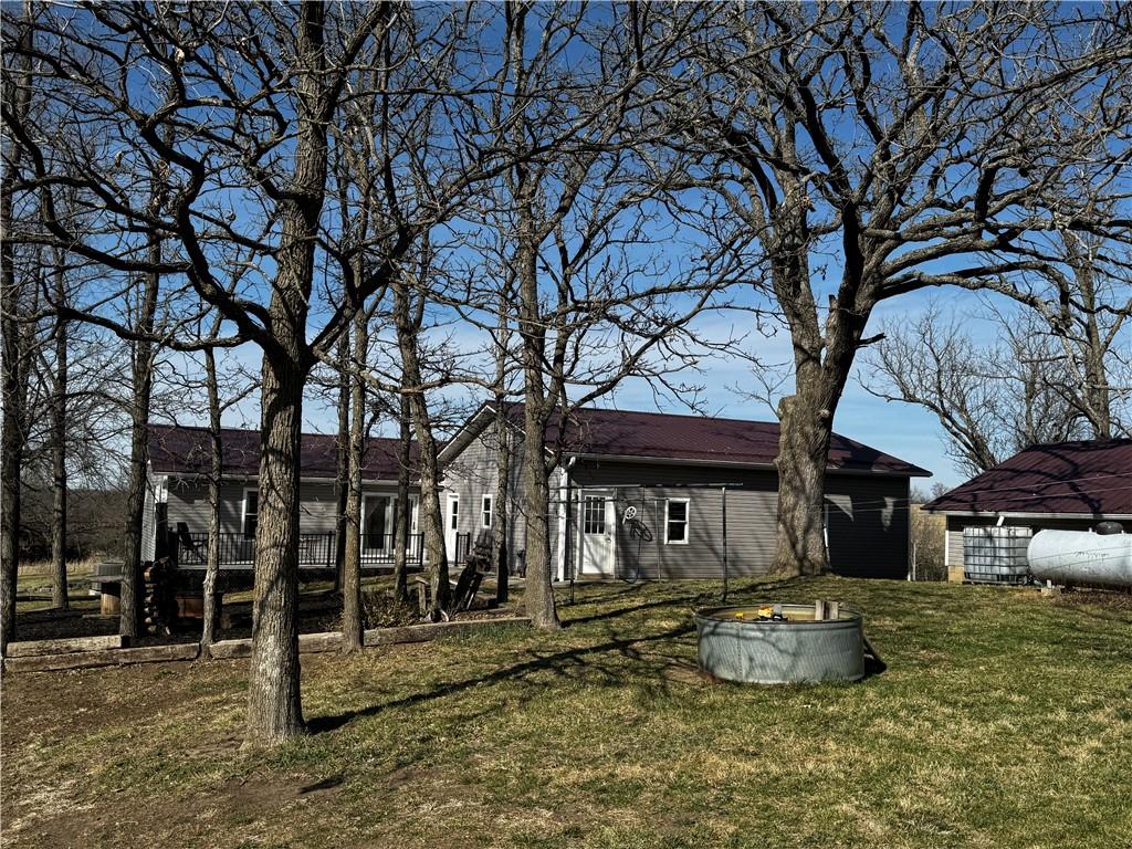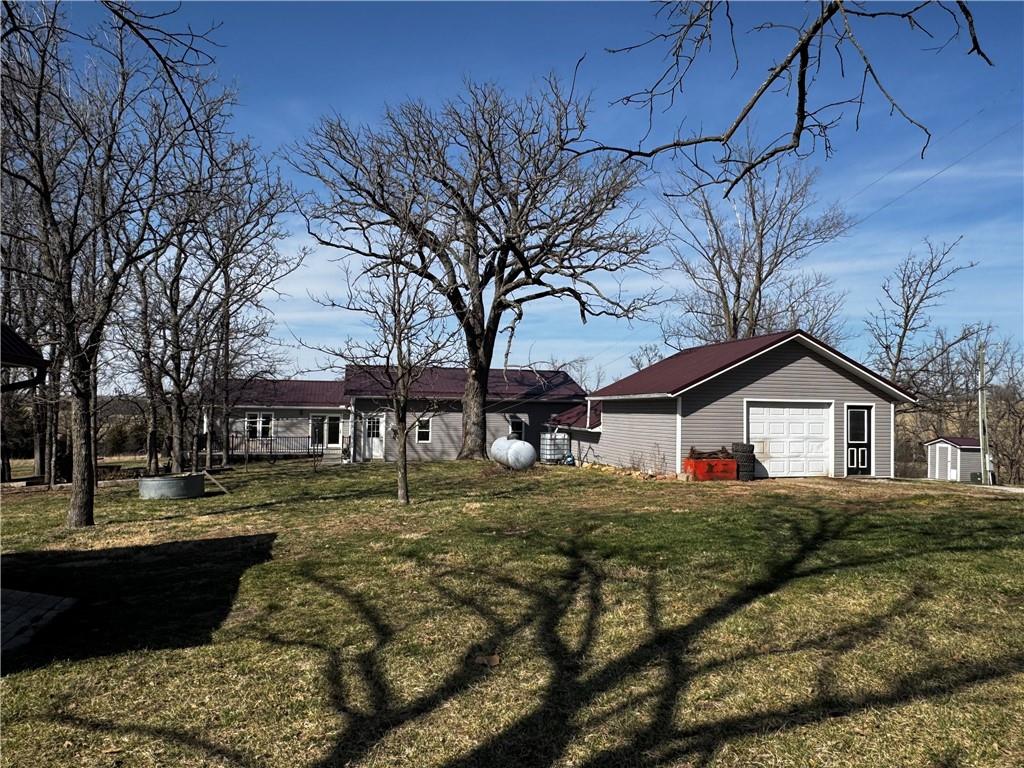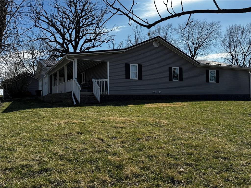 5 Acres M/L located on paved road just moments outside of Maryville sits this updated country farmhouse. The home underwent Major Renovations in 2019. On main floor are 3 bedrooms and 2 full baths (current owners use the smaller one as an office) and the partially finished basement has 3 more non- conforming bedrooms and 1 &1/2 baths. The large eat-in kitchen has lots of cabinet space and is open to the large family room. A large deck and looks over the backyard which has fruit trees and a large garden area and beautiful landscaping and trees. The laundry room off the kitchen is set up for a canning kitchen and the garage as lots of room for deep freezers. Stove, refrigerator, microwave and water softener system stay. The 12x24 utility shed in back yard does not stay. The house is on rural water but also has a well that the sellers use to water the gardens and pets. The dog building is set up to be heated and cooled (runs do not stay). Property has unique property line - sellers do not own the machine shed or the property it sits on.
