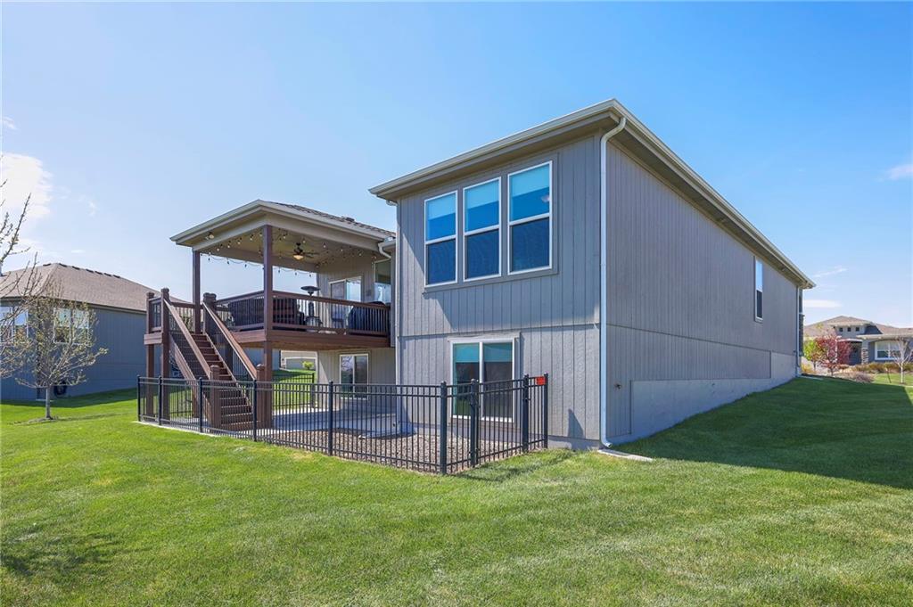 Welcome to effortless, care-free living in this beautifully designed, move-in ready home perfectly situated on a premium corner lot. From the moment you step inside, you'll appreciate the modern open layout, enhanced by engineered hardwood floors and wainscoting entry, upgraded finishes and fresh interior paint. The designer kitchen is truly the heart of the home, featuring custom cabinetry, a large center island, walk-in pantry, gas range and Frigidaire stainless steel appliances-all included. A charming coffee bar adds both function and style, making mornings something to look forward to. The spacious primary suite offers a relaxing retreat with a tray ceiling and large windows that fill the room with natural light, along with a custom tiled shower for a spa-like experience. Additional thoughtful touches include a stylish barn door, ceiling fans, faux wood blinds, upgraded front door, and a wrought iron fence. Cozy up by the gas fireplace with floor to ceiling stacked stone or step outside to enjoy the extra large covered composite covered 13' x 13' deck-perfect for entertaining or unwinding. The finished lower level, daylight basement, provides additional living space, an additional bedroom and full bath with plenty of unfinished storage space to do with what you would like, while the garage offers even extra storage for convenience. This home also includes an active radon mitigation system and a kitchen sink water filtration system for added peace of mind. Enjoy maintenance provided living with lawn care and snow removal for a mandatory $150/month. Community amenities are second to none, featuring a clubhouse, pool, playground, party room, and scenic walking trails. This home truly has it all-style, comfort, and convenience-ready for you to move right in and enjoy!! Why pay for new construction when you can everything you want right here. It's just waiting for you!