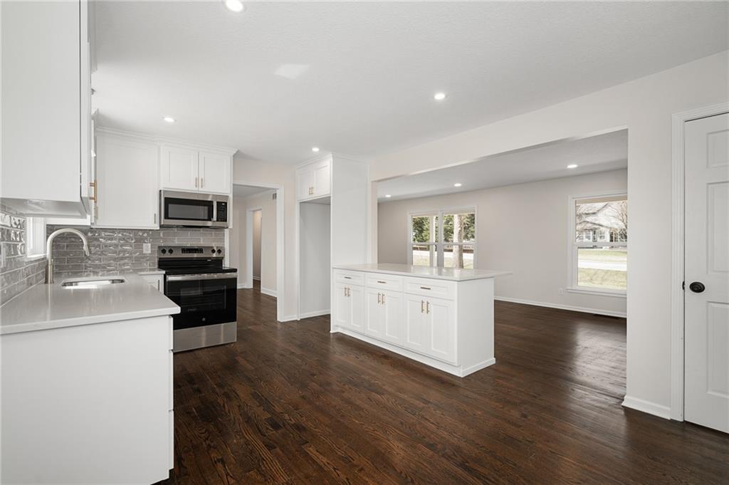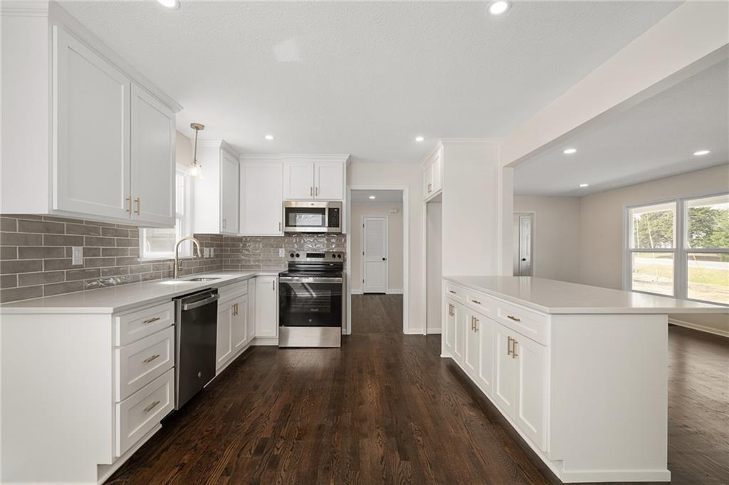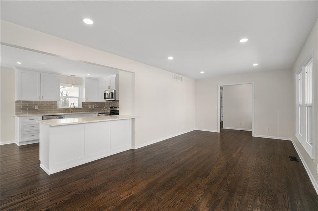 Prepare to be impressed by this fully transformed Olathe home, featuring meticulous, move-in-ready updates both inside and out. The renovation includes a brand-new HVAC system and water heater, new windows, and a freshly painted exterior. The interior boasts a stunning fully renovated kitchen and remodeled bathrooms with modern finishes, including a fully re-imagined, spa-like master bath. You’ll also find two spacious living areas, all-new lighting and hardware, and beautifully refinished hardwood floors throughout. Outside, enjoy a charming brick front porch, a brand-new backyard patio, a storage shed, and fresh landscaping completing the package. This property offers new construction quality in an established neighborhood!