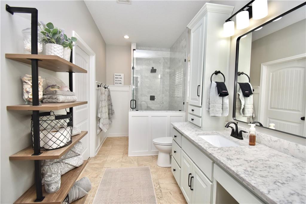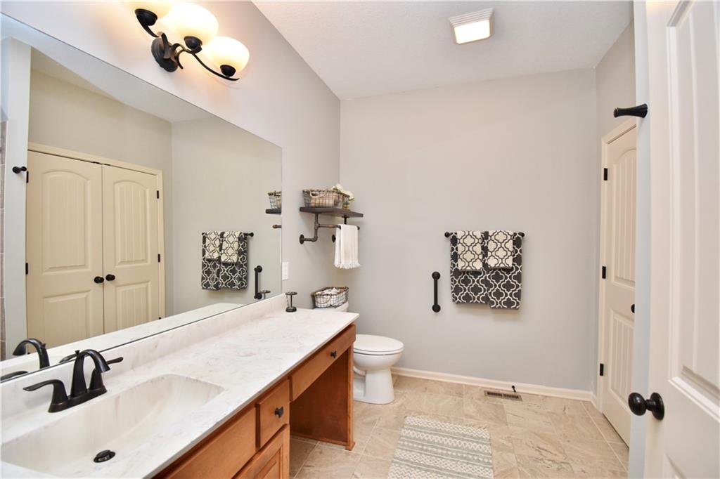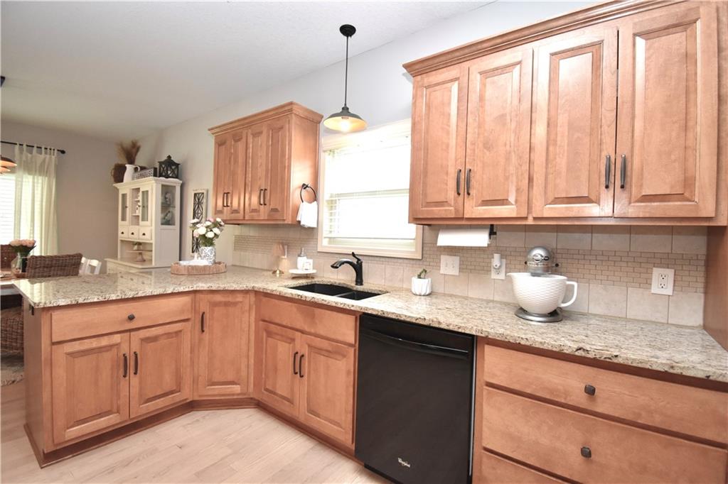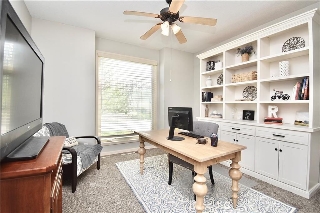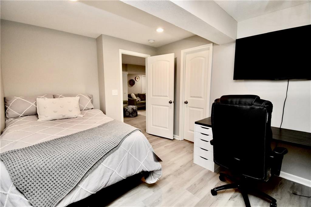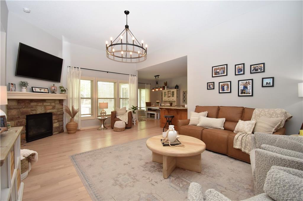 Beautifully updated reverse 1.5 Story on a quiet cul-de-sac in Liberty w/CRAZY LOW HOA fees of JUST $67/month! This well-maintained, 10-year-old home offers approximately 2,600 sq ft of finished living space plus aprox. 900 sqft in the lower level. Seller spent $80,000+ in upgrades completed in the past two years. HOME Designed for easy main-level living, this home features zero-entry access, wider doorways, & low-profile step-in showers. Open floor plan showcases fresh interior paint, new hardwood floors, natural color, throughout the entry, living, dining, and kitchen areas, and a stylish board-and-batten accent wall, refrigerator stays! Kitchen is both functional and inviting with a granite peninsula island, full-extension drawers, pull-out shelving, and all-new lighting. The primary suite offers a spa-like retreat with a fully remodeled bathroom featuring Carrara marble finishes, frameless glass shower, tiled floors, and trendy built-in shelving. The main level includes a total of two bedrooms, a second full bath with linen closet, and a spacious laundry room with additional storage. All new Lighting, new stair carpet, & carpet in 1 bdrm. The recently finished lower level expands the living space w/luxury LVP flooring, large family room w/custom built-ins, a stunning 7-foot bar w/Carrara marble, two additional bedrooms (one non-conforming), walk-in closets, a full bathroom & plentiful storage space. Enjoy nearly 400 sq ft of outdoor living space, including a covered patio and extended paver patio with a lighted sitting wall—perfect for relaxing or entertaining—backing to a private tree-line w/ frequent wildlife & beautiful sunsets. HOA does allow fencing! Ideally located just minutes from Liberty Hospital, I-35, 291, and 152, offering quick access to downtown Kansas City and KCI Airport. Maintenance-provided community includes lawn care and snow removal for ONLY $67.00 A Month! HOA has SURPLUS! balance! Liberty School District! Sellers closing date is FLEXIBLE!