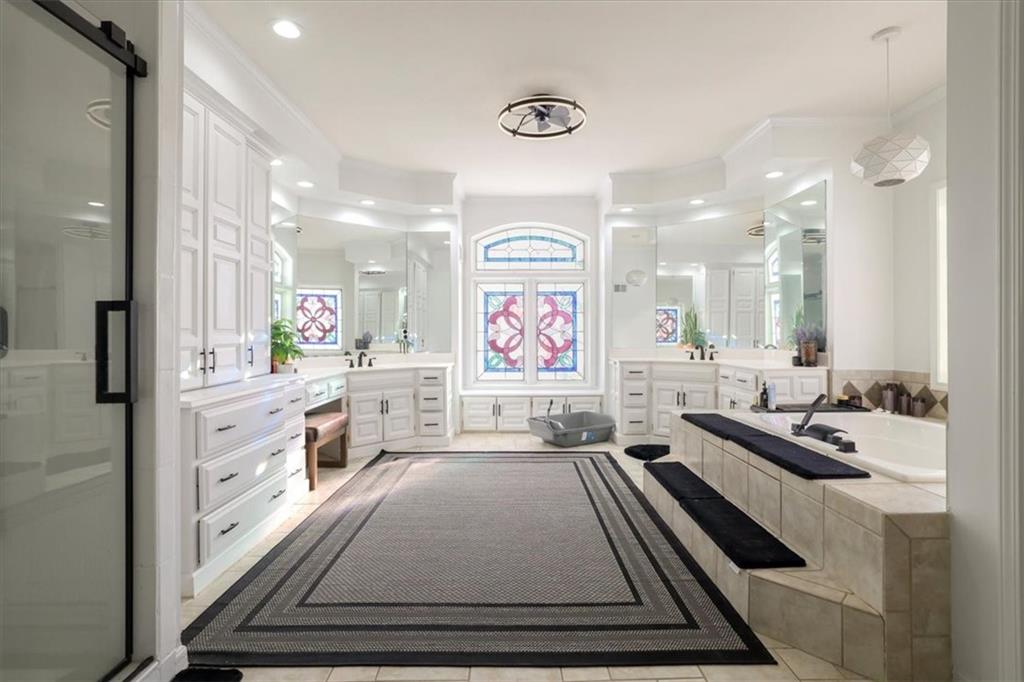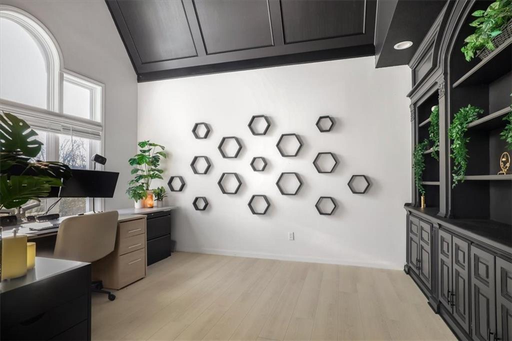 Beautiful 1.5 Story Home with Over 6,000 Sq Ft! Spacious, functional layout with high ceilings. Main level features a large living room, formal dining, office, and an updated eat in kitchen/hearth room with solid surface counters, new lighting, pantry & Laundry Room. Primary suite offers a walk in closet and generous bath. Upstairs include three bedrooms, each with a private bath and ample closets. Finished walk out basement provides a huge family/rec space, full bar, full bath, workout room, craft room, Bonus room hidden by Murphy Door and suspended garage/work shop with tons of storage. The home has many built-ins included in the dining room, office and downstairs living area. The home features many recent updates including, new roof, all new LVP flooring, all poly water lines replaced with PEX/copper, updated shower valves, new fixture stops, fresh interior paint, and new sheetrock in several areas, New door in kitchen/dining room, new laundry room upstairs. Located on one of the largest lots in the subdivision with a circle drive and cul-de-sac! Super convenient to shopping, dining, highways, and in the Park Hill School District.