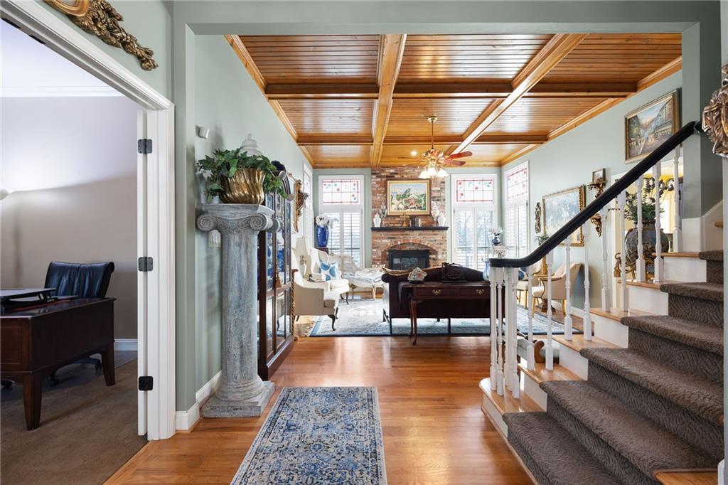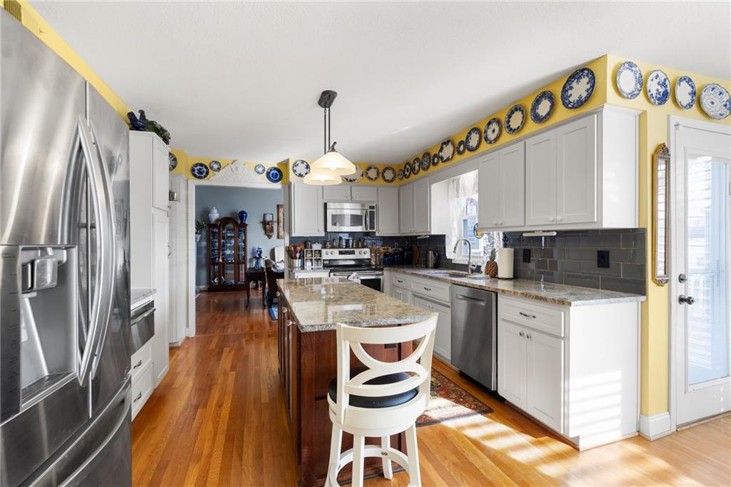 If you want a home that supports your lifestyle and has investment potential, this master-crafted Northland residence is the rare exception! This home offers nearly 4,300sqft of space, starting with a gourmet chef’s kitchen featuring granite countertops, a large island, stainless appliances, and a warming oven for perfect hosting. The main floor flow is natural and unhurried, with high ceilings and a sun-drenched living room anchored by a classic fireplace and custom stained-glass accents. A dedicated office on this level provides the perfect retreat. Upstairs, you will find four large bedrooms, including an oversized primary suite with an expansive walk-in closet, a private skylight, and a heated tile bathroom floor. Another hard to find feature is the fully finished walkout basement that offers an impressive self-contained living suite. This is a complete second home with its own full kitchen, full bath, serving bar, and a large fifth bedroom. Whether for multi-generational living or potential rental income to offset your mortgage, this suite provides a massive financial advantage as a short-term rental, especially with the World Cup coming to Kansas City this summer. All fixtures, including the tankless water heater, are premium American Standard quality. Outside, you enter a private sanctuary that feels like your own park. This fully fenced English-garden retreat includes arbors, wrought iron, and three separate Trex decks. Situated just 25 minutes from both downtown Kansas City and the airport, this home is a true green-energy standout with owned solar panels and no remaining payments. While neighbors worry about utility rates, you will enjoy remarkably low overhead. From the quiet gardens to the HOA pool, every detail has been maintained with an obsession for quality. This is a rare property with immense space, beauty, and financial upside. Click "Contact Johnnie" today for more details and to schedule your private tour!