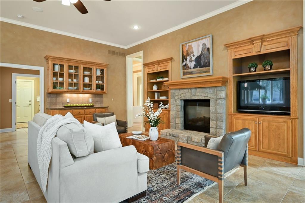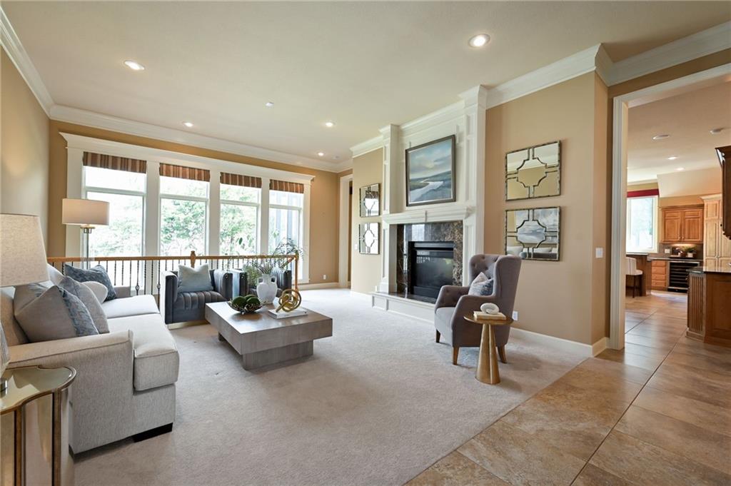 Set at the end of a quiet cul-de-sac in Cedar Creek, this meticulously maintained reverse 1.5-story pairs refined scale with a private, tree-lined backdrop. With 4 bedrooms, 3.1 baths, a 3-car garage, and 4,015 square feet on a .42-acre lot, the layout delivers substantial main-level living with beautifully finished space below. Approximately 2,815 square feet on the main floor is elevated by high ceilings, generous windows, and seamless flow through the formal dining room, great room, hearth area, and kitchen. A see-through fireplace connects the great room and hearth room, creating warmth and architectural interest. Designed for both daily living and entertaining, the kitchen features a Sub-Zero refrigerator, Viking cooktop, wine fridge, bar-height seating, and breakfast nook. The main-level primary suite offers a calm, spacious retreat with vaulted ceilings, soft natural light, and peaceful views of the trees beyond. The ensuite bath is designed for everyday comfort with a jetted tub, double vanity, and a walk-in shower with an open entry. A substantial walk-in closet adds exceptional storage and organization, completing a private haven that feels both luxurious and serene. Downstairs, the finished daylight walkout lower level adds exceptional flexibility with a large family room, fourth bedroom, full bath, and abundant unfinished storage. Outdoor living continues with a screened porch featuring composite decking, a patio, in-ground sprinkler system, and a setting that backs to mature trees. Located in one of west Olathe’s most desirable communities and served by Olathe schools, Cedar Creek offers swim and racquet amenities, pickleball and tennis courts, Shadow Lake, trails, neighborhood events, and more. Golf is available with separate membership, while convenient access to 119th Street, K-10, and the greater Kansas City metro adds to the appeal. Arrange your private tour to appreciate the setting, layout, and finish in person.