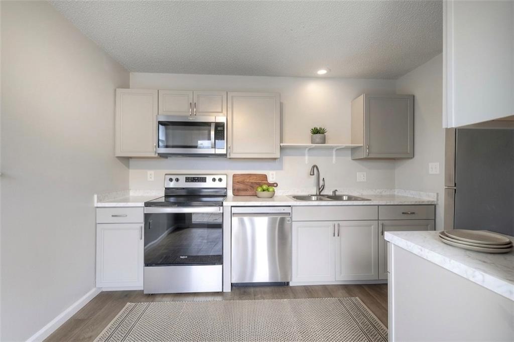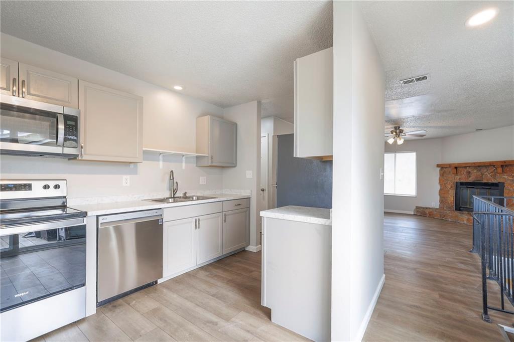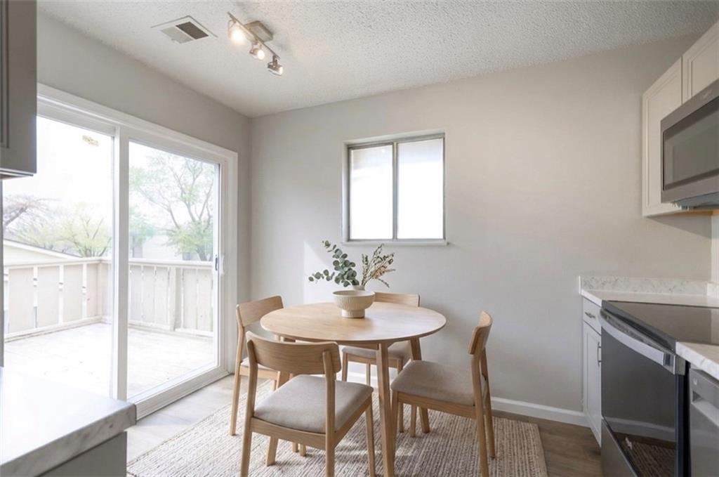 Move-in ready 2 bed, 1 bath, 1 car garage townhouse in Grandview. Well maintained and updated throughout. The living room features a corner wood-burning fireplace, luxury vinyl plank flooring, large windows for natural light, and a ceiling fan. The updated kitchen features new cabinets, Formica countertops, stainless steel appliances and LVP Flooring. Enjoy the eat-in kitchen with lots of natural sunlight and a sliding glass door that opens to the deck—perfect for outdoor relaxation or entertaining. The bathroom features LVP flooring and a shower over the tub.  Both bedrooms feature LVP Flooring. Convenient hallway laundry makes everyday living easier. Upgrades include: a new garage door opener and newer kitchen appliances giving you peace of mind. Affordable HOA fees cover building maintenance, lawn maintenance, property insurance, snow removal, and street maintenance. Quick possession available. Schedule your showing today! HOA Will be replacing exterior deck, waiting scheduling.