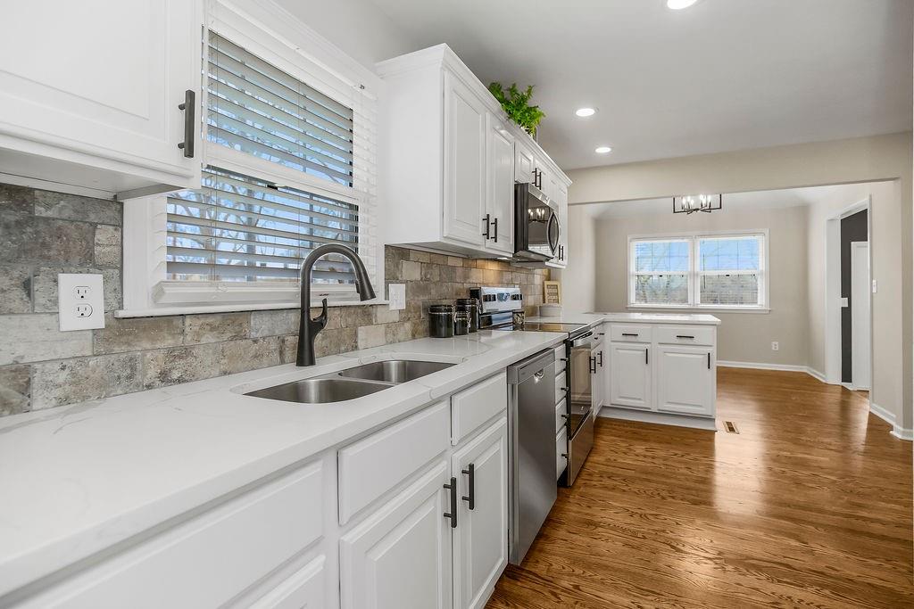 Beautiful remodeled ranch in White Ridge Farms features hardwood floors throughout the main level. Kitchen features quartz countertops, and Stainless Steel Appliances, and a pantry. All new modern light fixtures and bathrooms have been remodeled. Main floor laundry room and a bonus room that could be an office or formal dining room. Downstairs has a family room and a full bath. Plenty of room left for a home gym or storage. Nice patio area out back for summer BBQs!