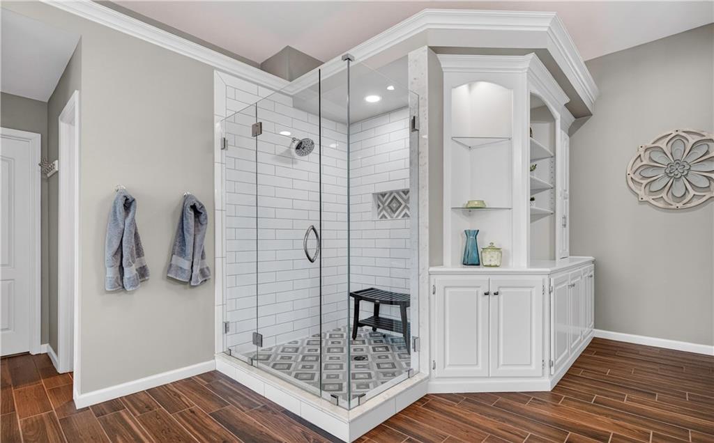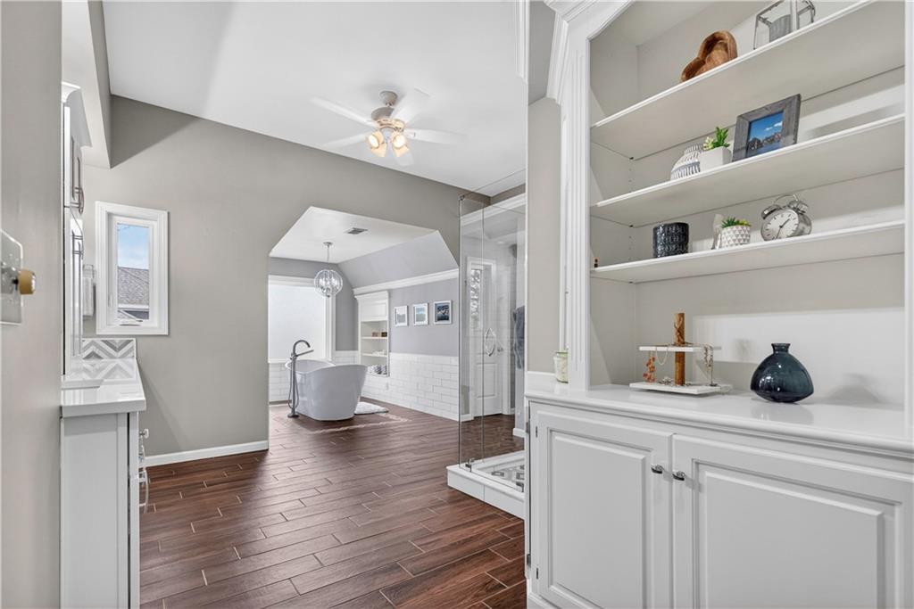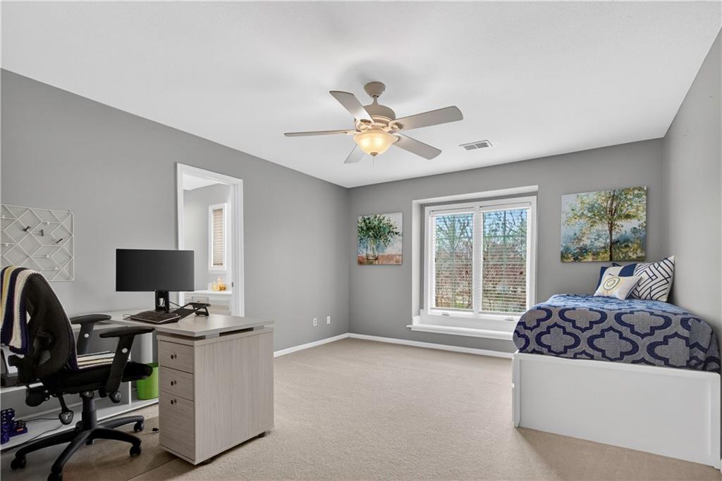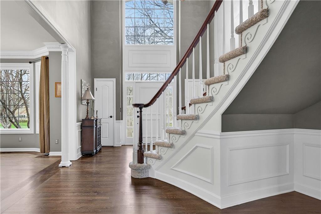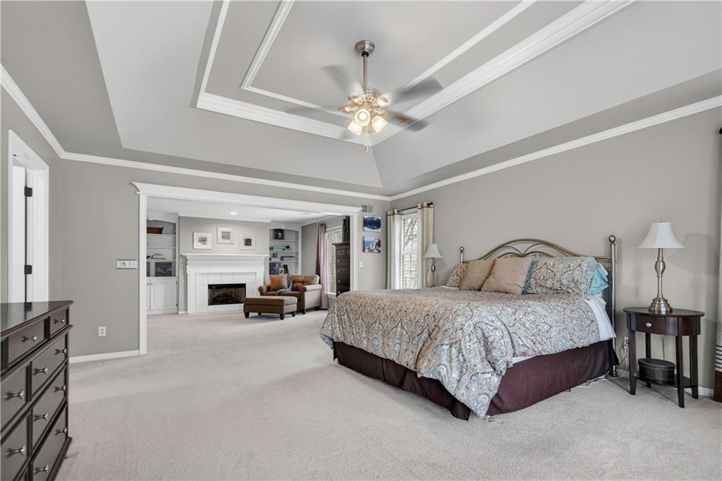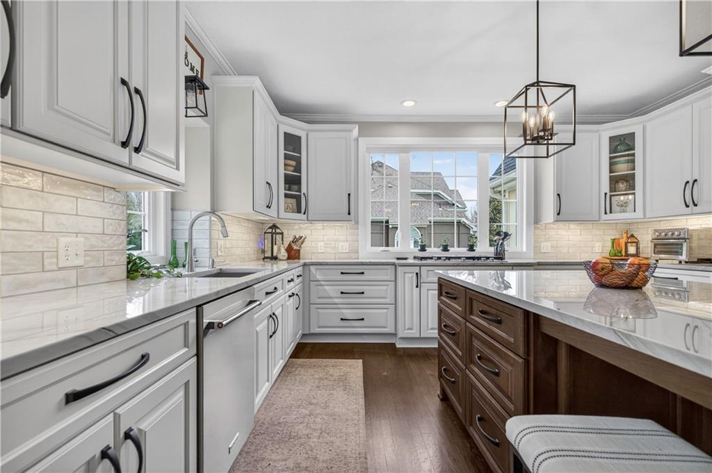 Welcome to this expanded Koehler two-story plan, a home that truly does not disappoint. From the impeccable curb appeal to the sweeping front staircase featuring gleaming hardwoods and designer carpet, every detail has been thoughtfully curated. Arch detailing, intricate moldings and lots of custom-built ins. The heart of the home is a fully remodeled gourmet kitchen, boasting high-end appliances (5 burner gas cook top, double ovens and convection microwave) custom cabinetry, a large center island, and gorgeous quartzite countertops & large pantry. Nearby, the cozy hearth breakfast room features a handsome fireplace with an impressive walnut live-edge wood mantle, w/ 2nd staircase to the second flr., while the gracious great room, formal living room, and dining rooms provide an ideal layout for elegant entertaining. The luxurious, completely remodeled primary suite serves as a true sanctuary, equipped with an oversized walk-in shower, free-standing floor mounted tub, new cabinetry, and high-end tile, all adjacent to a massive sitting room perfect for relaxation and huge closet. Generous secondary bedrooms provide ample space for family or guests. The incredible finished lower level adds significant living space with a useful bar, recreation room, game area, and a fifth non-conforming bedroom and bath, plus plenty of storage. Practical upgrades abound, including gleaming hardwood floors throughout the1st floor (refinished in 2024) new energy efficient low E windows, new roof and gutters (2024) and dual-zoned HVAC. Outside, a charming stamped concrete patio overlooks a fully fenced and lushly landscaped lot with mature trees and a three-car side-entry garage. Located on a picturesque, tree-lined street in the desirable Waterford neighborhood, this storybook colonial feeds into award-winning Blue Valley schools and is just minutes from the premier shopping and dining at Town Center.You won't want to miss this exceptional and well-kept residence!W/D &Pool Table to Stay