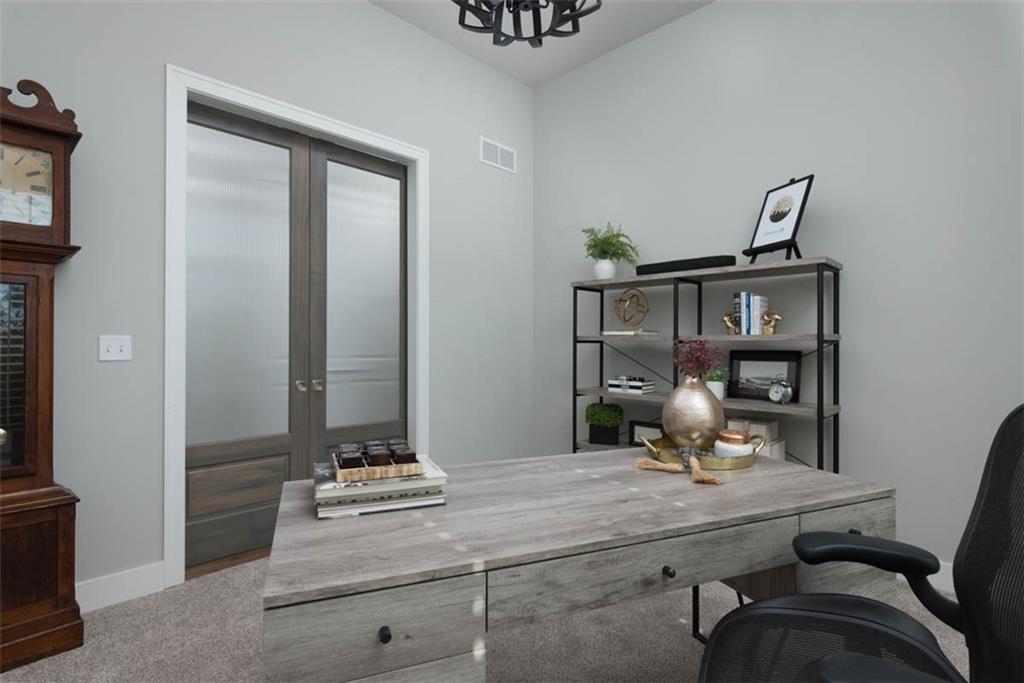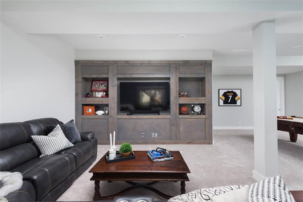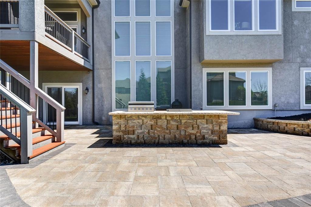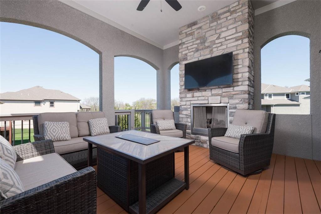 Positioned on a walkout corner lot in the sought-after Colton community, this custom Brookridge II by Don Julian Homes offers a refined take on reverse 1.5-story living with impeccable upgrades throughout. From the moment you step inside, soaring ceilings and expansive 3-floor window wall create a sense of openness, while rich architectural details bring warmth and character to the main living spaces. At the center of the home, the kitchen is both breathtaking and functional, anchored by an oversized island, abundant custom cabinetry, stunning backsplash and countertops, and a walk-in pantry designed for effortless organization. The adjoining dining area flows seamlessly to the covered deck, where a fireplace and elevated views create an inviting extension of the home, ideal for both quiet evenings and hosting with ease. The main-level primary suite is designed as a true retreat, featuring a spa-like bath with an oversized shower and rain head, dual vanities, and a generous walk-in closet that connects directly to the laundry room for added convenience. A secondary bedroom AND dedicated office or flex space complete the main floor, offering versatility without sacrificing comfort. The walkout lower level is equally impressive, with 10-foot ceilings that enhance the sense of space. A large recreation area, media space, and full bar create an ideal setting for entertaining, while additional bedrooms and baths provide privacy for guests. Outdoors, the experience continues with a spacious patio, firepit area, built-in grill, and a wide stretch of green space that feels both open and private, an ideal backdrop for everyday living and memorable gatherings. Garage features epoxy floors and custom cabinets! Every element of this home has been carefully curated to offer a balance of elevated design and effortless livability. A fantastic neighborhood just minutes away from dining, shopping, schools, highways, and entertainment, this stunning custom home has it all!