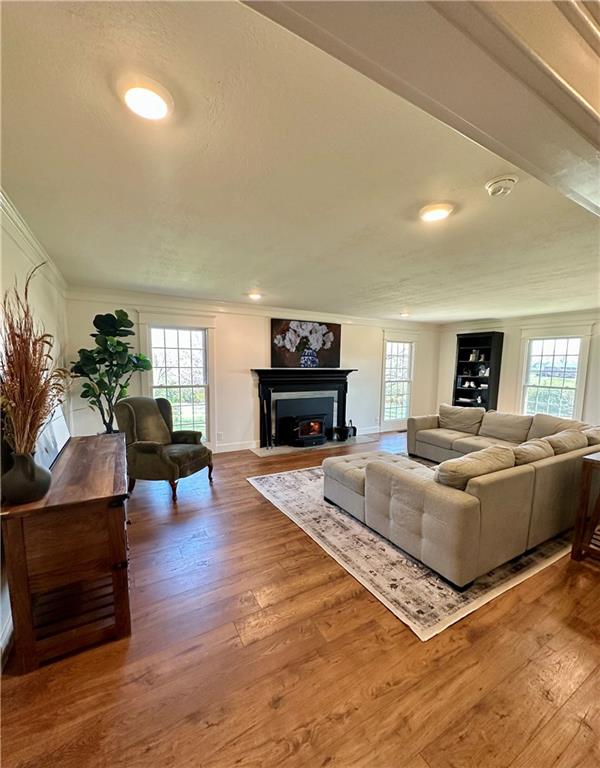 On a quiet cul-de-sac just outside city limits sits this serene country estate on 5.19 acres, offering the perfect blend of privacy and convenience—with no HOA. This beautifully updated home features 3 bedrooms and 2.5 baths, with a thoughtfully designed layout that includes a main floor primary suite for added comfort and accessibility. Floor-to-ceiling renovations provide peace of mind and elegant design, including a gorgeous kitchen featuring quartzite countertops, stained/painted white oak soft-close custom cabinets, Bosch and GE Café appliances (double oven gas range), a farmhouse sink, Zellige tile backsplash, and a large island. The newly added mudroom/laundry and walk-in pantry provide ample storage. Recent updates also include new paint, new windows, a brand new high-efficiency furnace, new laminate wood flooring, luxury vinyl tile, carpet, and complete bathroom renovations. Enjoy the warmth and ambience of the new high-efficiency catalytic converter wood-burning fireplace in the main living room. The unfinished walkout basement (with high ceilings and rough-in plumbing) offers even more potential and includes a backup wood-burning furnace. The charming sunroom provides a seamless extension of the home’s living space, bathed in sunlight with surrounding windows and a glass door. The property also boasts a spacious 28’x40’ outbuilding with double garage doors and a full loft—ideal for storage, hobbies, or a workshop. Relax in quiet nature with rolling hills that include a natural intermittent stream and pond and abundant mature trees that provide shade and privacy. Enjoy the song of the frog at the start of spring, flowers in constant bloom through spring and early summer, and gentle evenings with the glow of lightning bugs during late summer. The 6-ft fenced 16’x20’ garden is perfect for growing flowers and produce. Located within the highly desired Kearney School District, this property combines rural charm with modern updates and endless dreaming.