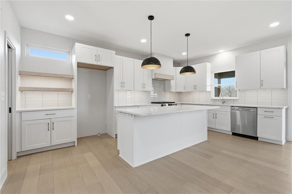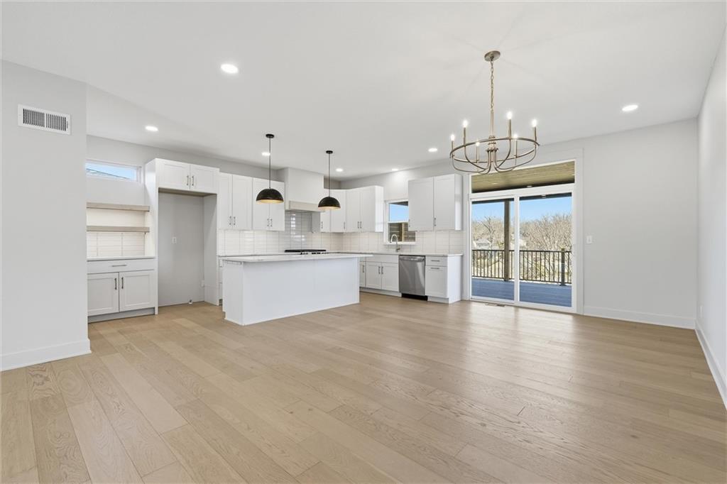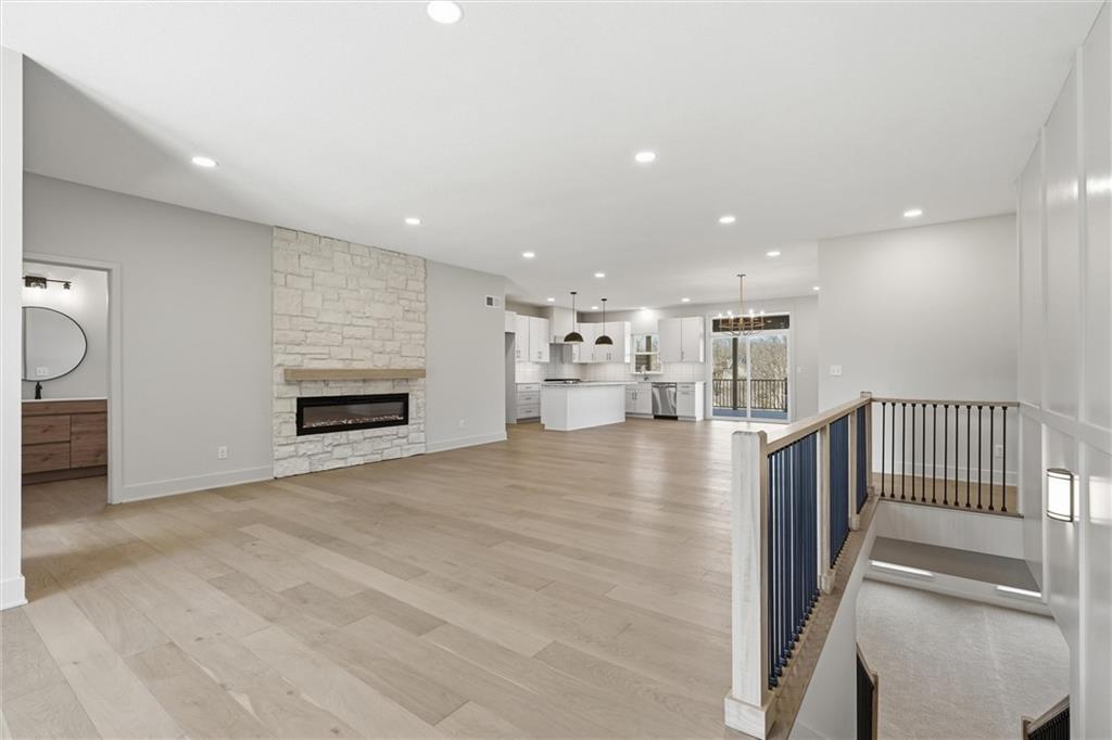 Stunning reverse 1.5 story NEW BUILD located in the desirable Fritchie Bluffs neighborhood featuring an open floor plan and thoughtful design. The main level offers two bedrooms including the spacious primary suite with spa like bathroom featuring soaking tub and an oversized walk-in closet accessible to the laundry room. Second main level bedroom could also serve as the perfect office with tons of natural light. Convenient mud room located off the three-car garage for an ideal drop zone for bags and shoes. The living room with stone fireplace opens up to the dining area and kitchen showcasing an 8-foot island, large walk-in working pantry with floating shelves, and a dedicated coffee bar. Three additional bedrooms and two full baths are located on the lower level all featuring HUGE walk-in closets, perfect for families or multigenerational living. The bright and inviting lower level features a wall of massive windows and is an entertainers dream with endless opportunities to make additional spaces into a theatre room, gym, or game room. Lower level also offers a wet bar making entertaining a breeze! Walk out to your HUGE covered deck off each level thoughtfully constructed with maintenance free composite decking which overlooks a private, tree-lined backyard with stunning panoramic treetop views, perfect for relaxing in your quiet personal retreat. Additional highlights include a flat driveway, south-facing orientation, and a prime location close to award winning Lee's Summit schools, shopping, parks/trails, and Legacy Park Fields and Community Center! This is truly a rare opportunity to own a new construction home at an exceptional value for the area! Open House 3/28 11:00-1:00pm, 3/29 12:00-2:00pm