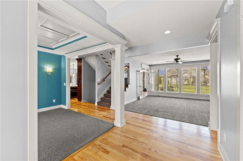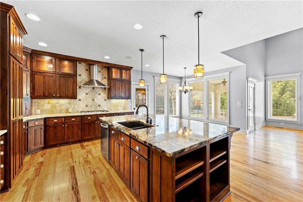 Tucked into one of Shawnee’s most sought-after communities, this two-story home offers a strong combination of space, functionality, and a well-designed layout. Once inside, you’re welcomed by an open entry, split staircase, and natural light that carries throughout the home. The kitchen is well-appointed with an oversized island, abundant cabinetry, and a natural connection to the main living areas, making it easy to live in and easy to entertain. The layout offers a balance of open flow and defined spaces, including a private office, formal dining, and multiple living areas. Out back, the custom flagstone patio with firepit and TV setup overlooks a well-maintained, landscaped yard, creating a comfortable space to unwind or host. Several key updates have already been completed, including a new roof, exterior and interior paint, carpet, and HVAC, along with a whole-home humidifying system for added comfort. The primary suite offers a true retreat with a sitting area, spacious bath, and generous closet space. The finished lower level expands the home with a kitchenette, theater room, large rec area, two bedrooms, full bath, and ample storage, well-suited for guests or extended living. Additional features include an in-ceiling sound system, laundry hookups on both levels, and an oversized garage with workspace. A dedicated dog kennel room adds a unique and thoughtful touch. Located near elementary, middle, and high schools, along with parks, trails, shopping, and dining.