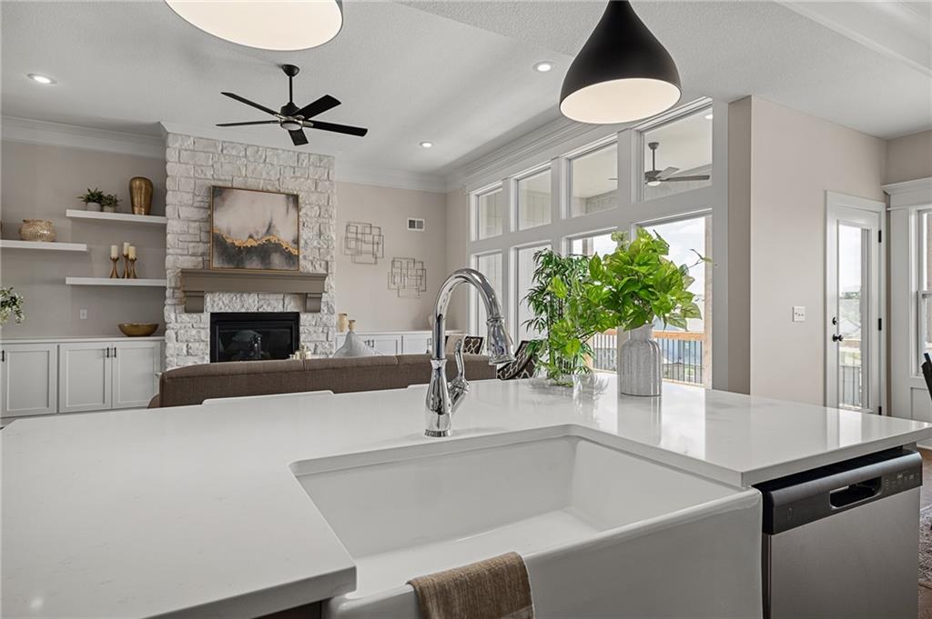 Discover The Payton, a masterfully designed floor plan by Prieb Homes that offers the perfect blend of luxury, comfort, and modern functionality. Located in the highly sought-after Prairie Farms community, this home features 4 spacious bedrooms, 3 full bathrooms, and a 3-car garage across an expansive 3,121 sq. ft. layout. A chef’s dream featuring a large center island, granite countertops, custom cabinetry with soft-close drawers, a walk-in pantry, and stainless steel appliances. A wide-open space centered around a cozy fireplace, flooded with natural light from a wall of windows. A private retreat with vaulted ceilings, double vanities, a tiled walk-in shower, and a massive closet that conveniently connects to the laundry room. Two additional bedrooms and a full bath are located on the main floor, perfect for guests or a home office. The finished lower level boasts a massive rec room that walks out to a patio, plus a 4th bedroom and full bath. Significant unfinished space for storage. Living in Prairie Farms means enjoying top-tier amenities including a swimming pool with a "Signature Barn" cabana, a play area, and miles of walking trails. You are just steps away from the newly renovated Lake Olathe, offering a swim beach, marina, and aqua park. Located in the award-winning Olathe School District (Clearwater Creek Elementary, Oregon Trail Middle, and Olathe West High), this is more than a home—it's a lifestyle. Located in the new phase of Prairie Farms