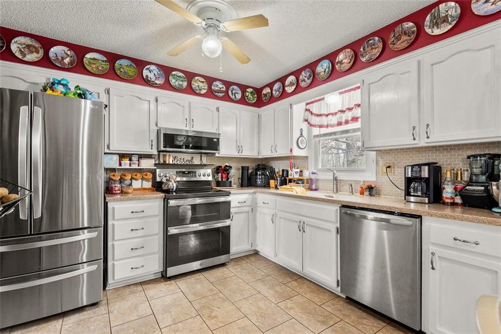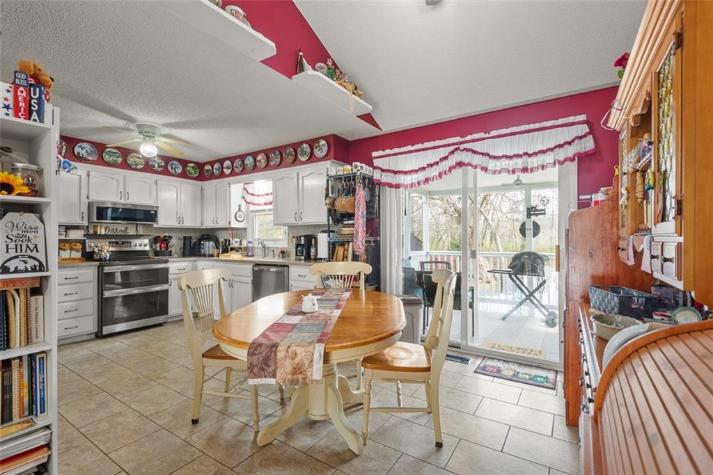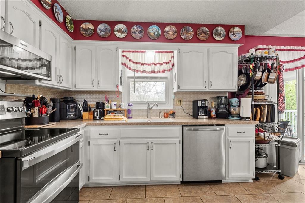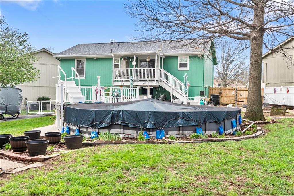 This charming one owner home has been well maintained and sits on a large lot at the end of a Cul-de-sac. Newer features include stainless appliances in Dec. 2023, roof in May 2025, heating & cooling in Feb. 2025, water heater in Jan. 2021, exterior paint in 2025, garage doors in Dec. 2025, repaved driveway in June of 2023 and the shed by the driveway in July 2023. You will love stepping out into the back yard with the covered deck and brick patio, above ground pool, 4 nice sheds for plenty of storage, fire pit, horseshoe pit and a greenhouse for growing your plants. One of the storage sheds even has a concrete floor that can be used for almost anything. Plenty of parking with an extended driveway that goes into the back yard. Perfect for storing a motor home or boat or if you need the parking for entertainment. This home is perfect if you love to entertain. Homes in this subdivision do not come on the market often and this one is priced well for everything that comes with it. The last home to sell in this subdivision was in August 2023. Olathe schools. Seller "MAY" need a one day occupancy after CLOSING. This home is a must see.