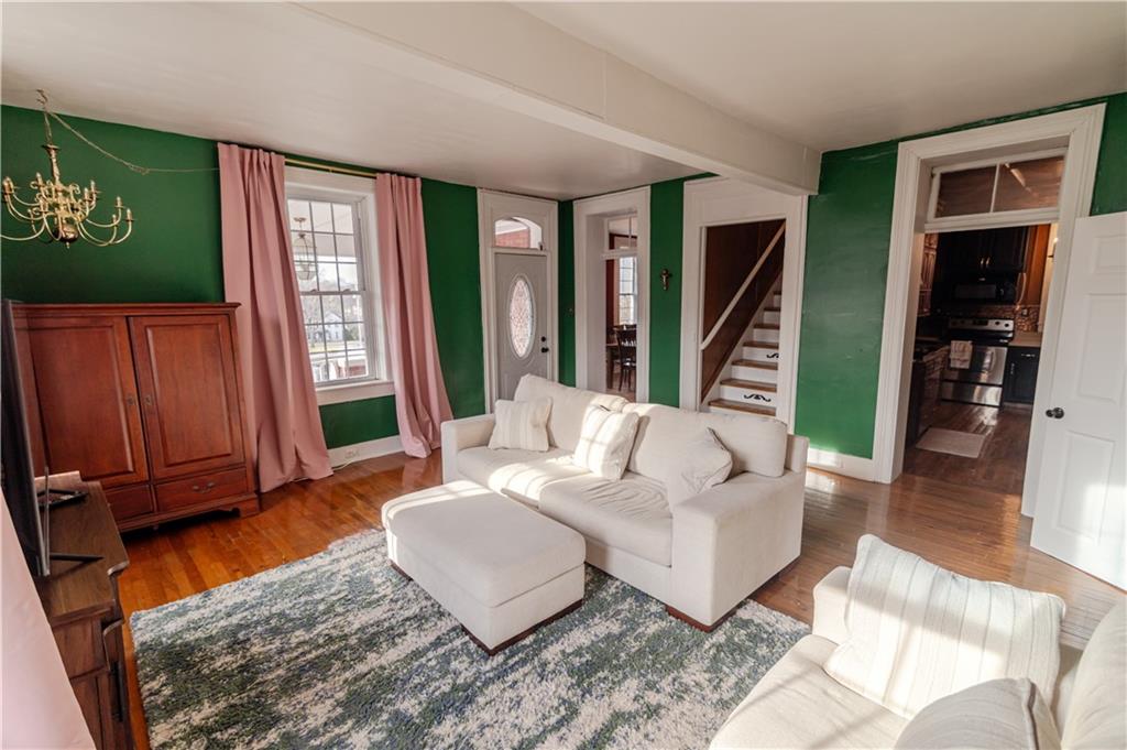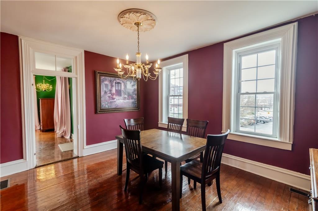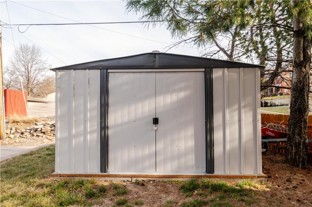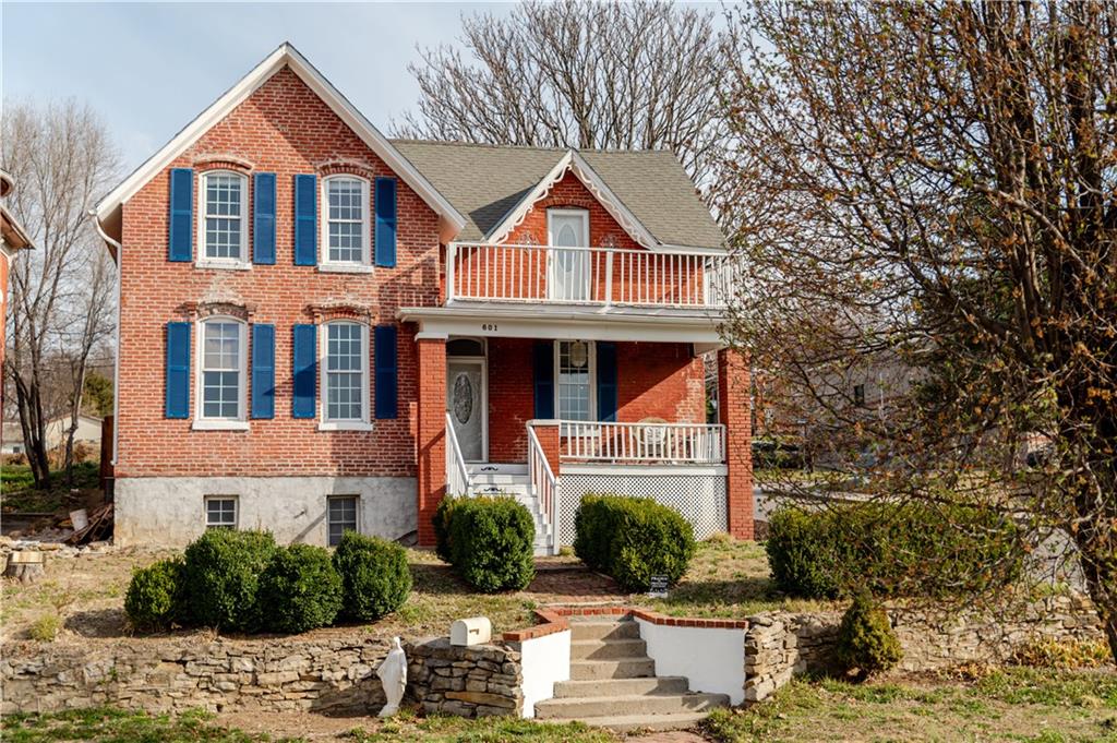 Step into timeless charm with this absolutely stunning 1860s two story historic home which blends timeless character with modern comfort and sits less than a mile from Benedictine College, and only three blocks from downtown. The 4 bedroom, 2.5 bath home has been lovingly updated and maintained both inside and out and is truly move in ready. The brick exterior has been recently tuck pointed along with freshly painted shutters, fascia, soffits, and porch. The property includes and thoughtful landscaping including native grasses, wildflowers, a beautiful privacy fence, off street parking, a garden shed and a 220V outlet for EV charging. Inside, the newly remodeled main floor master suite features a tiled, low rise walk in shower, dedicated mini split, and high quality wool carpet installed less than a year ago while the rest of the home offers hardwood or tile flooring throughout. The spacious kitchen provides abundant counter and cabinet space and the newly added laundry room and half bath are on the main floor as well. Upstairs are three additional bedrooms, a full bath and access to a charming second story balcony. This home offers historic charm, thoughtful updates, and unbeatable location in one complete package!