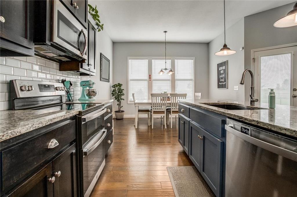 Tucked inside a premier resort-style neighborhood, this stunning 1.5-story residence combines comfort, space, and community perks in all the right ways. With over 2,600 square feet of well-designed living space, this 4-bedroom, 3.5-bath home also includes a versatile bonus room—perfect as a home office, creative space, or guest retreat. The main level welcomes you with an airy, open layout anchored by a warm fireplace in the living room and a seamless flow into the dining area and modern kitchen. You'll love the oversized island with built-in sink, sleek granite countertops, stainless steel appliances, and walk-in pantry designed for everyday convenience. The main-floor primary suite offers a peaceful escape with a walk-in closet and a luxurious bath featuring dual vanities and a custom-tiled walk-in shower. Upstairs, two generous bedrooms—each with walk-in closets—share a full bath. Downstairs, the finished lower level is set up for fun and function with a rec room, home gym, fourth bedroom and bath, plus tons of storage. Step outside to a covered patio made for relaxing or entertaining. The oversized 3-car garage easily handles your vehicles, gear, and hobbies. Beyond the home, the community elevates your lifestyle with an unmatched list of amenities: a clubhouse with full dining and bar service, a fitness center, three swimming pools, tennis and basketball courts, an 18-hole golf course with pro shop, lakeside trails, and a 108-acre stocked lake. Conveniently located near Lee’s Summit with quick highway access—this one checks all the boxes. Come see what makes it truly special.