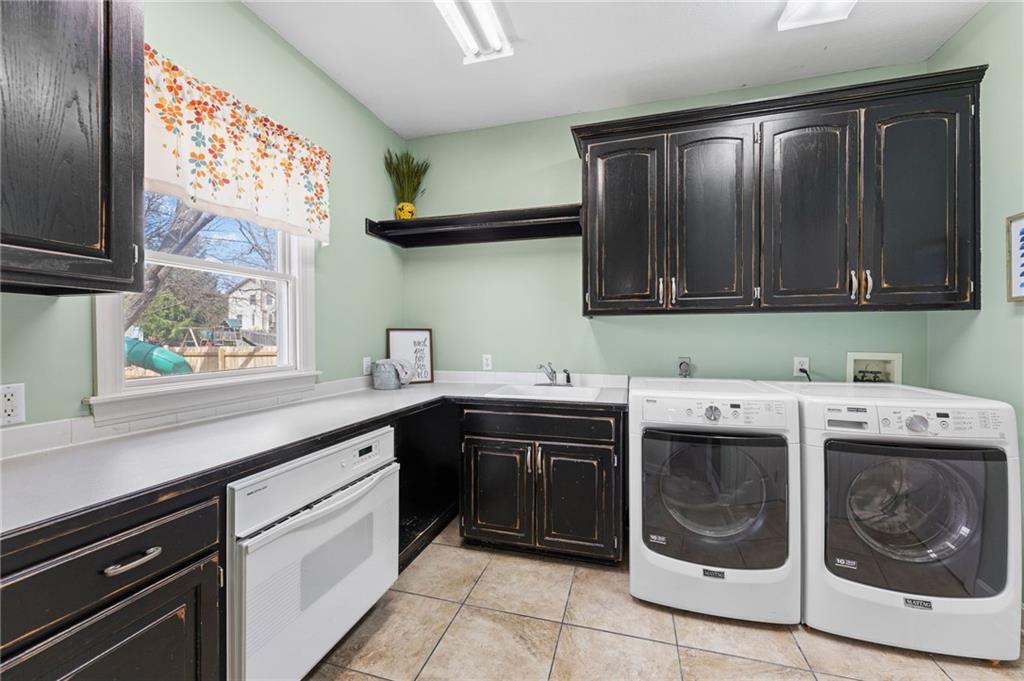 This 5-bedroom, 4.5-bath Lawrence home offers over 3,550 sqft with three living areas, double staircases, and generously sized bedrooms throughout. Abundant storage and smart home technology woven throughout the home, including an ADT system with indoor and outdoor cameras, smart doorbell, door and window sensors, a smart thermostat, smart garage door and Fiber internet, make everyday living as comfortable as it is connected. The main level features a formal dining room, an eat-in kitchen with an abundance of cabinet storage that creates an open, connected feel, and a large laundry room and mudroom with counter space and a sink. The primary suite is a true retreat, featuring a large bathroom and a dream walk-in closet. The 2nd floor also features another bedroom suite with full bathroom and two other bedrooms connected with a jack and jill bathroom. The partially finished basement adds versatility with a bedroom, full bathroom, and living area, while the unfinished portion provides plenty of room for storage. Out back, the expansive yard is a genuine highlight. A stamped concrete patio, new privacy fence with a 72" double wide gate, meticulously maintained grass, perennial landscaping, an apple tree, raspberry bushes, a playground, and a sprinkler system make this an outdoor retreat you will want to take full advantage of all season long. Conveniently located minutes from Target, Hy-Vee, and a wide variety of Lawrence dining and shopping, with easy access to K-10 for commuting to Kansas City or Topeka.
