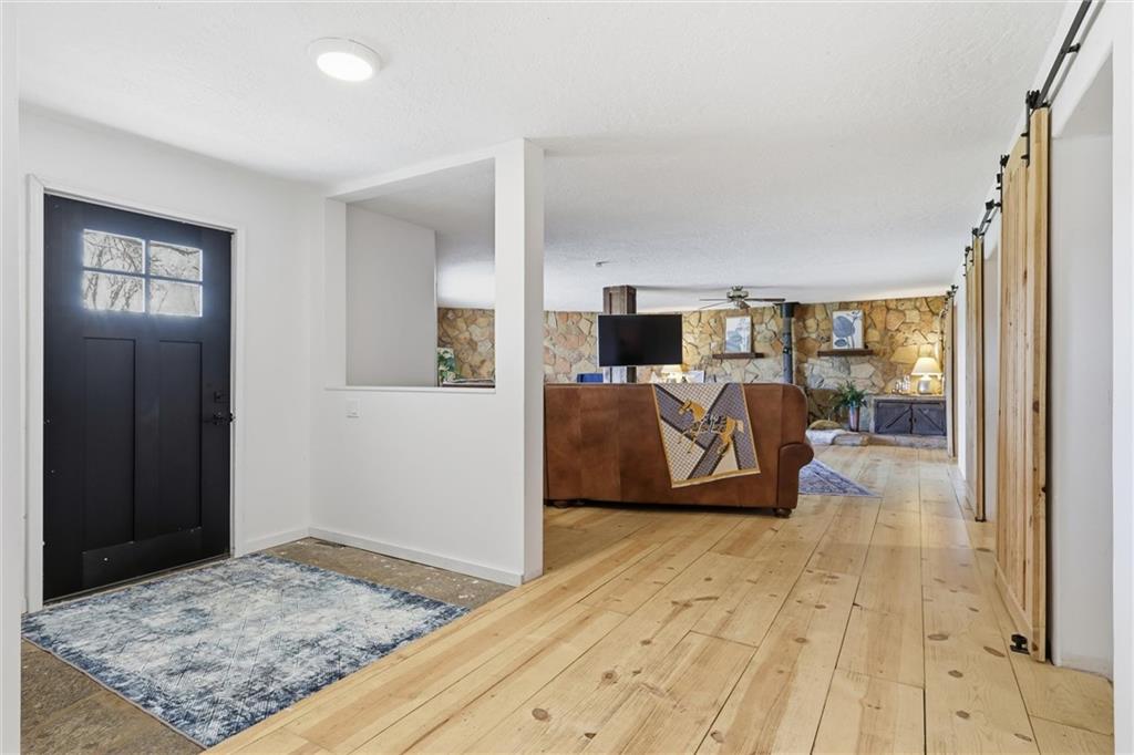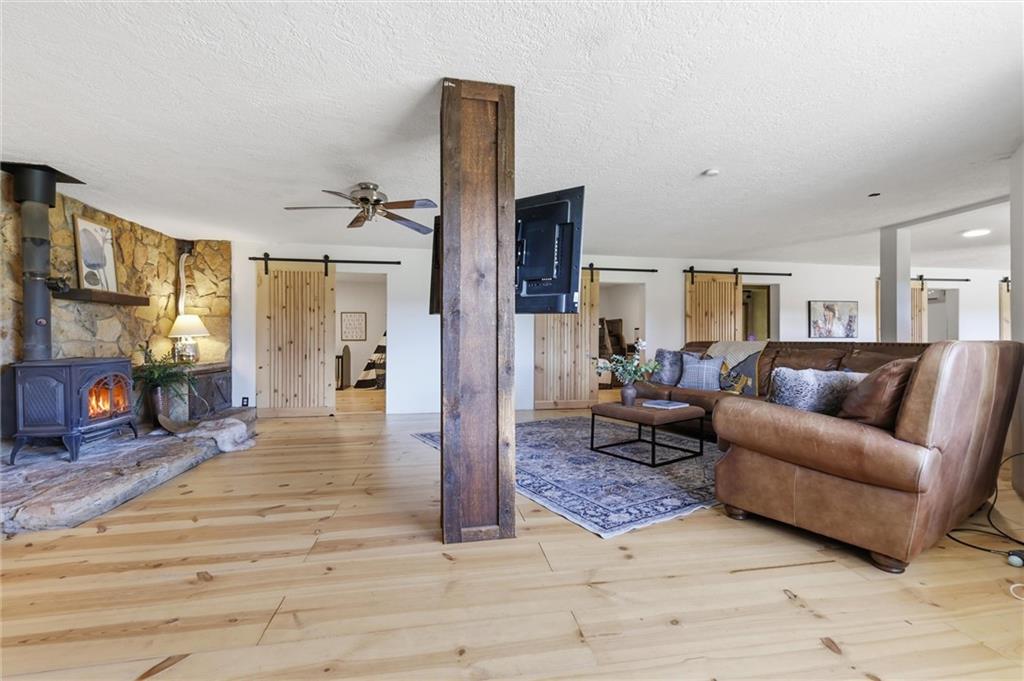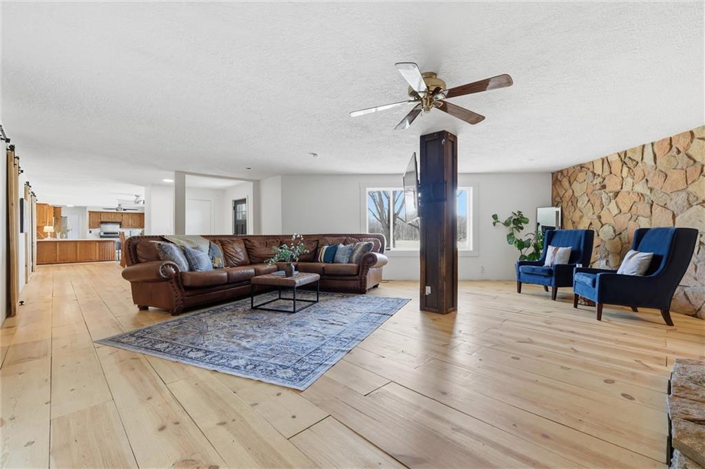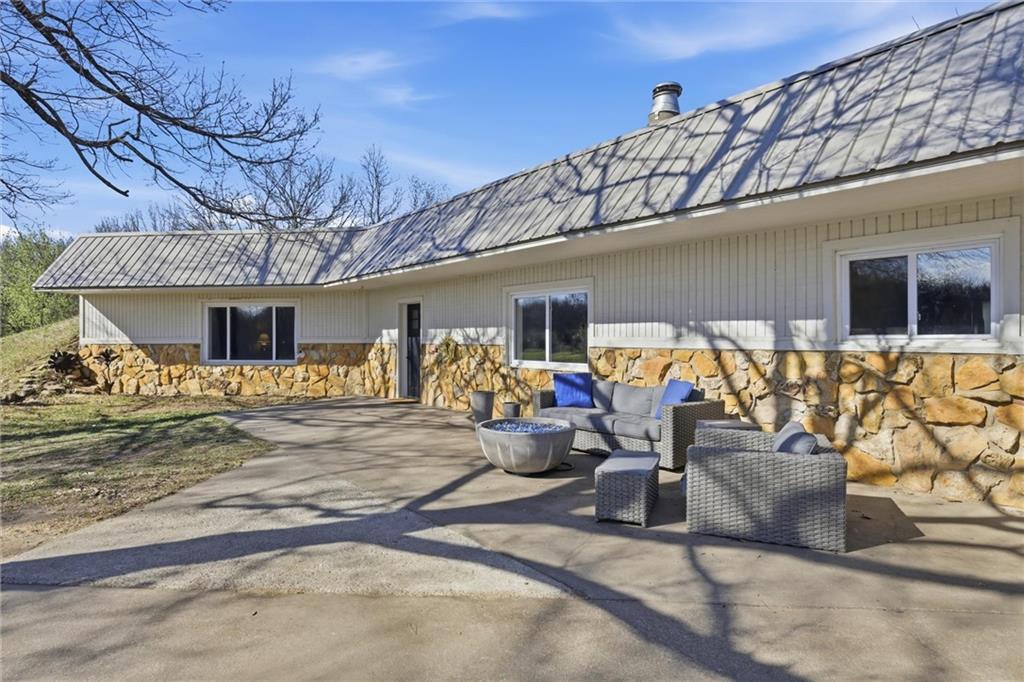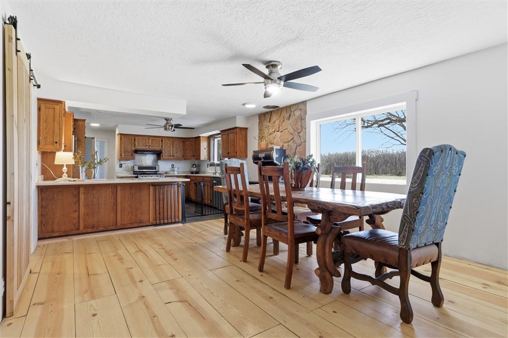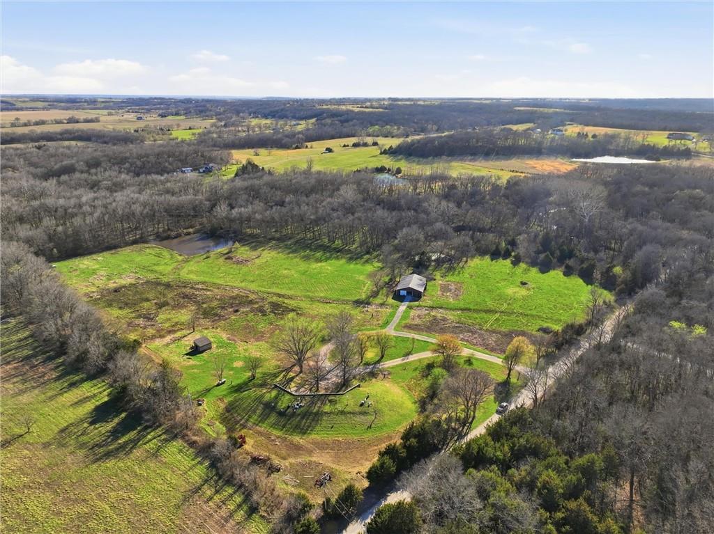 Escape to Privacy! This almost 2800 sq foot ranch style home sits on a dead end road on nearly 20 acres for all your outside enjoyment. Private duck, pheasant and deer hunting, farming, swimming in the running waters of Walnut Creek or fishing in the pond, it all can be yours! Sit outside on your expansive patio, swing from a tire swing or go for a walk on the trails. It’s a true escape from the world. This home has been largely remodeled and is ready for your continued ideas. New heat/air, new floors, and new doors inside and out welcome you inside. Wide open spaces with all main floor living. 2 large family rooms, 4 bedrooms and 2 full baths. 6 minutes to town and 1/4 mile from blacktop roads. Large barn with water and electricity and partial concrete or gravel floors. Get moved in before summer is here! Be sure to watch the video!