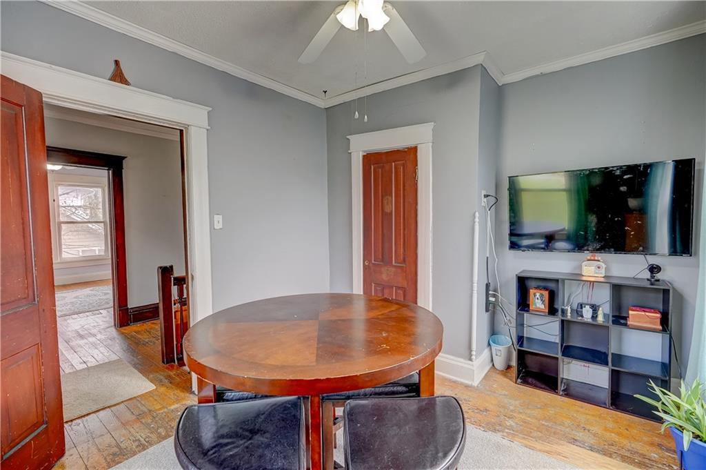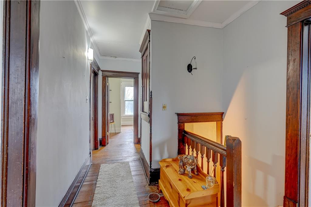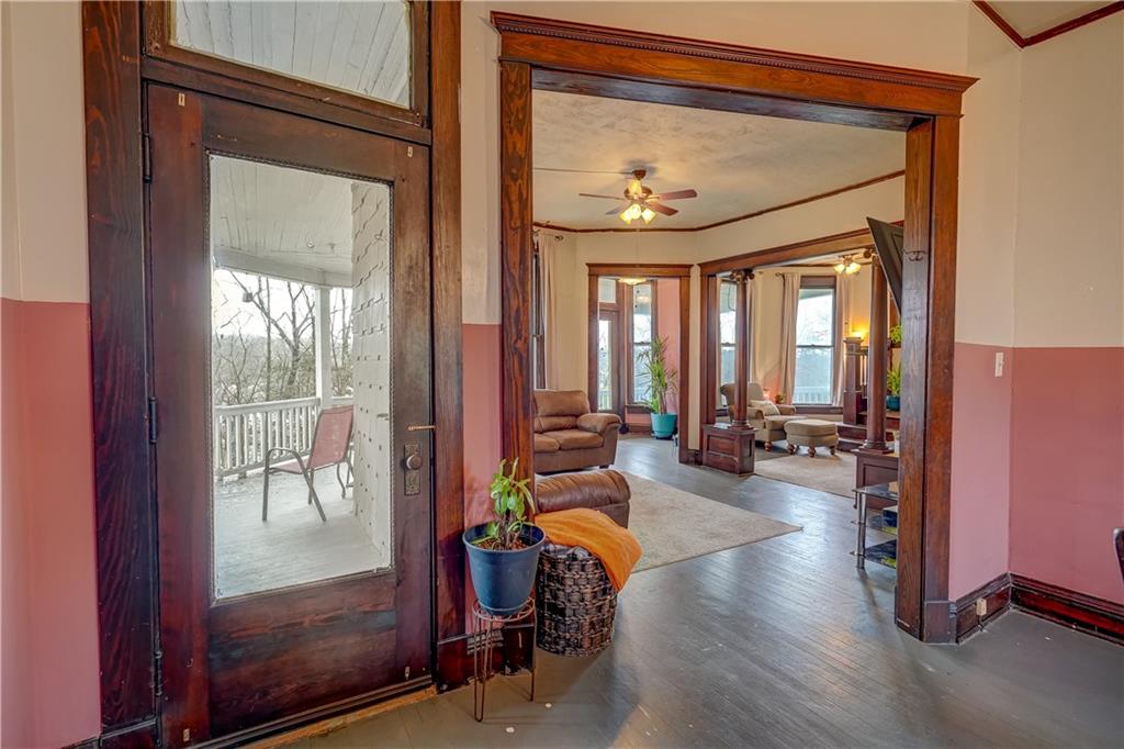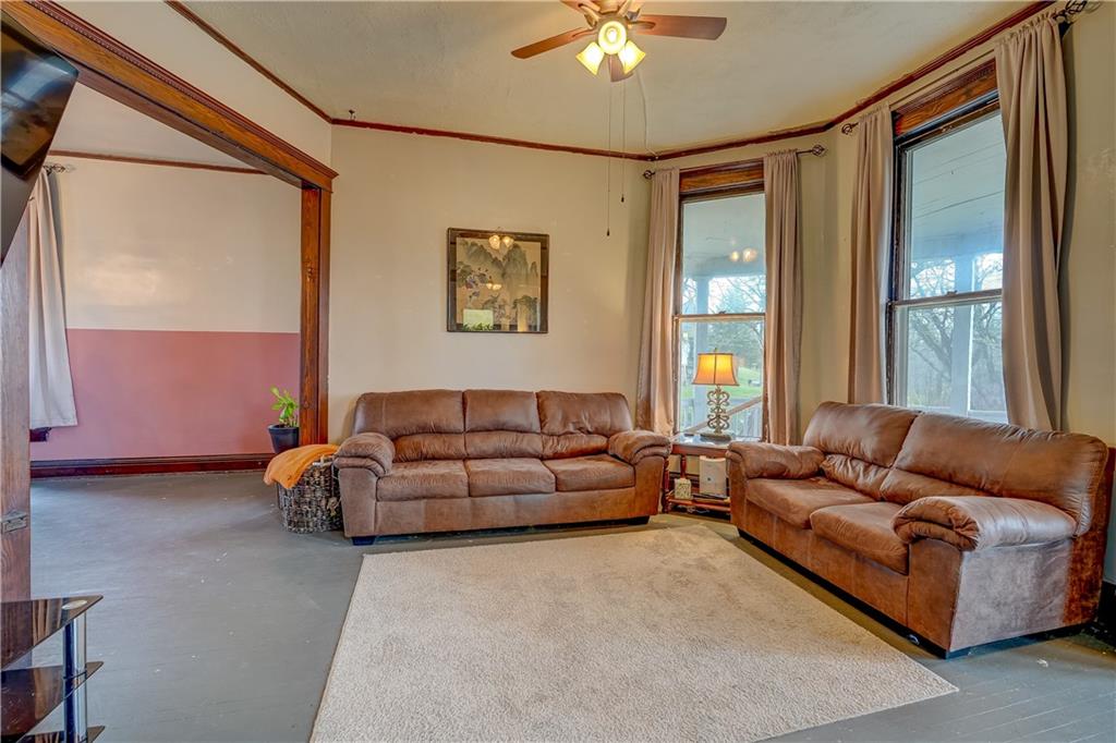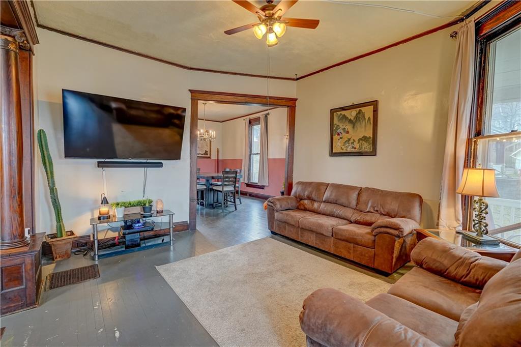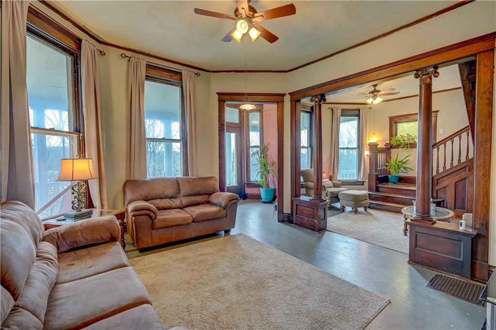 Welcome to this spacious, timeless home offering over 3,000 square feet of living space priced under $225,000! This 3 bedroom, 2 bathroom home also offers the potential for a 4th bedroom, giving you flexibility for a growing family, home office, or guest space. You’ll immediately fall in love with the charm throughout, featuring original hardwood floors, trim, and large windows that fill the home with natural light. This home offers a great blend of original details and the opportunity for a buyer to add their own cosmetic touches over time. Major improvements have already been completed, providing true peace of mind—new HVAC (2025), roof approximately 3 years old, water heater replaced in 2024, upgraded electrical panel, and a brand new sewer line (January 2025). Additional upgrades include a water softener and reverse osmosis system installed in 2025. The layout offers incredible space and functionality with multiple living areas, formal dining room, and a large laundry room. Unique character continues with two separate staircases leading upstairs, adding both charm and convenience. The unfinished basement provides great storage and includes a side walk-out. Step outside and enjoy the large wraparound porch with two entry points, perfect for relaxing and taking in the views. Nestled in a welcoming, friendly neighborhood, the home overlooks downtown and the historic Elms, all within walking distance, and is conveniently located near a new elementary school you can see right from the front porch. You’ll also appreciate off-street front parking along with a spacious concrete driveway in the rear leading to a detached garage. With its size, location and major system updates, this home presents a fantastic opportunity to own a large property full of character.