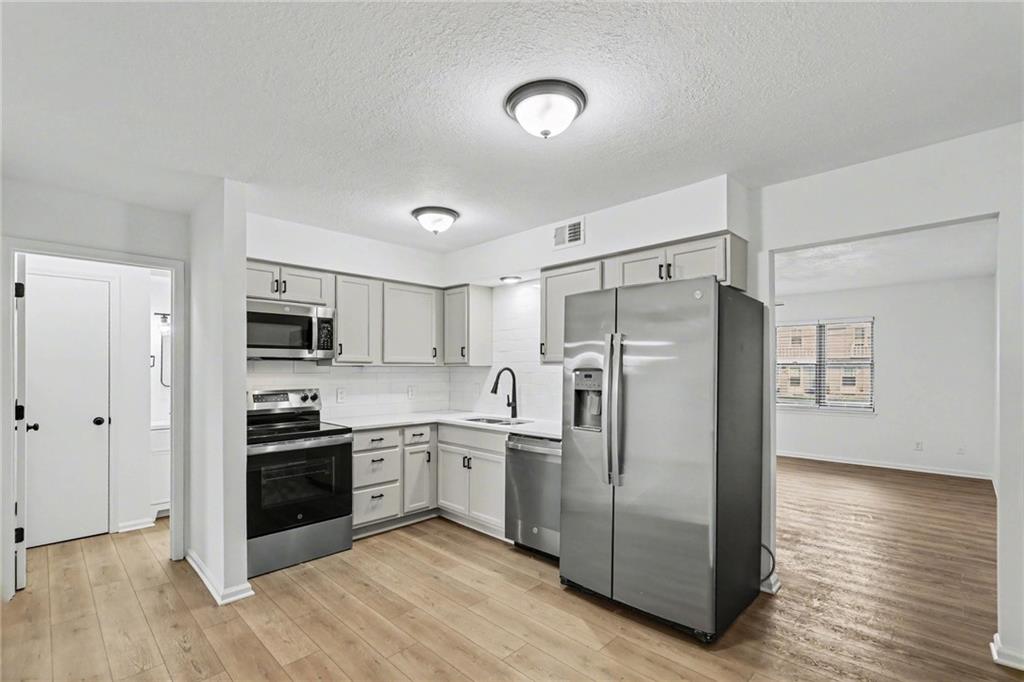 This beautifully updated 1.5-story interior-unit townhome blends style, comfort, and convenience in one move-in ready package. Enjoy quiet mornings sipping coffee on the covered front patio, soaking in the charm of this established neighborhood. The exterior offers freshly asphalted off-street parking along with classic brick and vinyl siding for attractive curb appeal. Step inside to durable laminate flooring and a neutral color palette that complements any décor. The spacious living room features a conveniently located laundry closet and flows seamlessly into the kitchen. The fully remodeled kitchen showcases brand-new stainless steel appliances, freshly painted cabinetry, sleek quartz countertops, and room for a cozy breakfast table. A formal dining area sits just off the kitchen and includes a pantry closet for additional storage. The main level includes a bedroom and full bath, offering flexible living options for guests or a home office. Upstairs, you’ll find two spacious bedrooms and a fully remodeled full bathroom, providing comfortable accommodations for family or visitors. Located in the heart of Downtown Smithville, you’re within walking distance to Heritage Park and the Square with boutique shopping, local restaurants, and coffee spots. Just minutes from Smithville Lake for boating and outdoor recreation, and only 20 minutes to KCI Airport, the location truly couldn’t be more convenient. Updated, refreshed, and ready for its next owner.