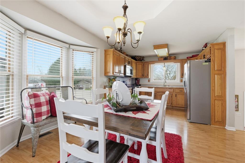 Welcome home to this meticulously maintained 3 bedroom, 3 bath brick-front split-level that truly has it all. From the moment you walk in, you’ll notice the soaring vaulted ceilings and the bright, open layout that seamlessly connects the kitchen and dining area—perfect for both everyday living and entertaining. The main floor features a spacious great room with a cozy fireplace, while the lower-level family/rec room offers endless possibilities—whether you need a second living space, home office, gym, or playroom. The oversized primary suite provides the space and comfort you’ve been looking for, and the kitchen is ready for everything from quiet mornings to hosting friends and family. Step outside to a fully fenced backyard with an incredible patio—ideal for entertaining, tossing a ball around, or just kicking back and relaxing after a long day. Located in a quiet neighborhood near a cul-de-sac with quick access to I-35, this home combines convenience with a peaceful setting. You’re also within walking distance to the city park—and yes, there’s even a dog park your four-legged family members will love. Additional highlights include an energy-efficient all-electric setup and a spacious 26x24 attached garage. If you’ve been searching for space, comfort, and a home that’s been truly cared for—this one checks all the boxes.